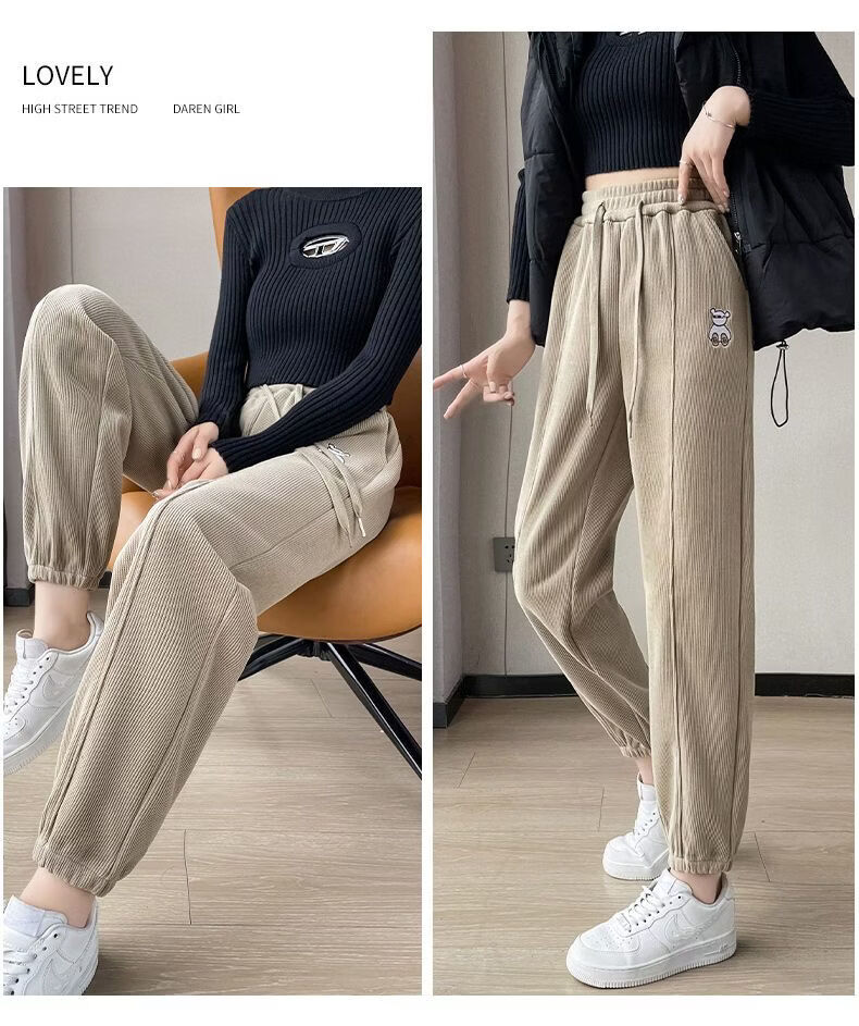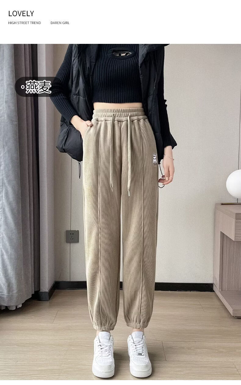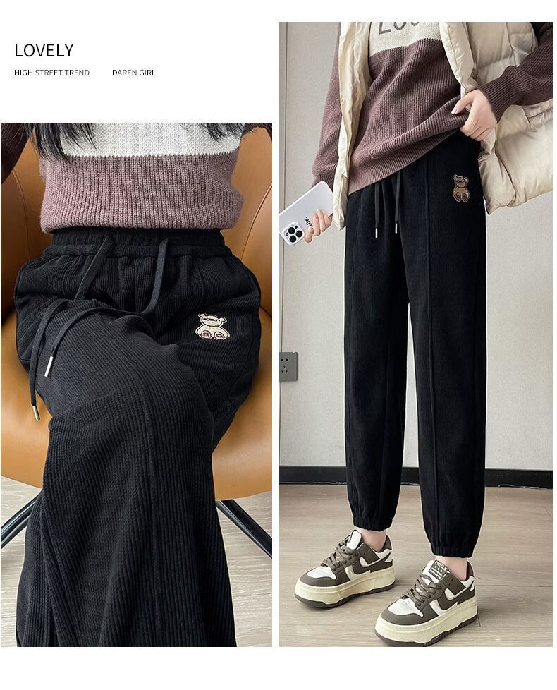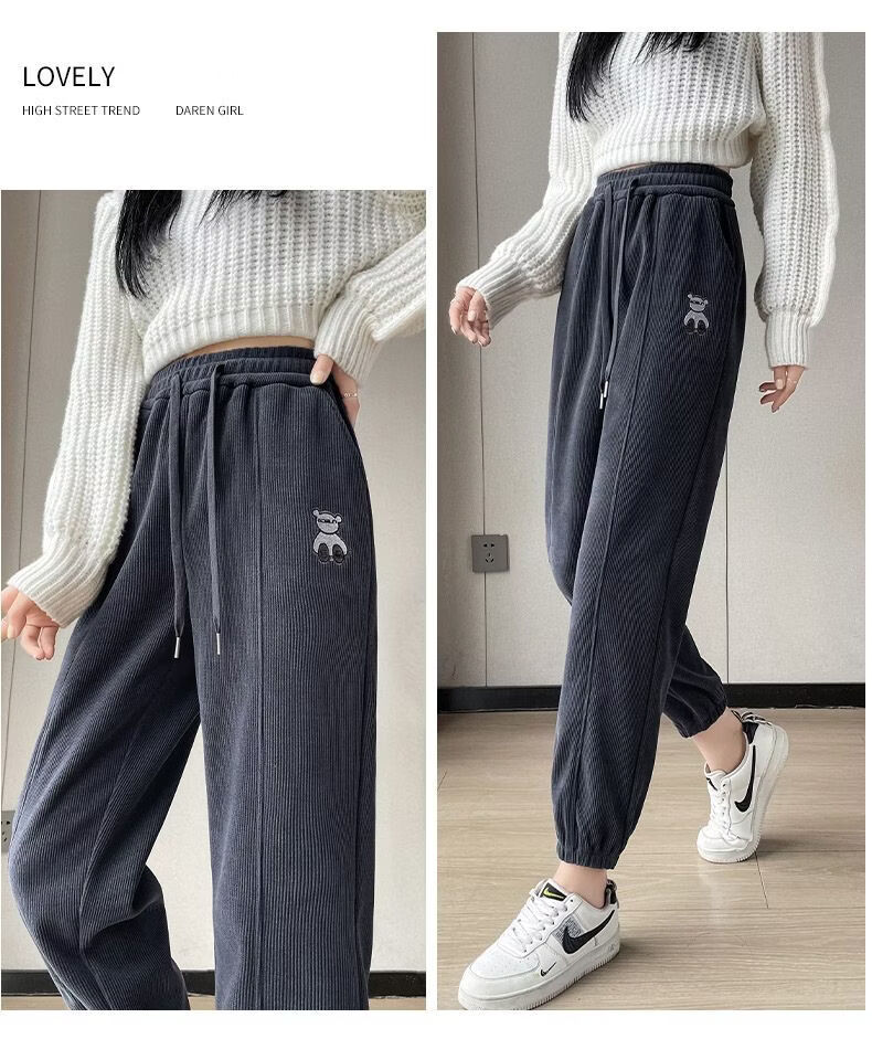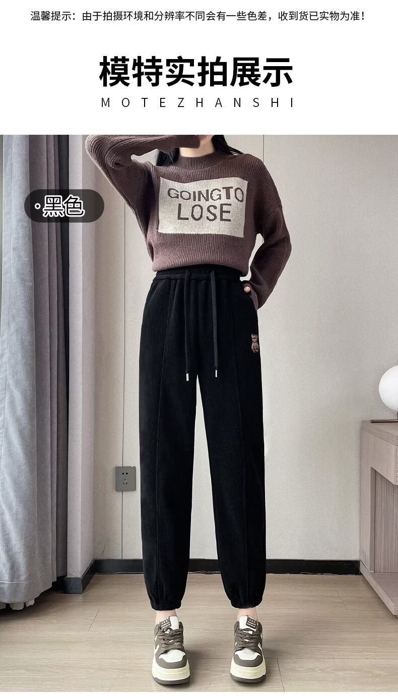 ROMON Chenille sweatpants for women autumn and winter 2026 new velvet thickened corduroy casual harem pants black without velvet 10181 S recommended 78-98Jin Jin equals 0.5 kg