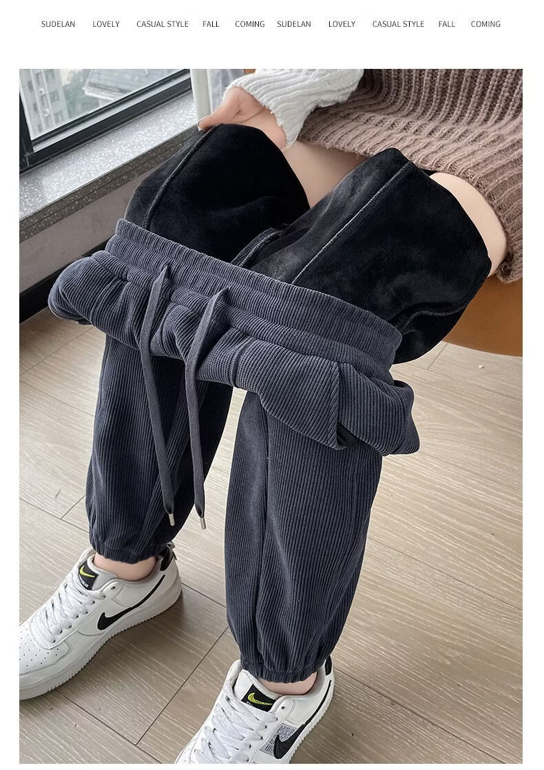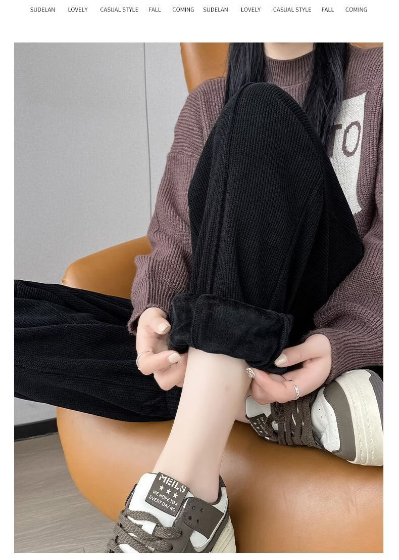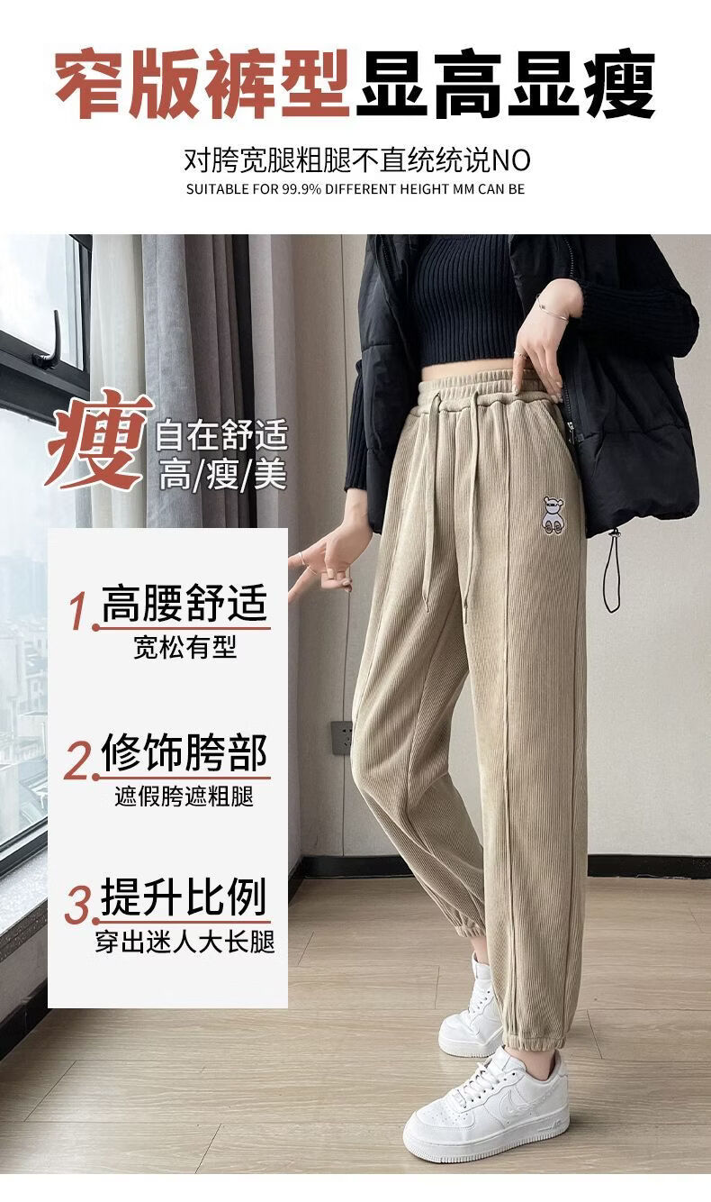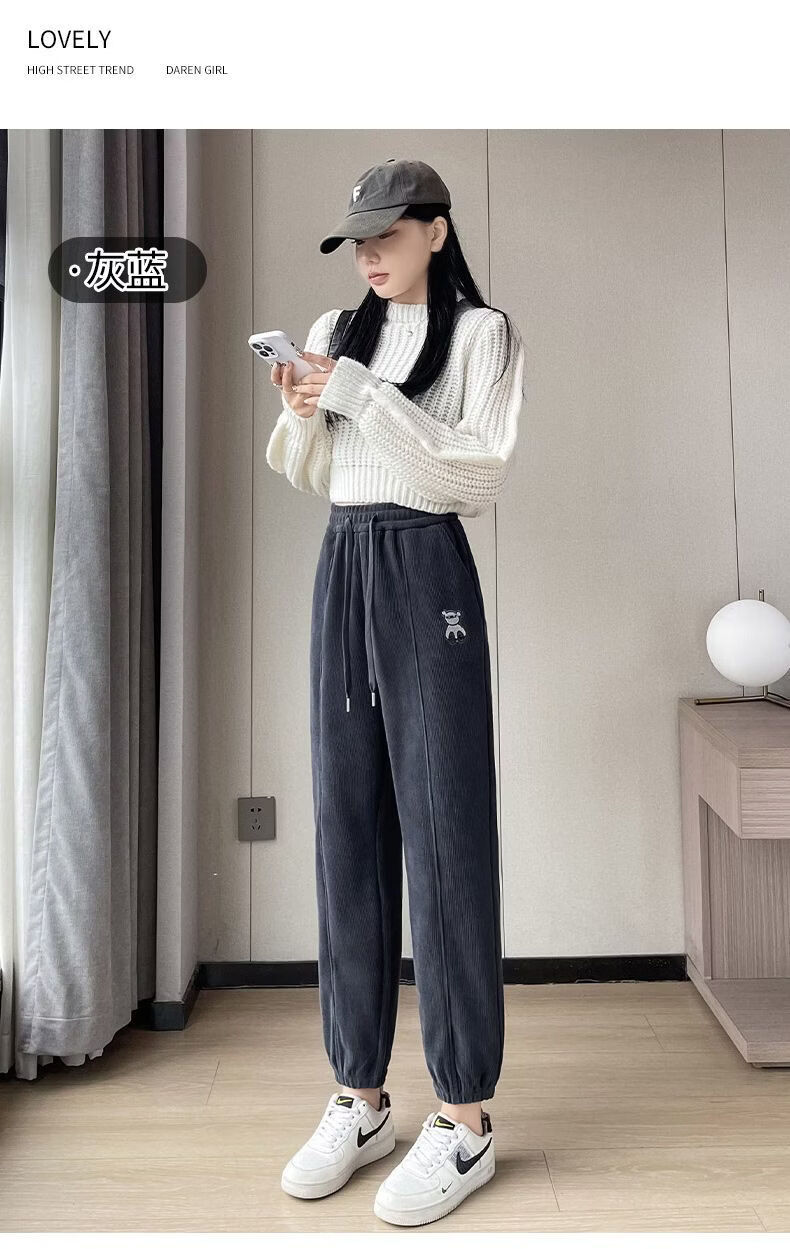 ROMON Chenille sweatpants for women autumn and winter 2026 new velvet thickened corduroy casual harem pants black without velvet 10181 S recommended 78-98Jin Jin equals 0.5 kg