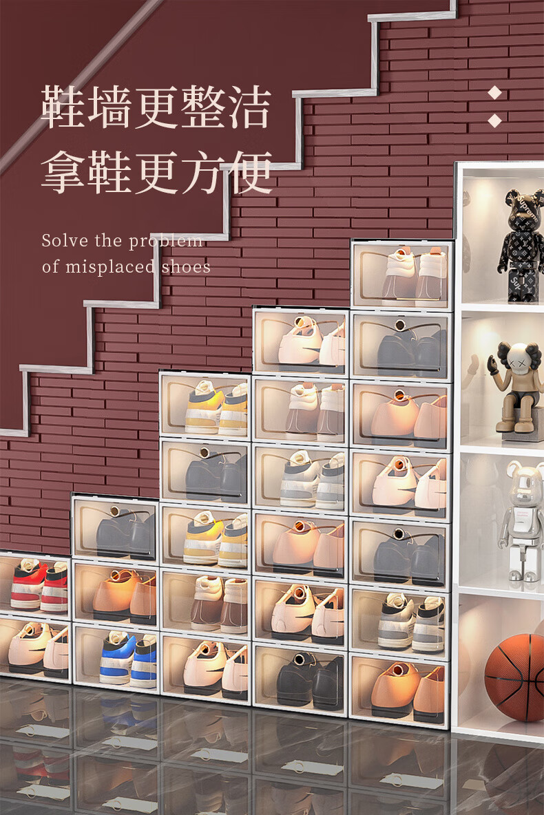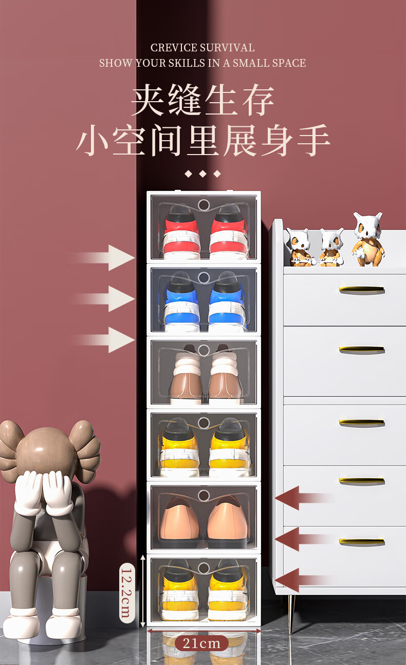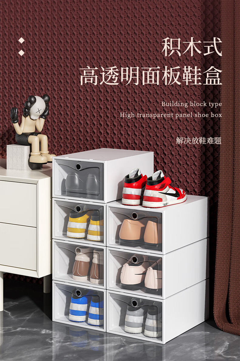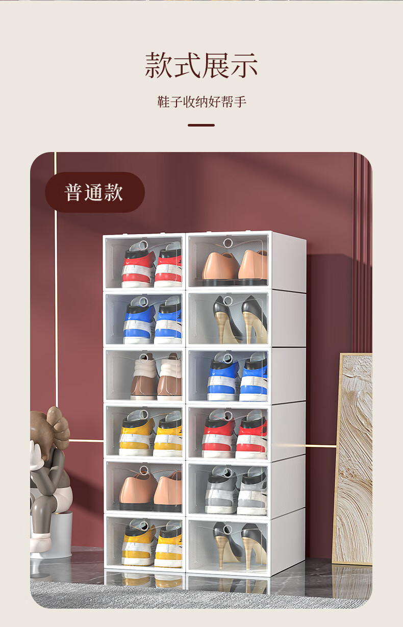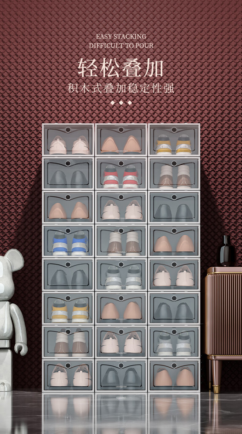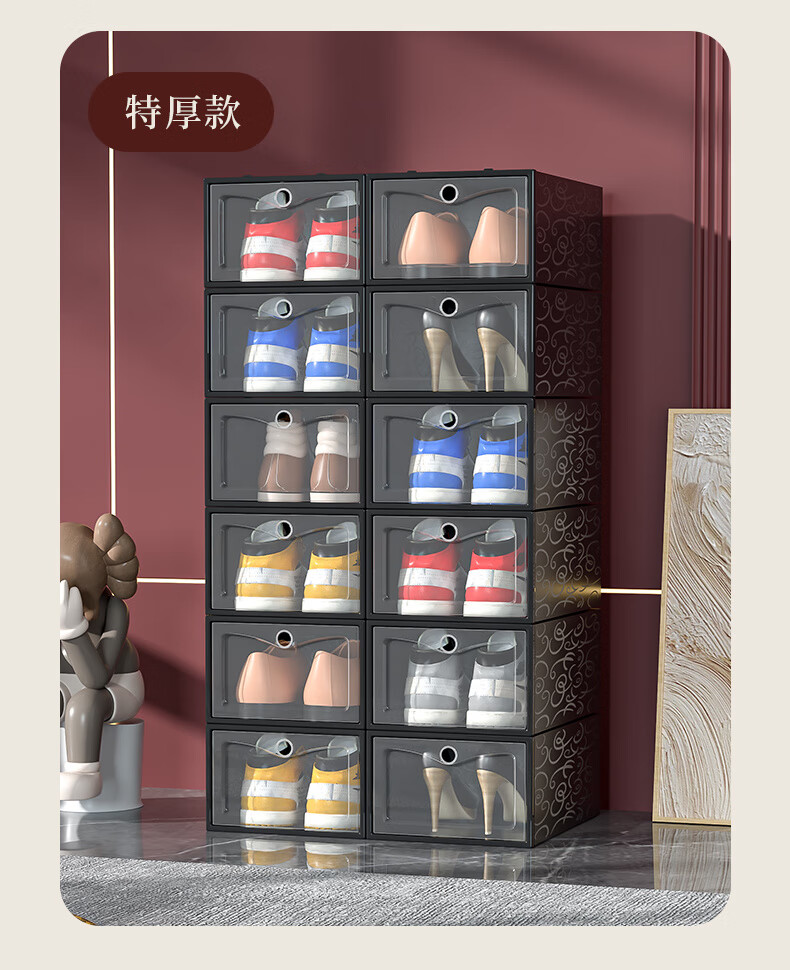 Shoe box storage box transparent shoe storage thickened magnetic acrylic simple hard plastic dormitory shoe rack multi-layer cabinet extra thick men's white flower 12 with 12 in total 24 pcs