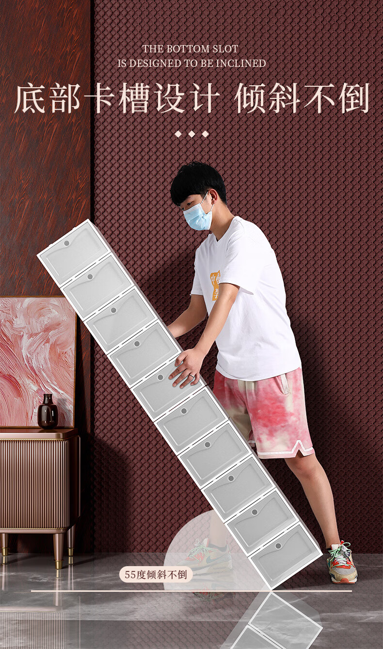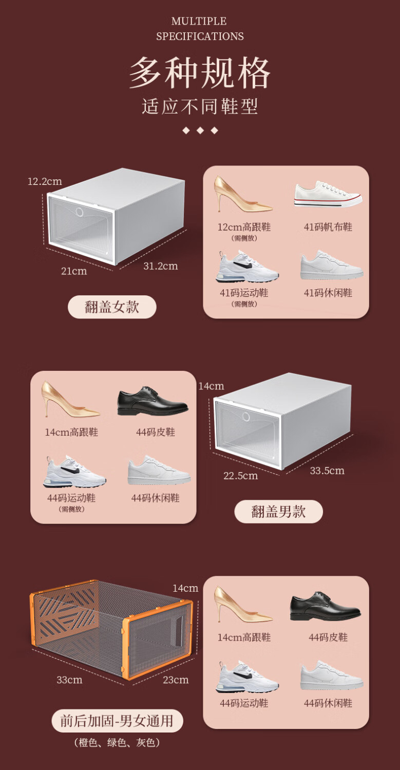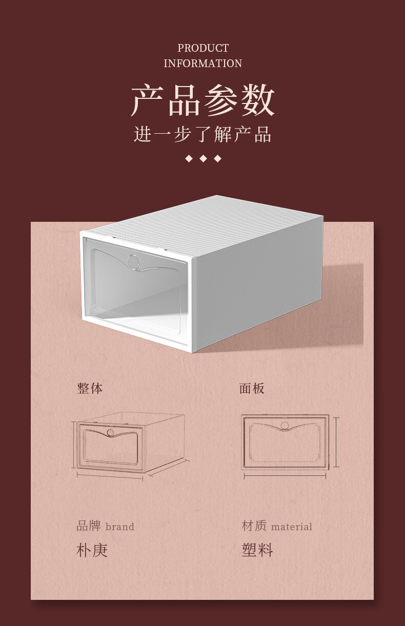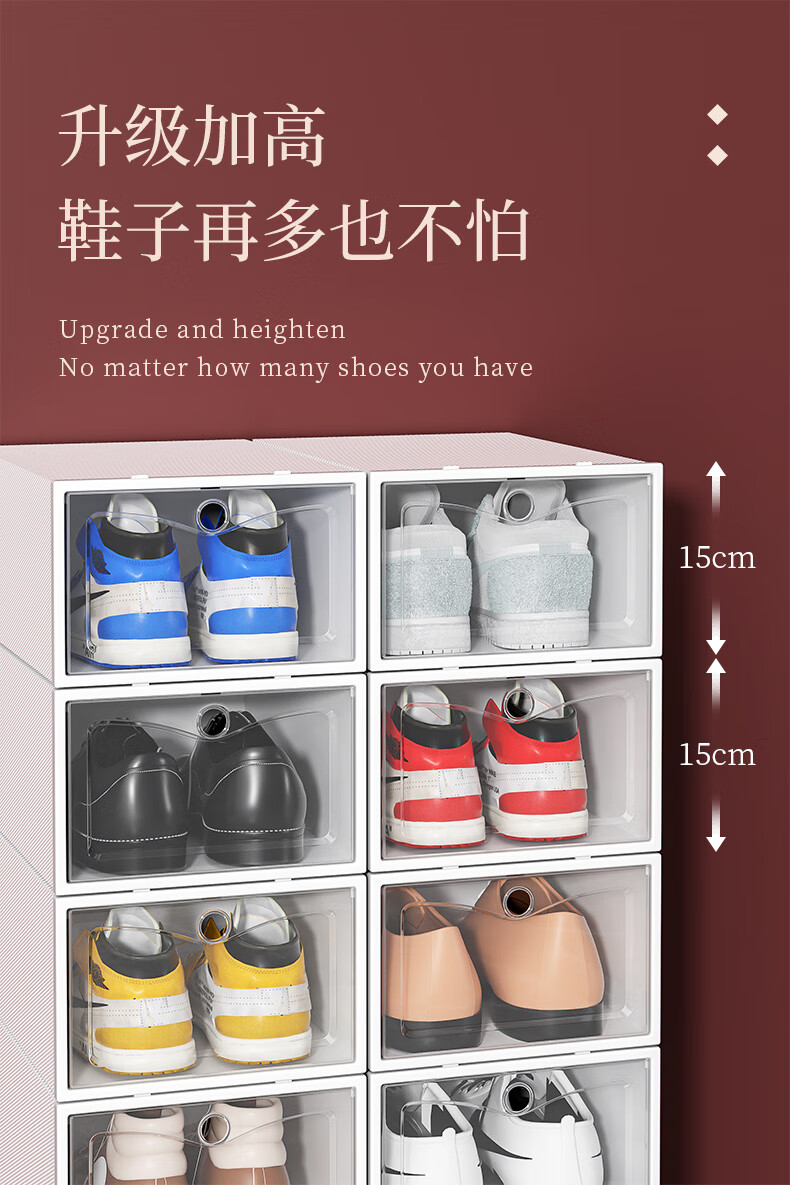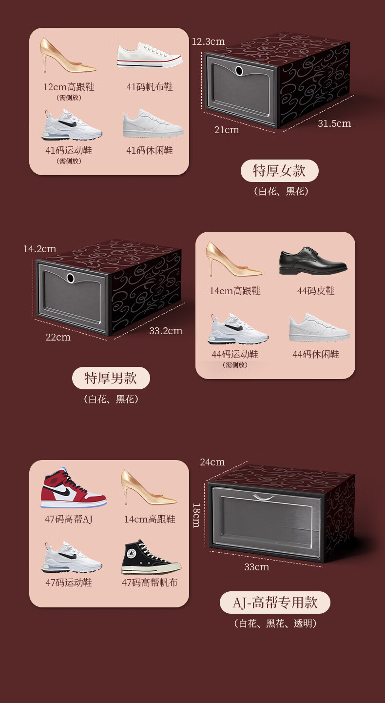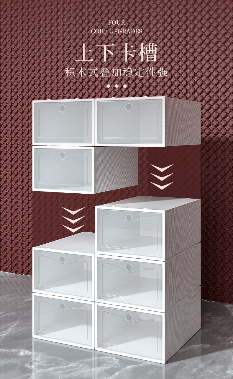 Shoe box storage box transparent shoe storage thickened magnetic acrylic simple hard plastic dormitory shoe rack multi-layer cabinet extra thick men's white flower 12 with 12 in total 24 pcs