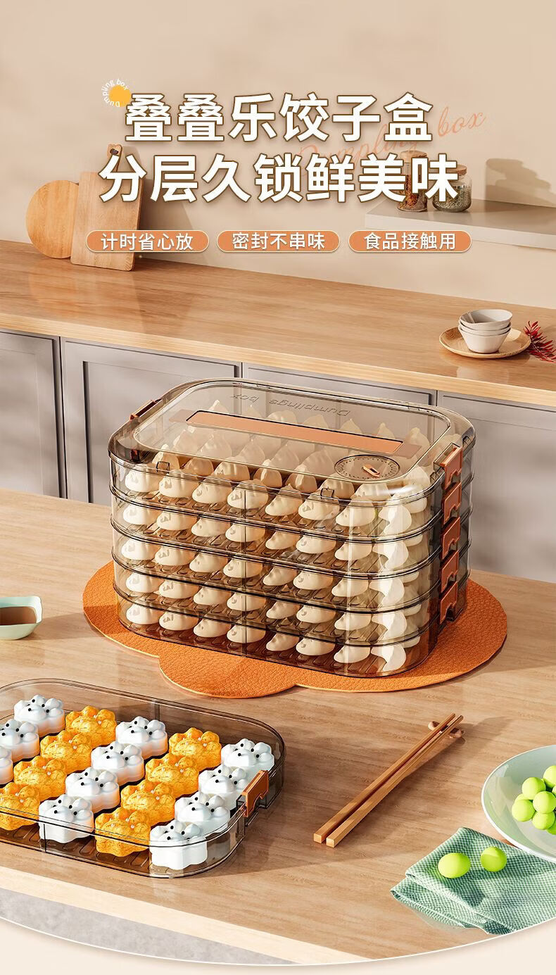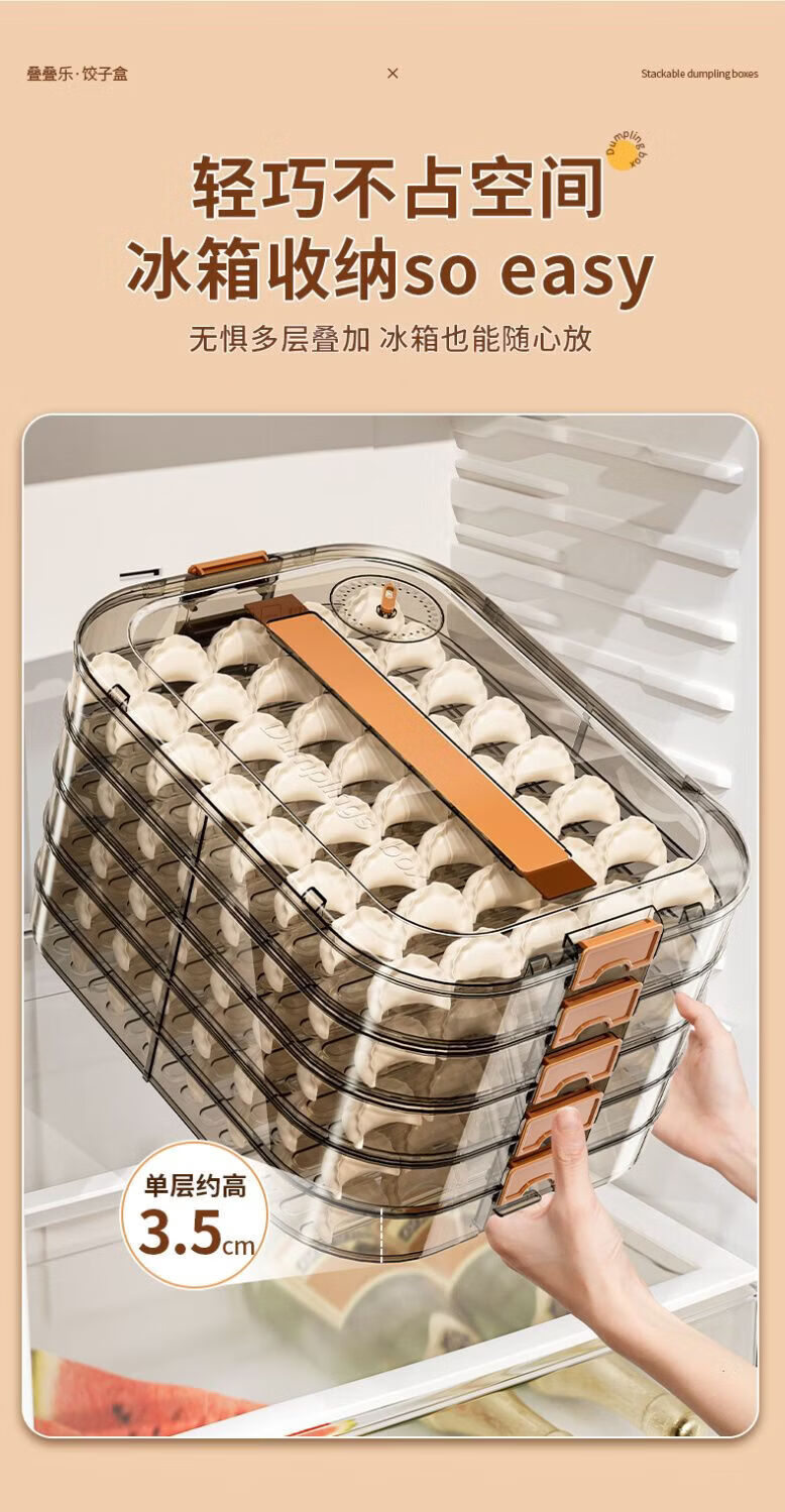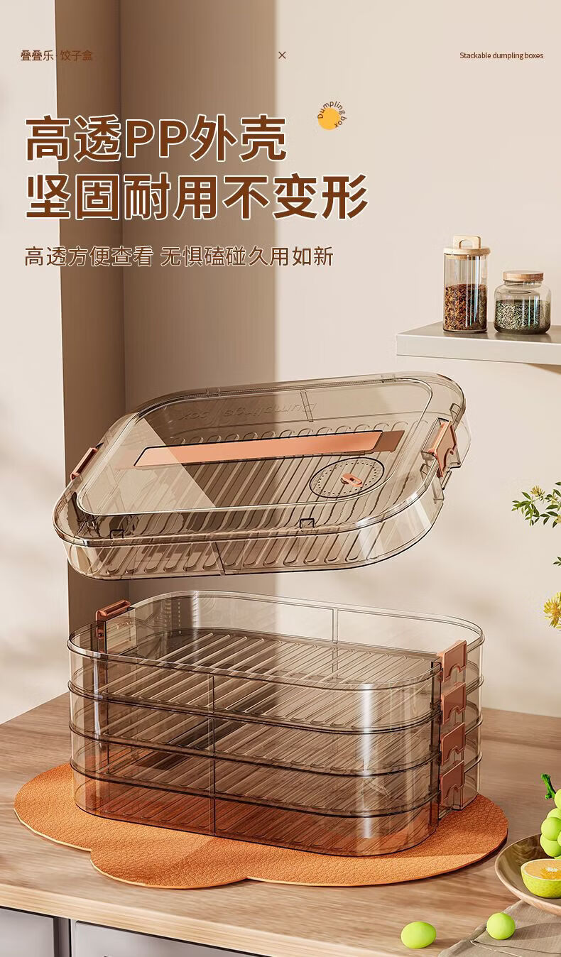 Xinyun Jiameng dumpling storage box household food-grade fresh-keeping box multi-layer wonton and dumpling quick-frozen box closed food storage box transparent orange - food-grade material/anti-stick and anti-slip bottom four layers including lid width 22.5/approximately 240 pieces freshness timer