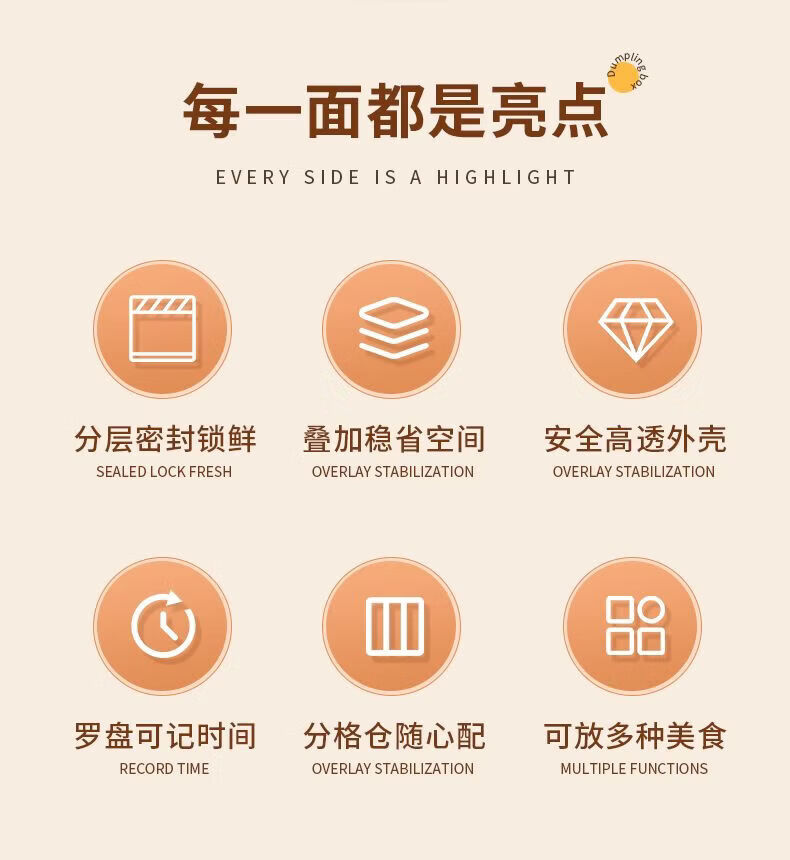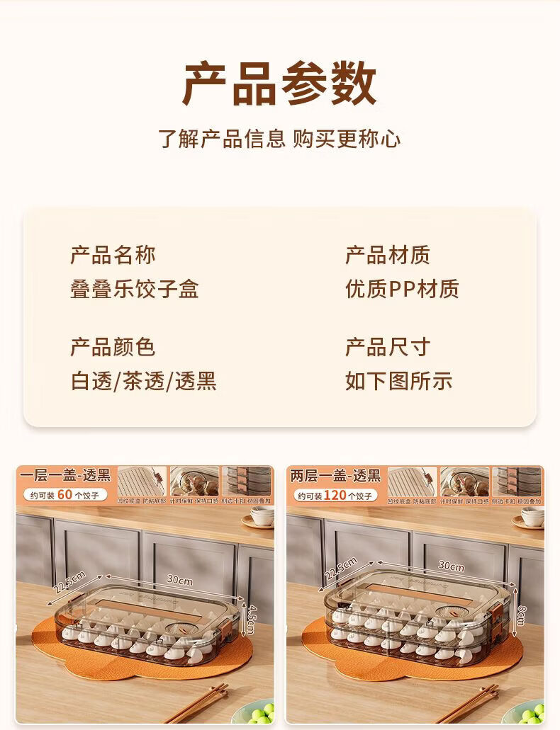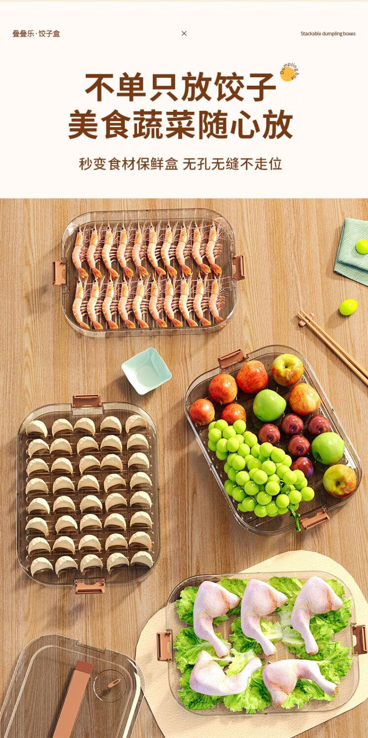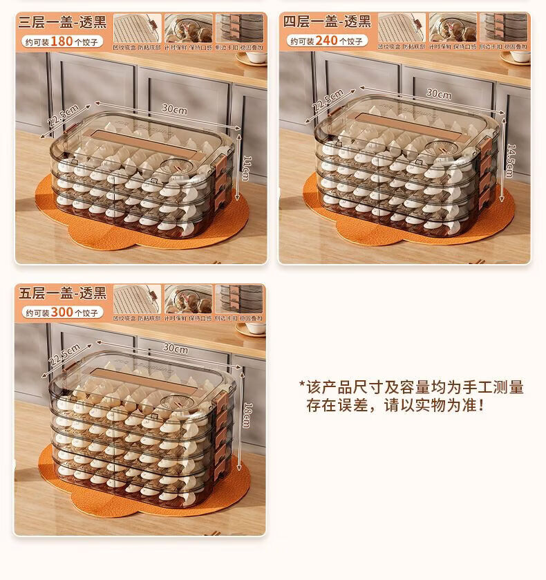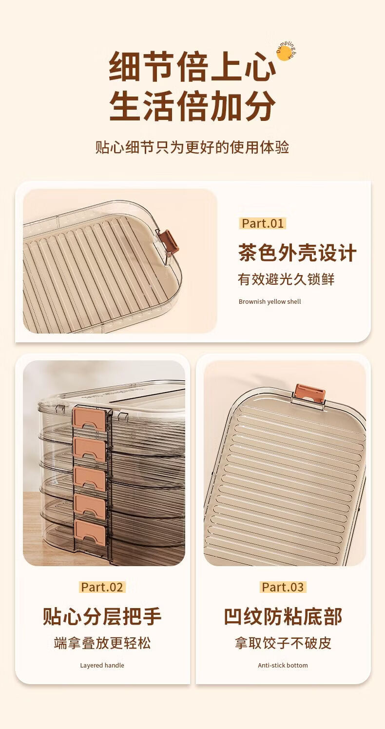 Xinyun Jiameng dumpling storage box household food-grade fresh-keeping box multi-layer wonton and dumpling quick-frozen box closed food storage box transparent orange - food-grade material/anti-stick and anti-slip bottom four layers including lid width 22.5/approximately 240 pieces freshness timer