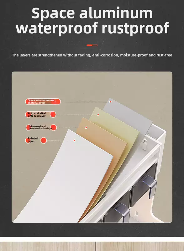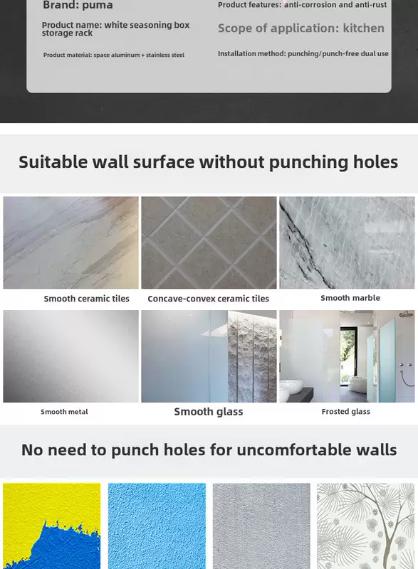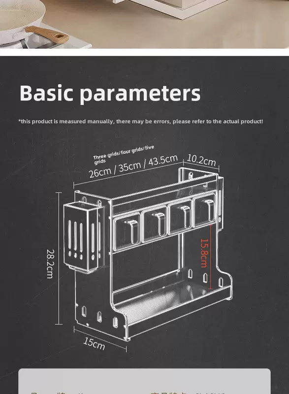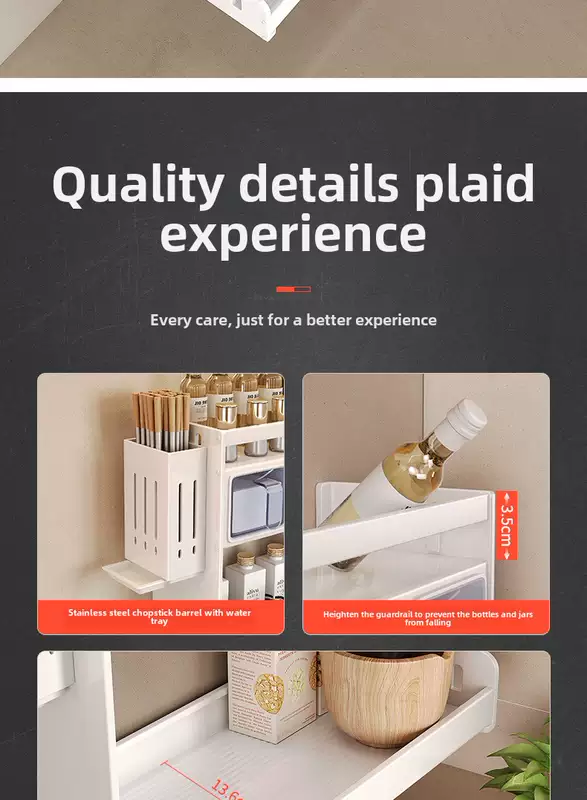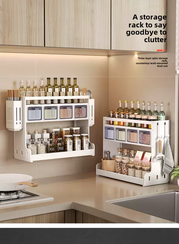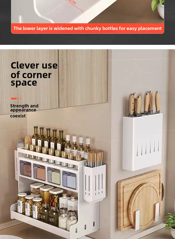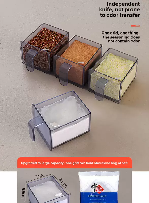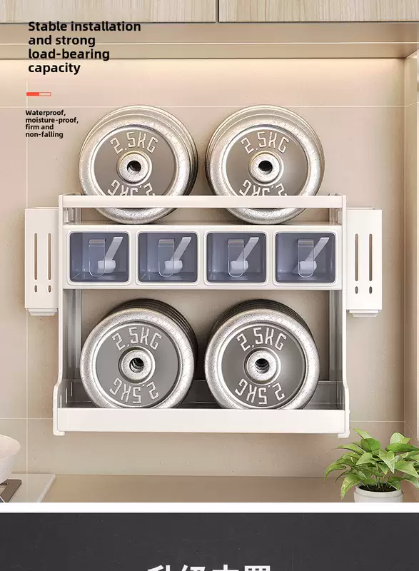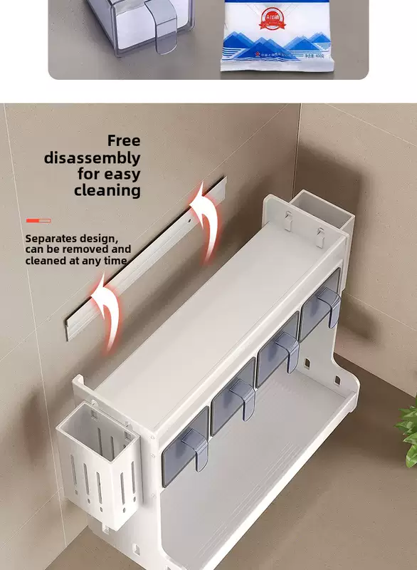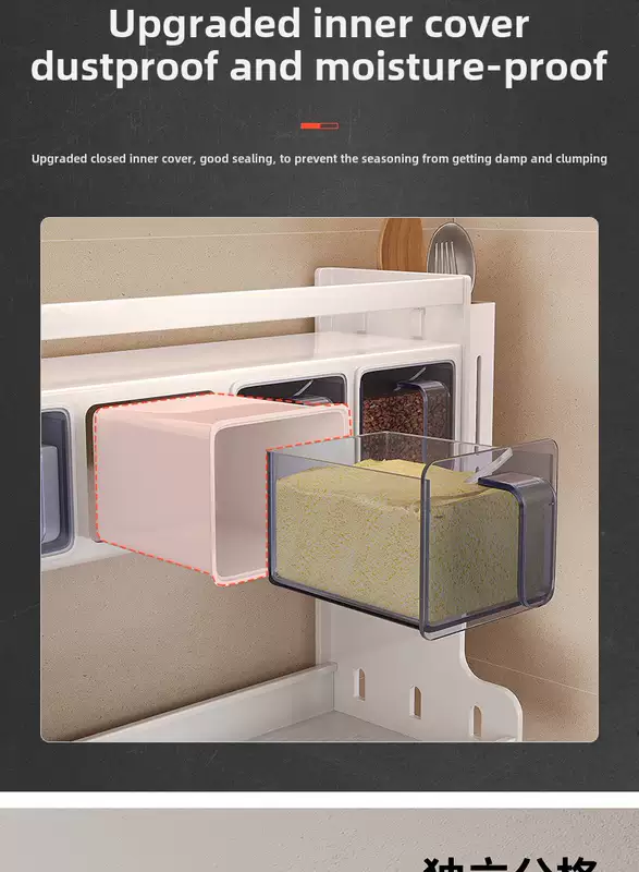 Yusenyi wall-mounted multi-functional punch-hole oil-free salt sauce vinegar storage rack kitchen condiment jar seasoning box (standard style) 3 compartments - 2 chopstick barrels