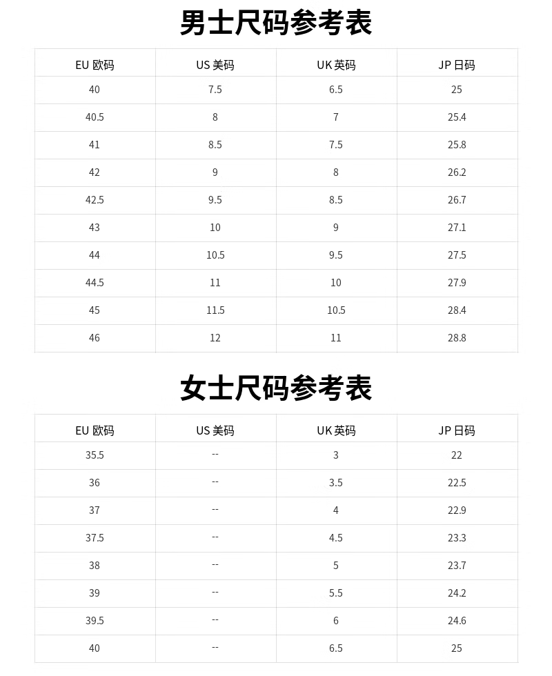 China (cm) 36 - 37 38 - 39 40 - 42 43 - 44 45 - 47