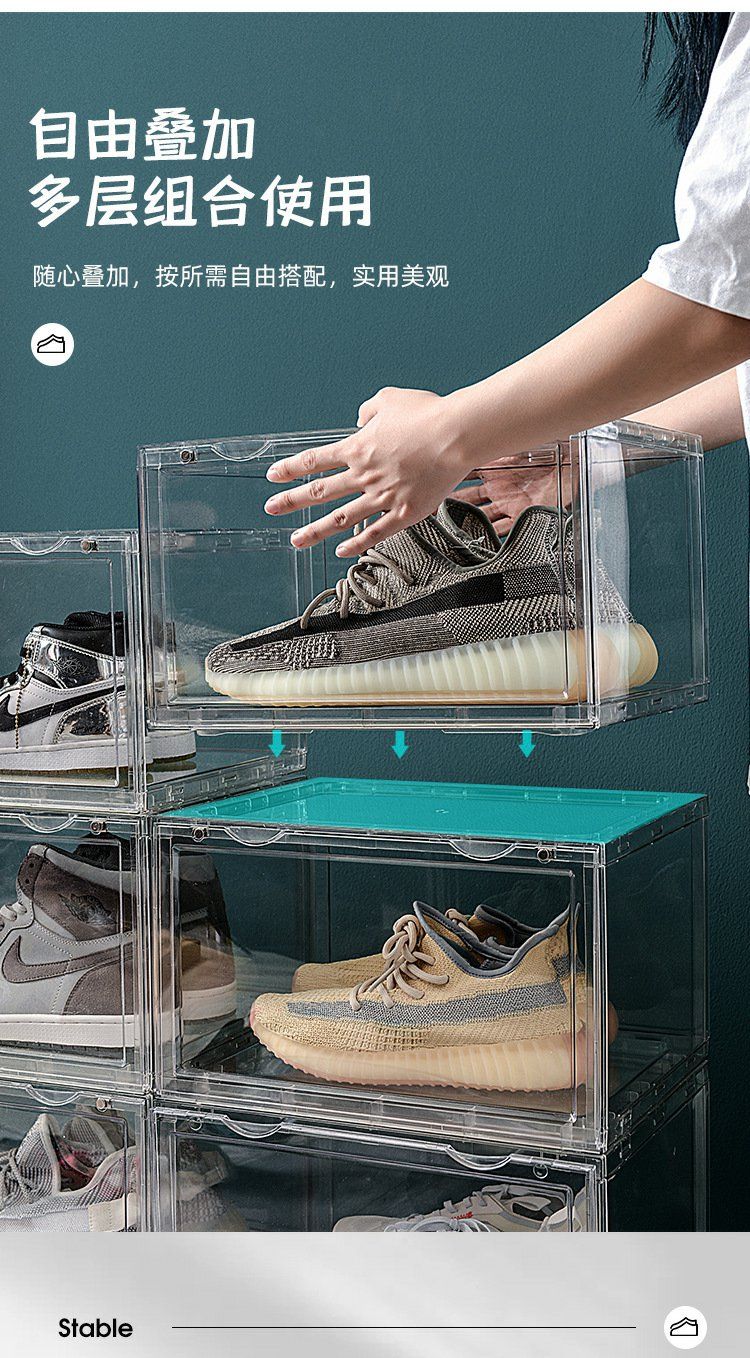 Fantasy Shoe Box Fully Transparent Shoe Box Acrylic Plastic AJ Basketball Shoe Storage Box Dustproof Shoe Cabinet Anti-Oxidation Shoe Rack Shoe Cabinet Large Fully Transparent 4 Pack
