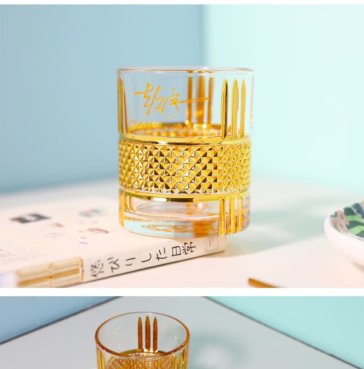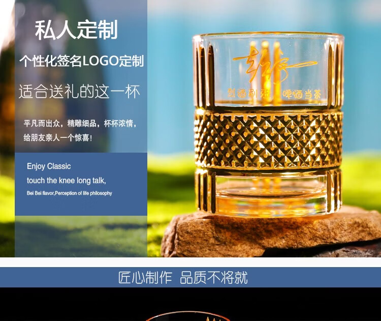 Yusenyi hand-carved customized personalized signature company LOGO whiskey cup creative commemorative Father's Day birthday gift personalized signature (gold) gift box