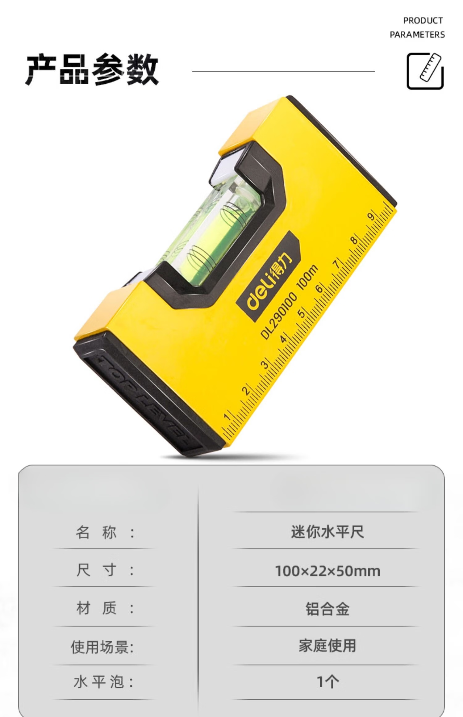 Mini level, high precision, small flat level, strong magnetic ruler, balance ruler, household level, anti-fall, strong magnetic type 100mm mini level