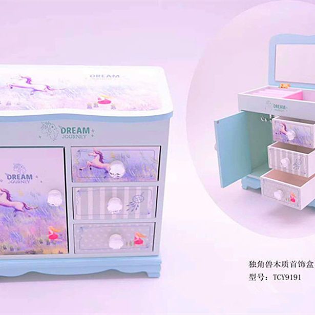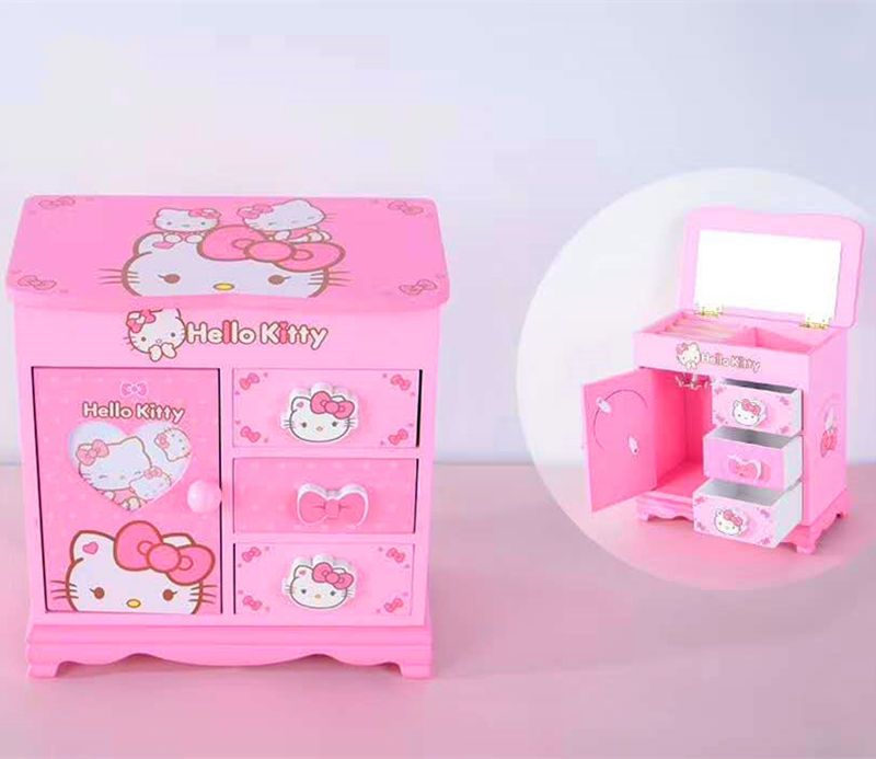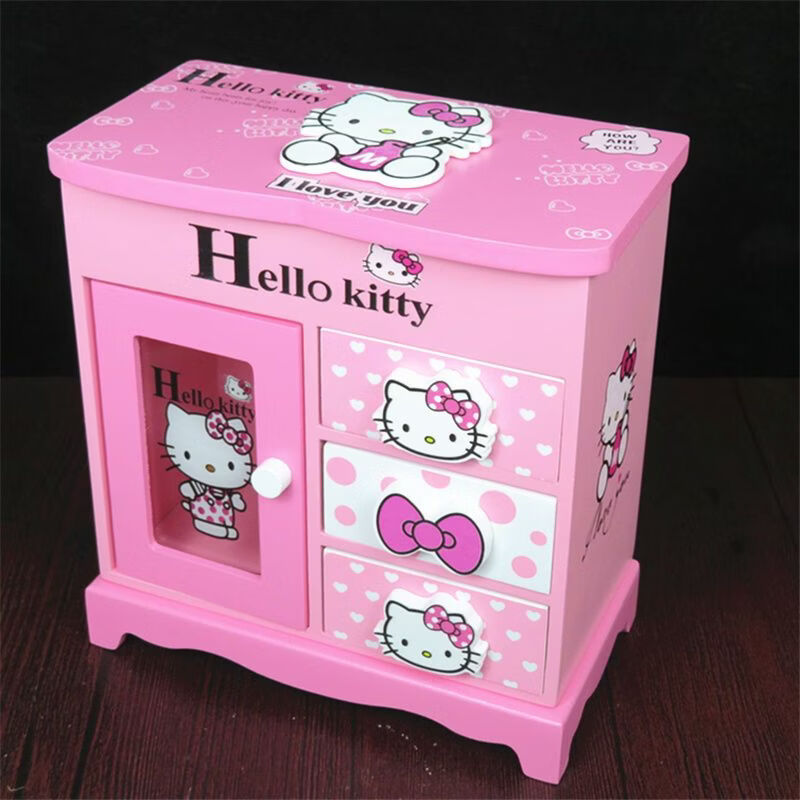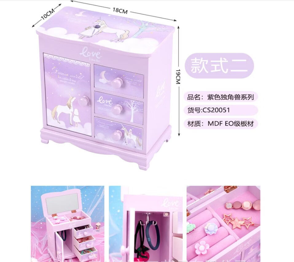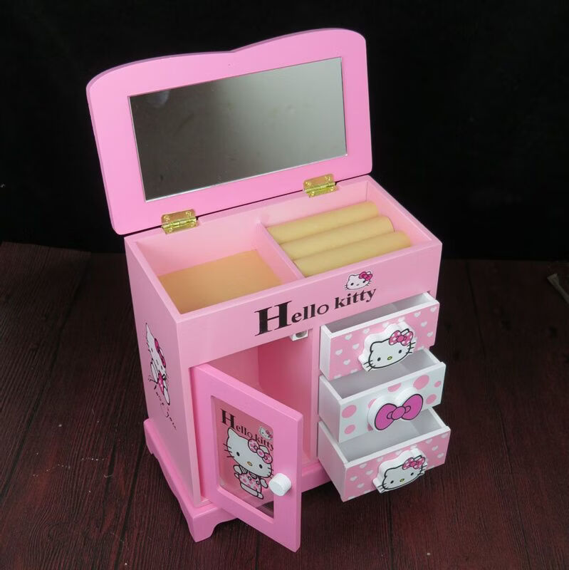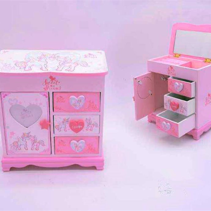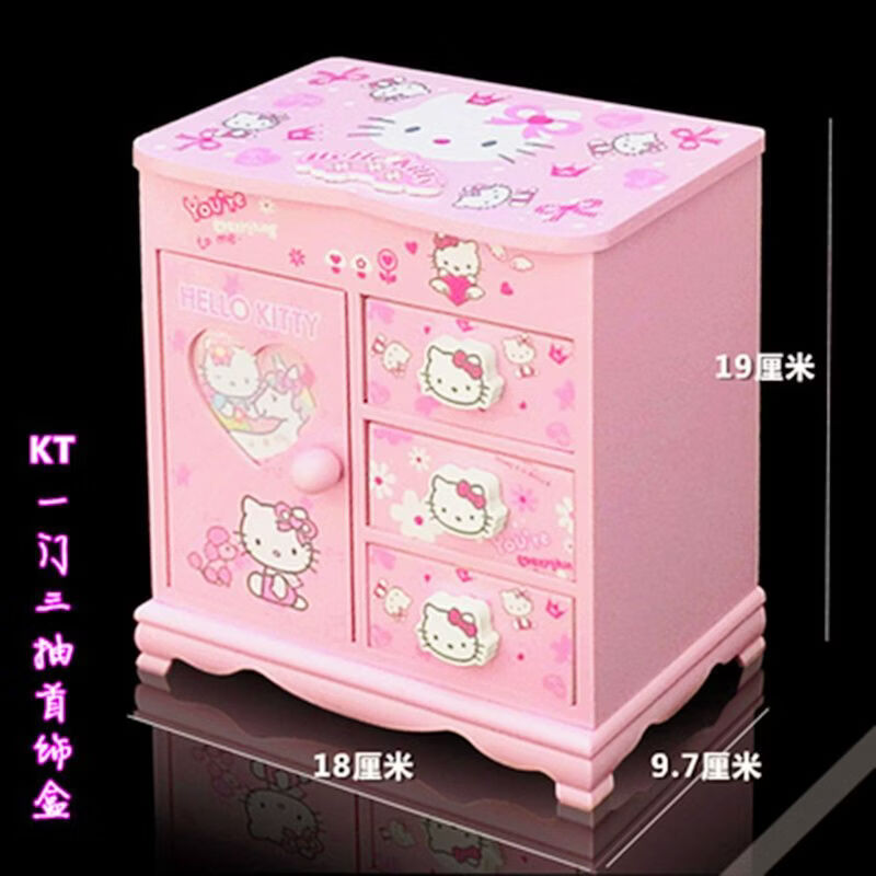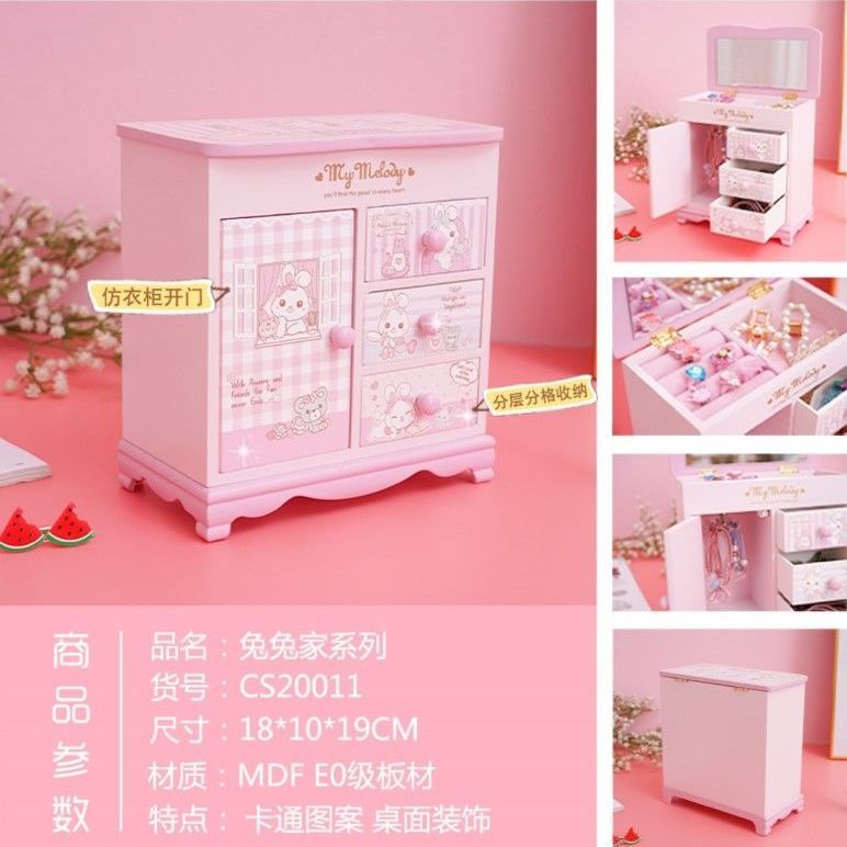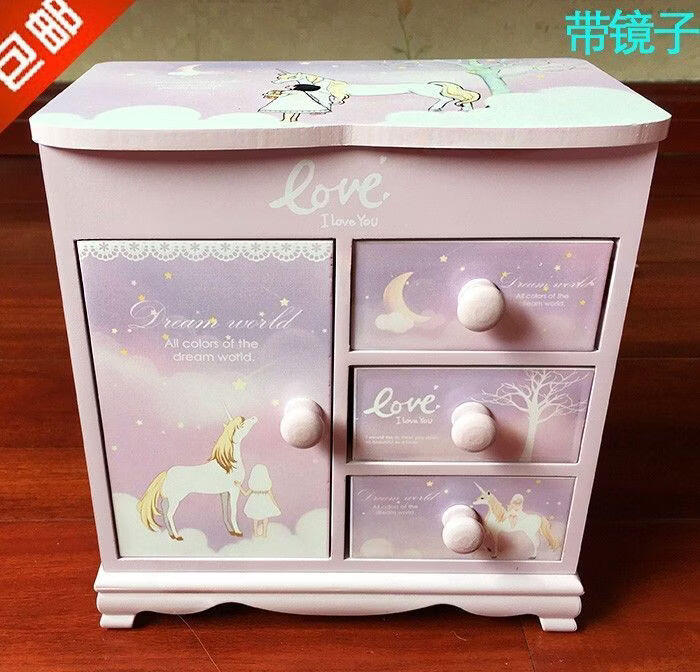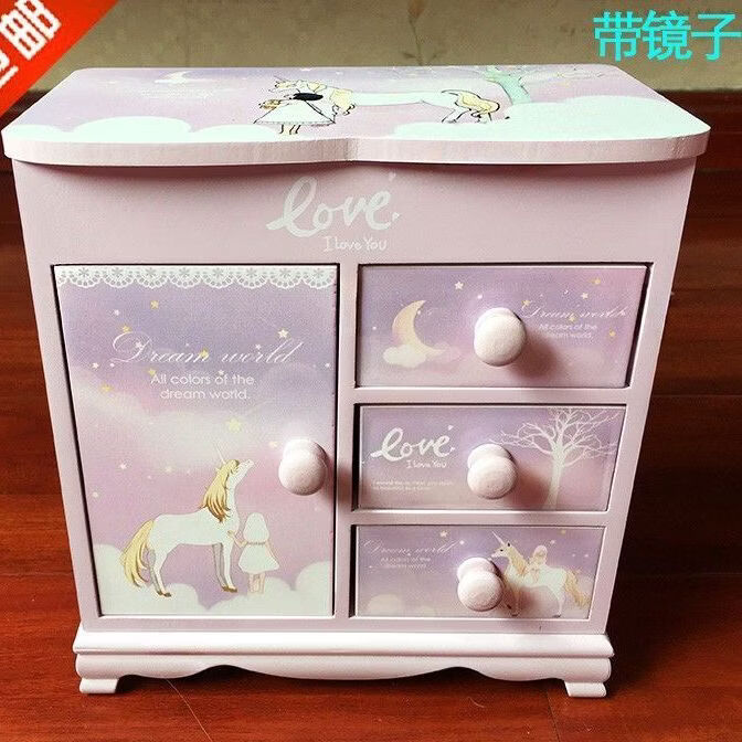 Fantasy Pink Castle Cartoon Wooden Jewelry Box Girl Jewelry Box Hairpin Storage Princess Tiara Drawer Cosmetic Box Kaicat Cat Three Drawers and One Door