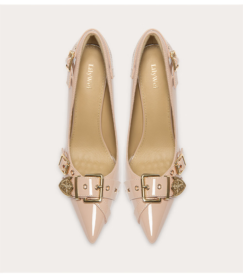 Lily Wei Shanjian Qinglan French style gentle fashion high heels commuting temperament comfortable work shoes large size nude pink heel height 10cm 33