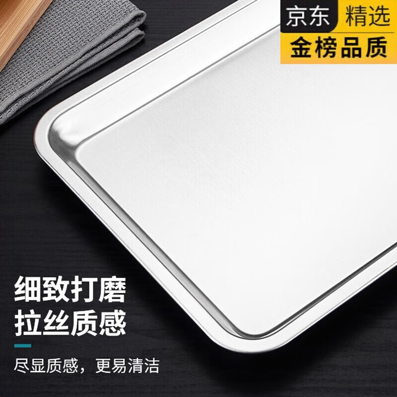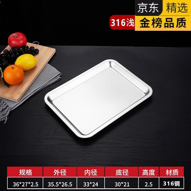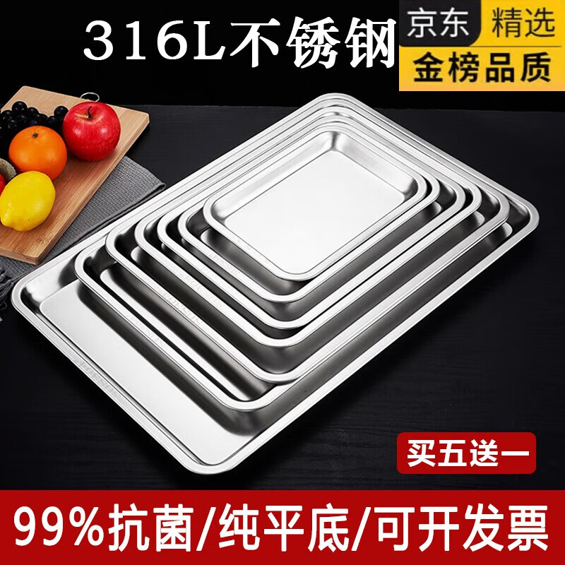 Tuojin pure flat bottom square plate 316L stainless steel extra thick rectangular tray dish dish household steam rice tray barbecue commercial extra thick medical grade 316L pure flat bottom deep plate 45*35*