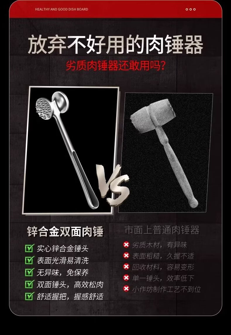 Fantasy Loose Meat Hammer, Steak Breaker, Tie Meat, Slap Meat Tendering Tool, Pork Chop Meat Hammer, 1 Black Handle Meat Hammer