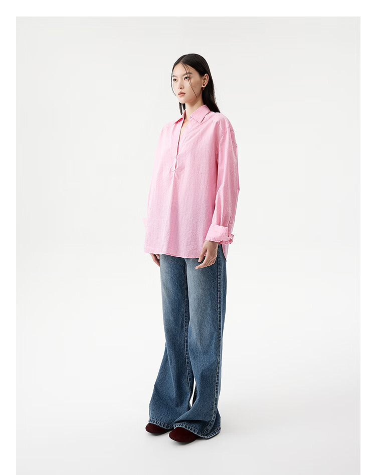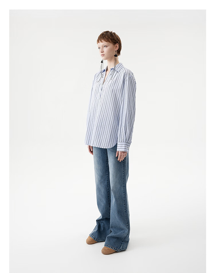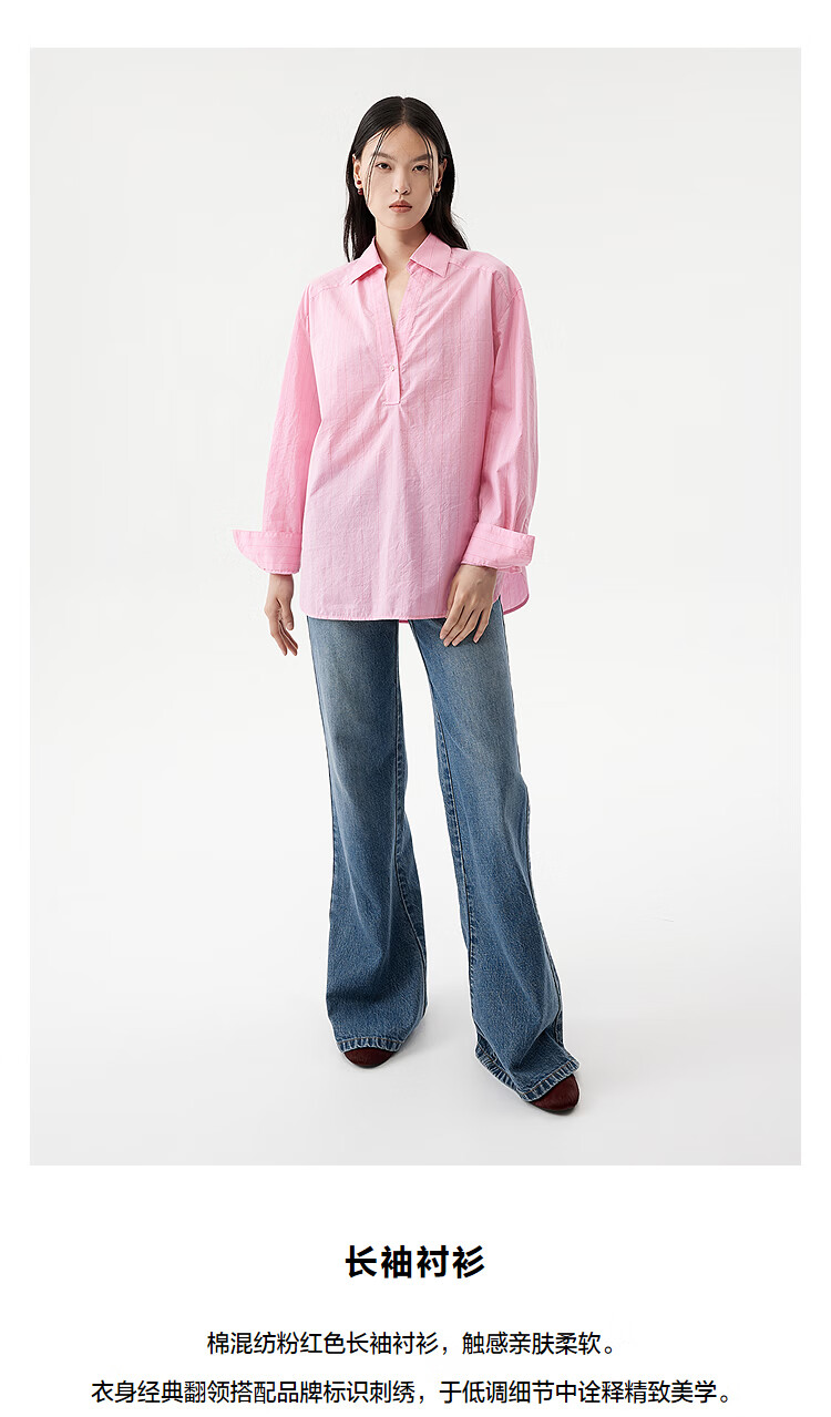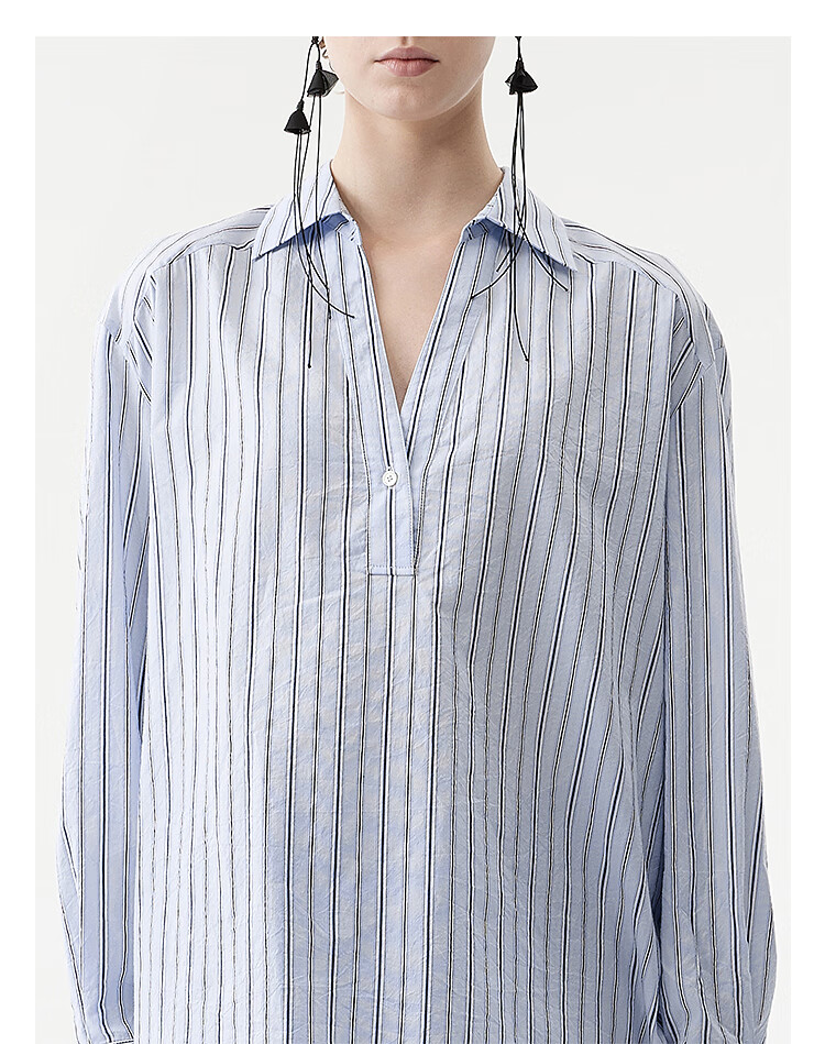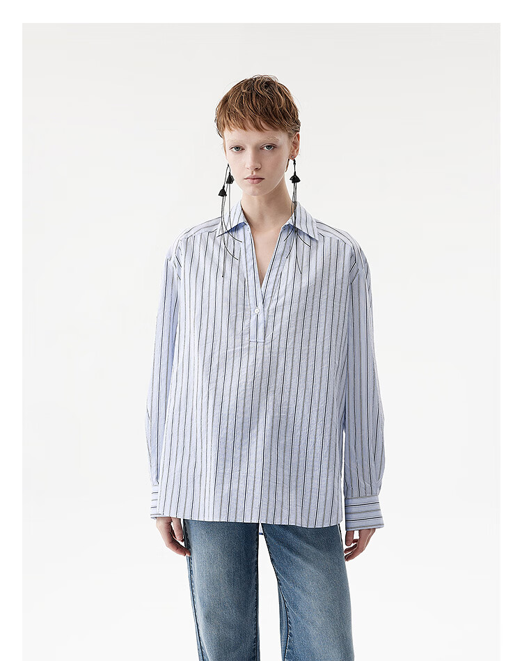 DAZZLE long-sleeved shirt 2026 spring cotton blended long-sleeved top for women light blue XS