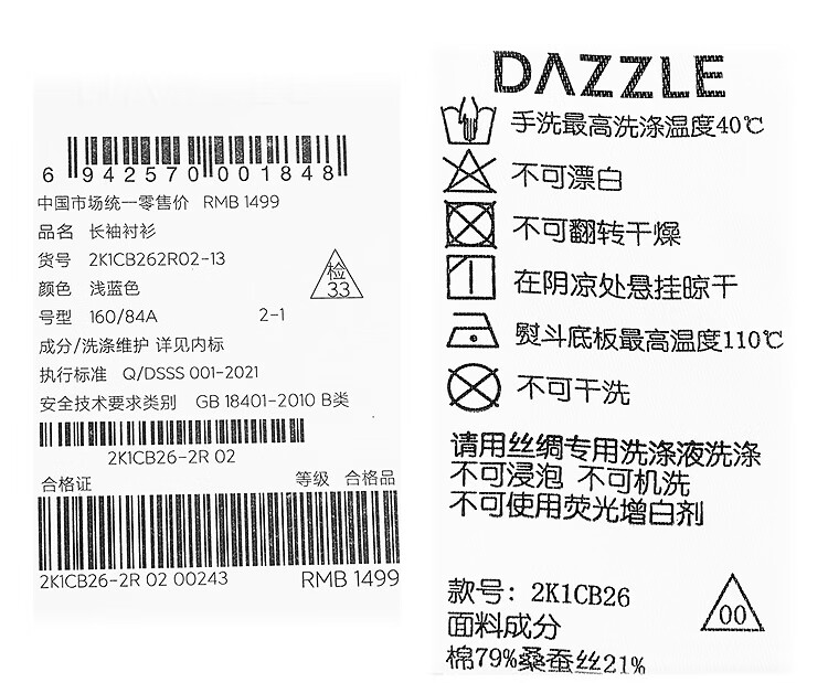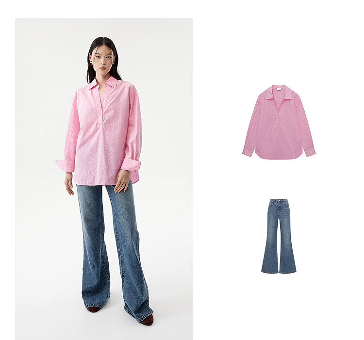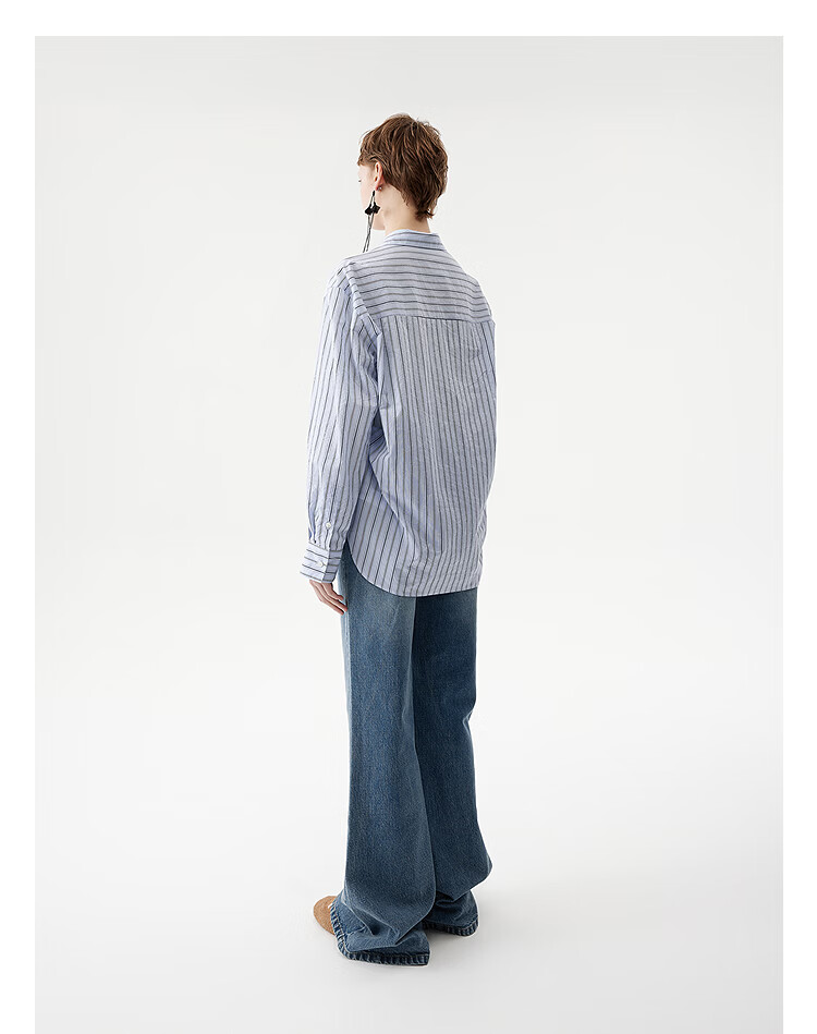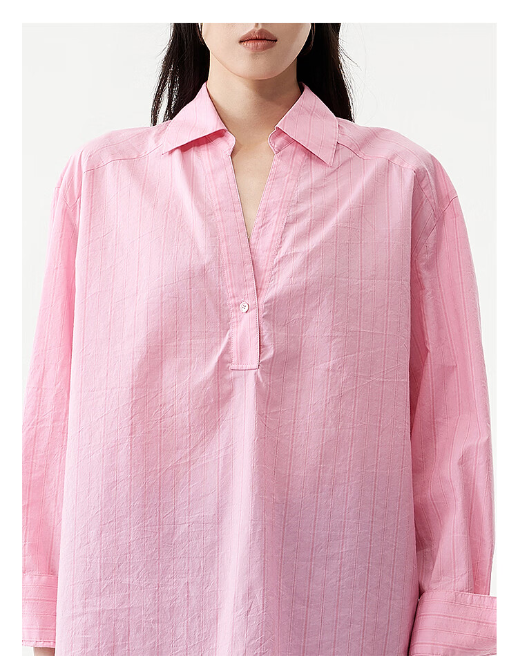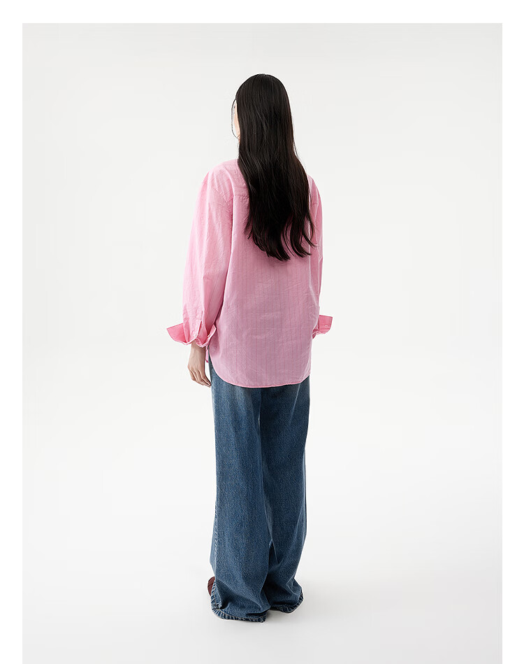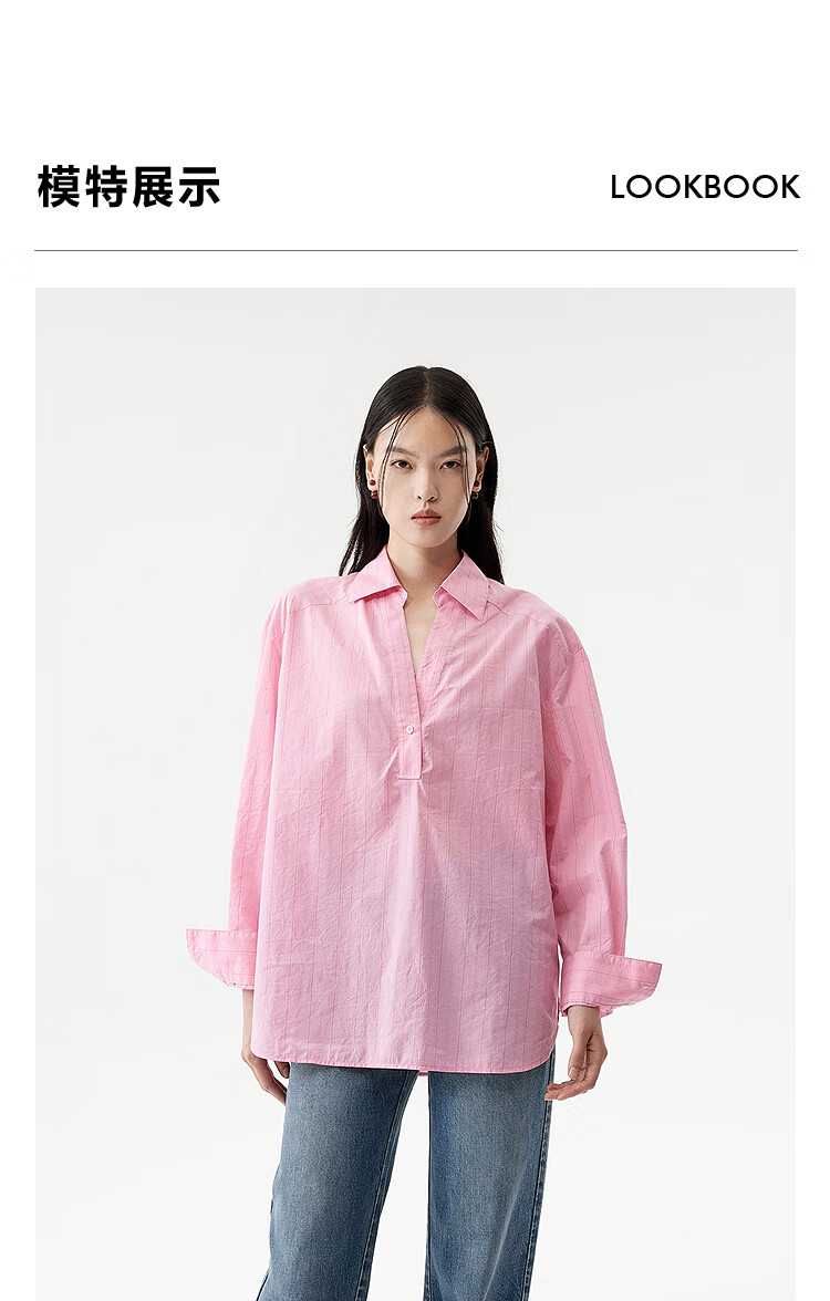 DAZZLE long-sleeved shirt 2026 spring cotton blended long-sleeved top for women light blue XS