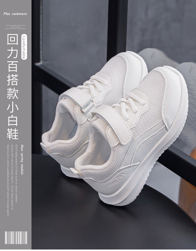 Pull back children's shoes children's sports shoes 2026 spring new boys thick-soled breathable dad shoes girls student shoes white white white -2204 29
