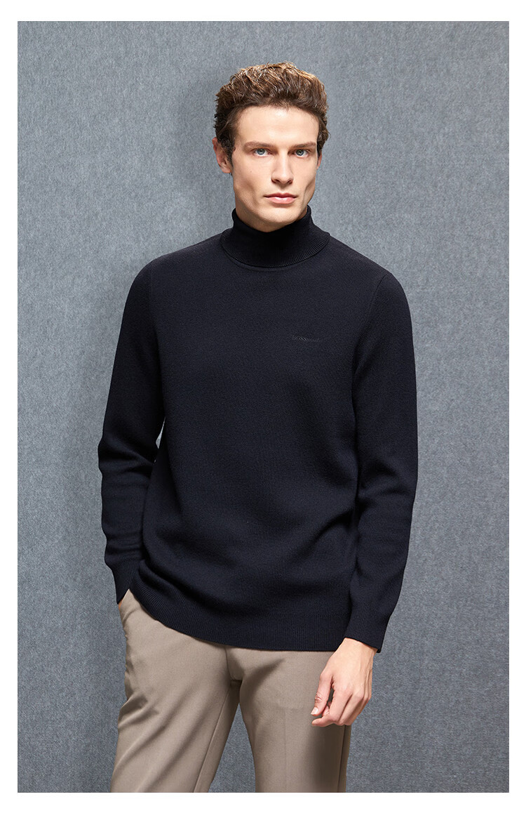 Bosssunwen sheep wool early spring new elegant gentleman skin-friendly soft and exquisite embroidered long-sleeved men's cardigan gray XL