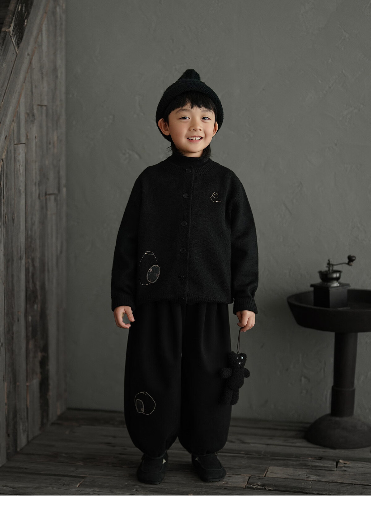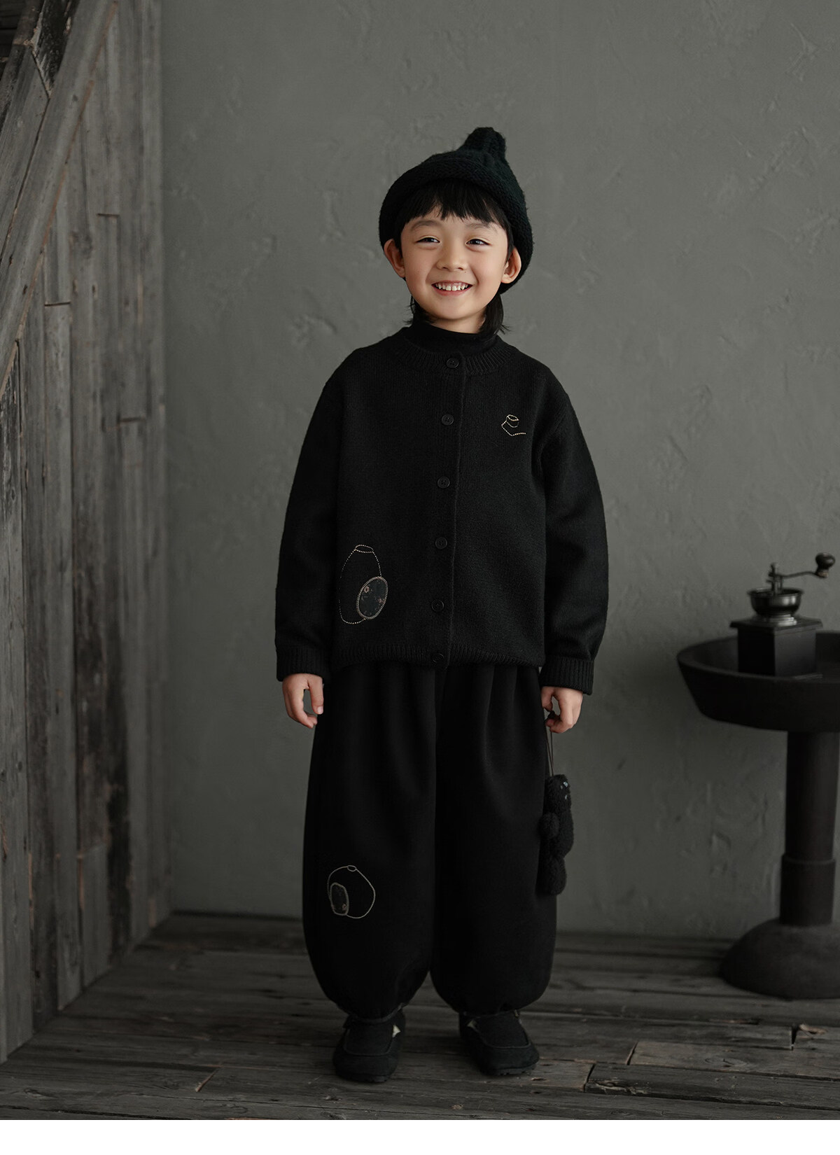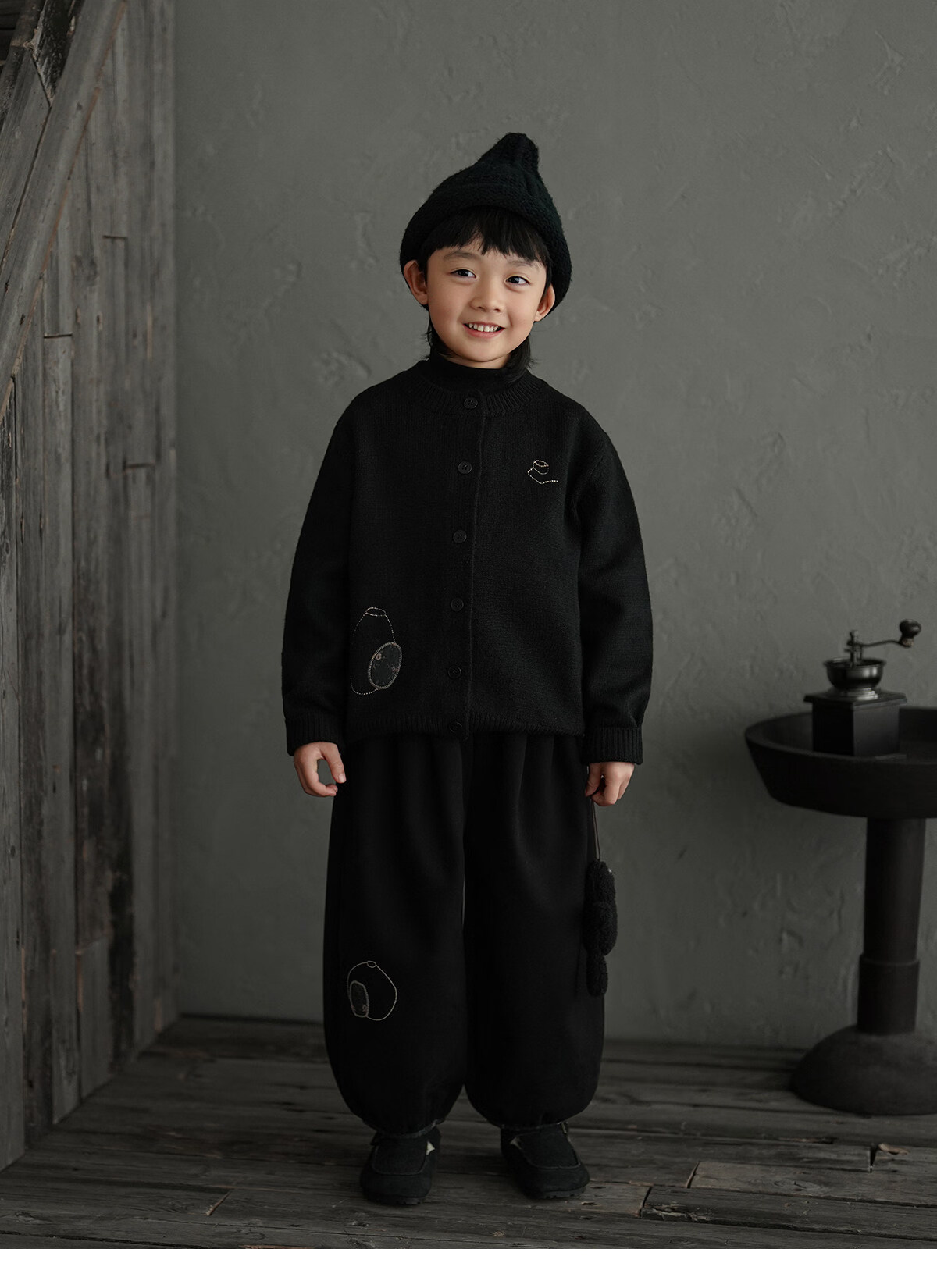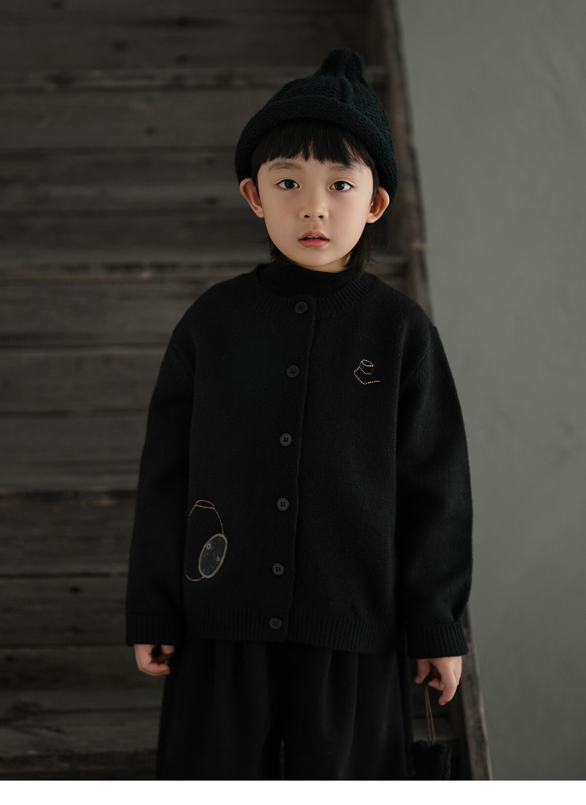 Yantaijia boys' warm sweater cardigan 2025 winter new style children's black knitted sweater versatile children's clothing black 130