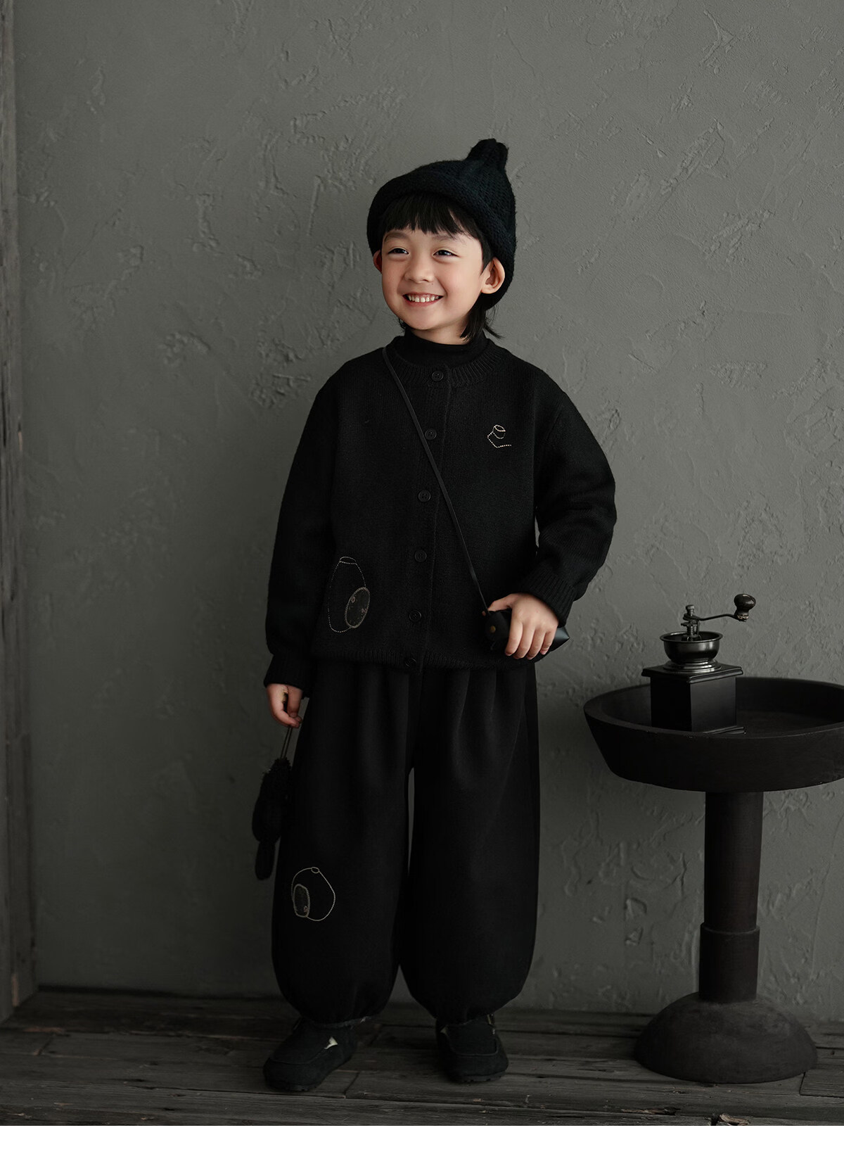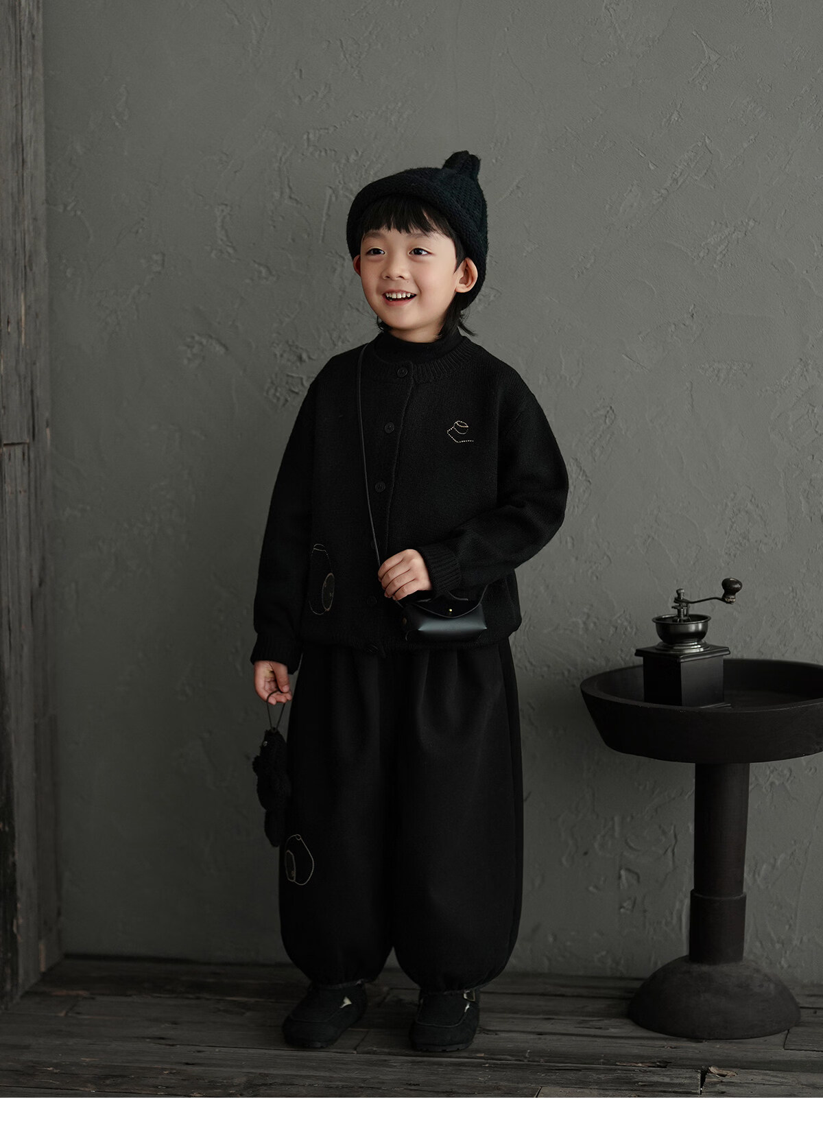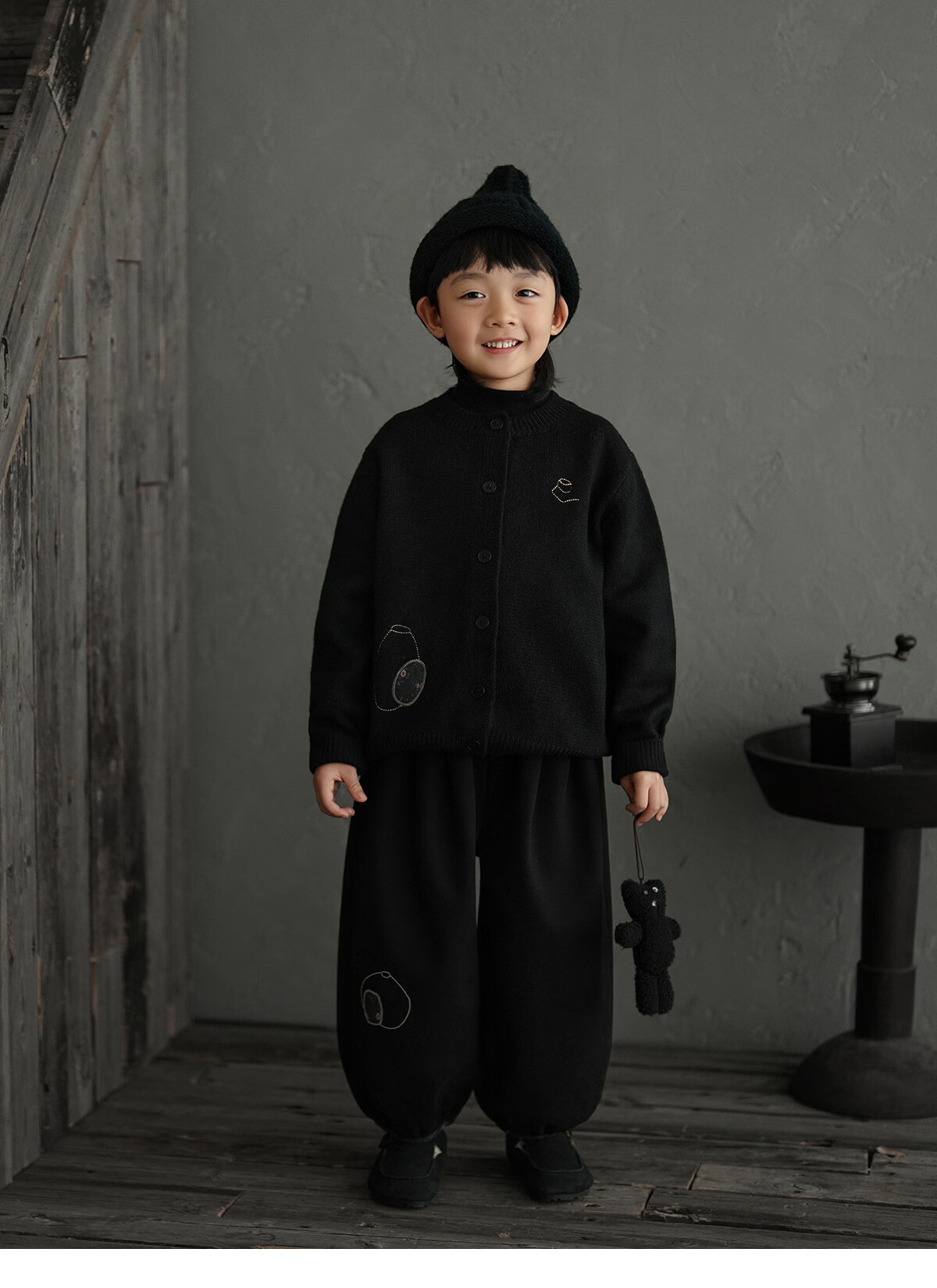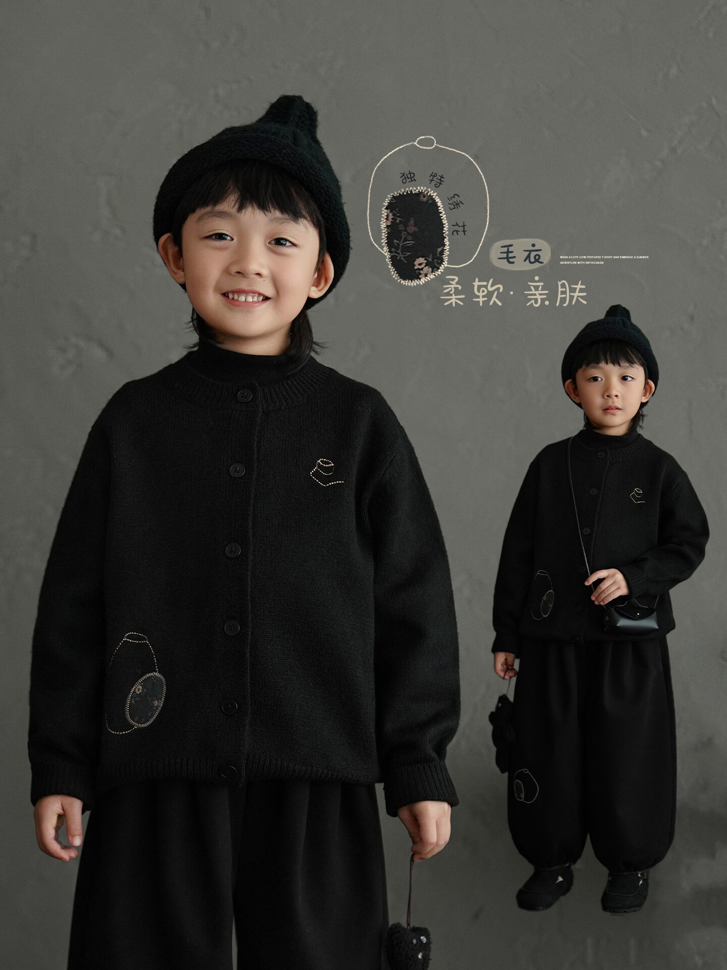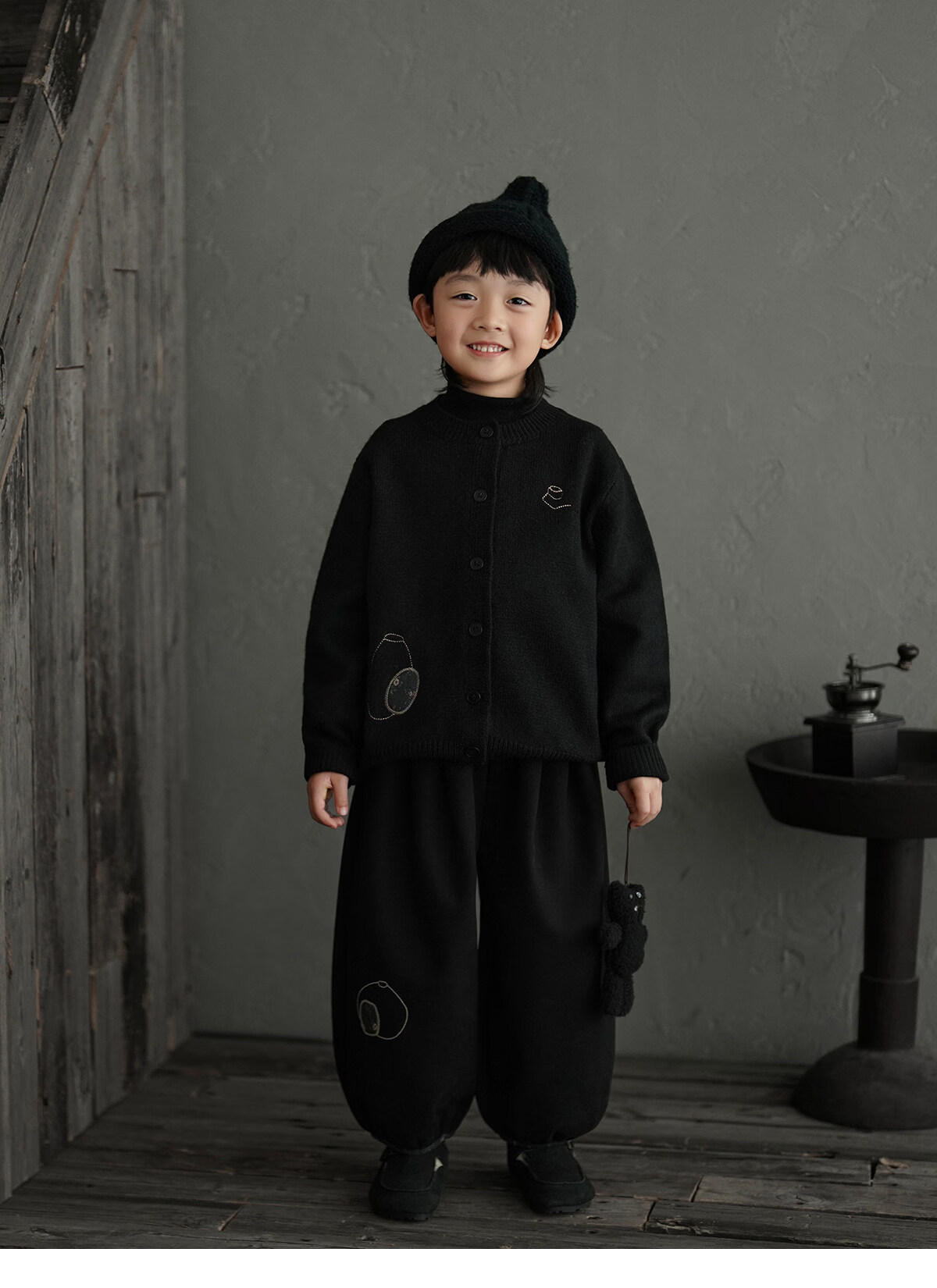 Yantaijia boys' warm sweater cardigan 2025 winter new style children's black knitted sweater versatile children's clothing black 130
