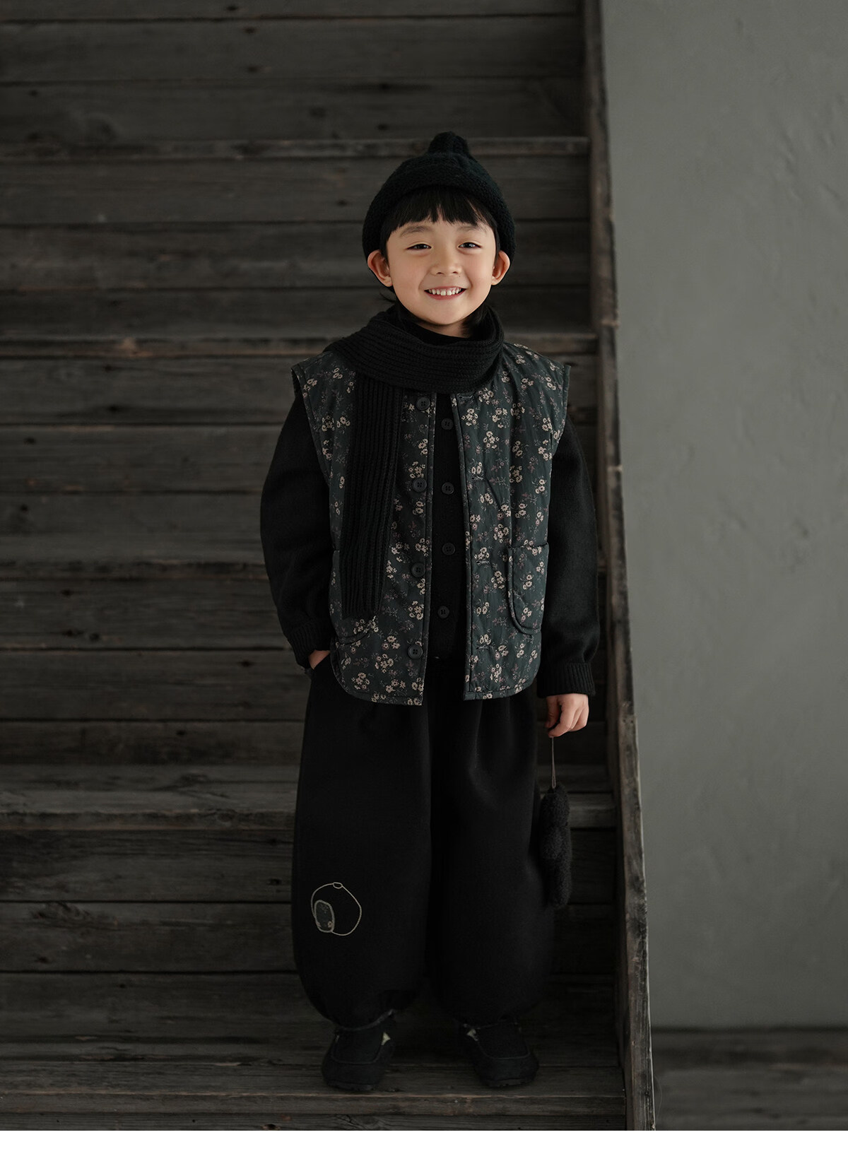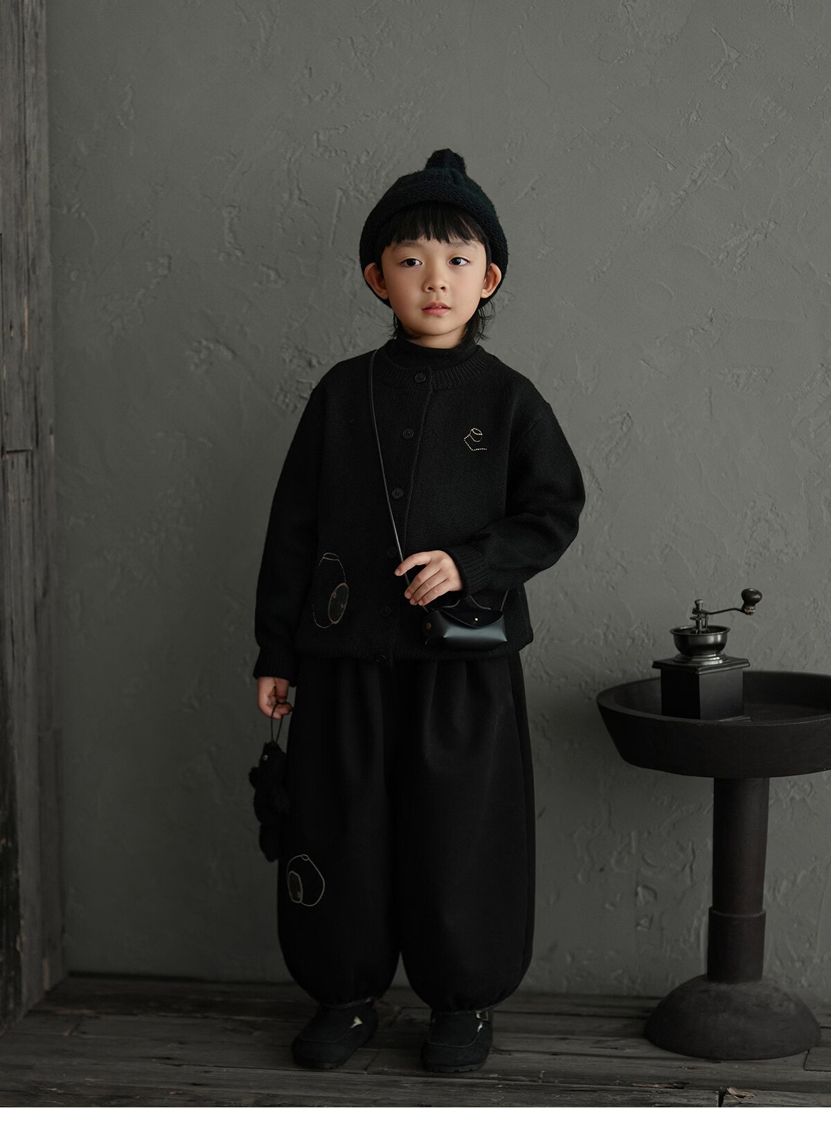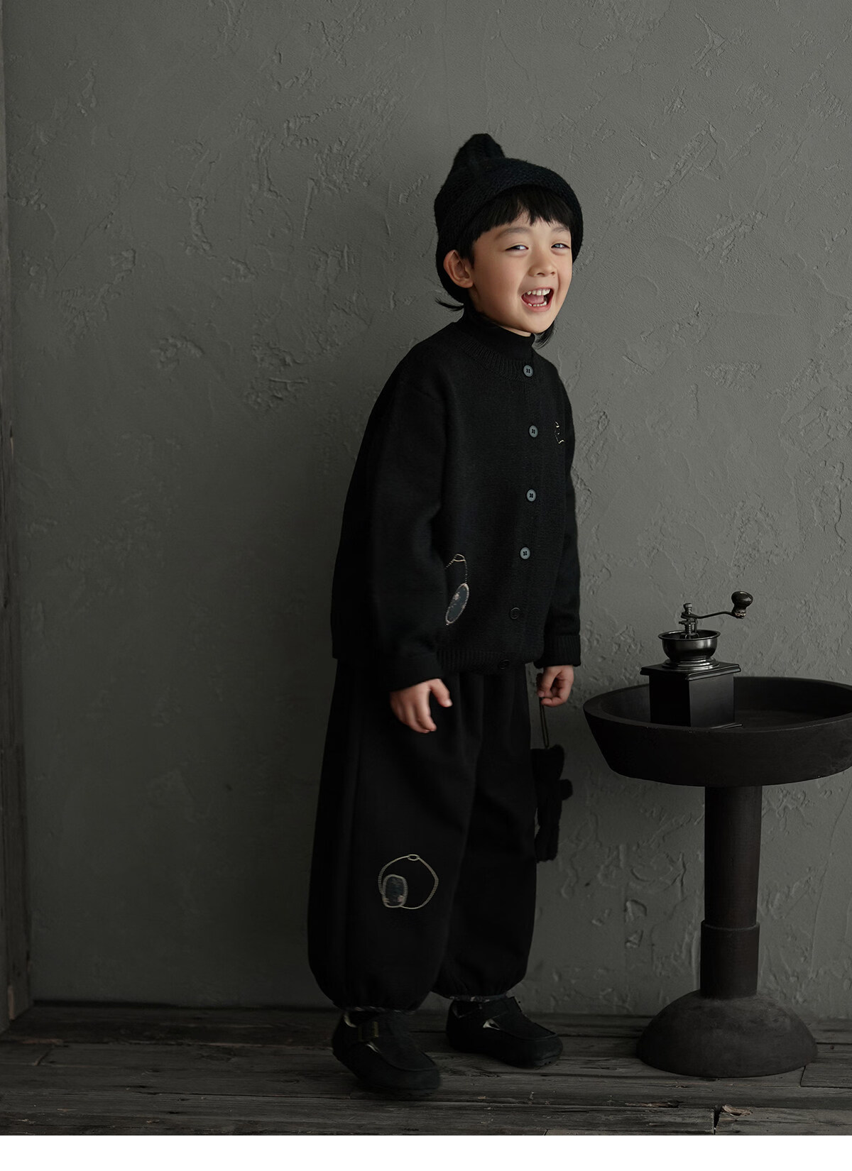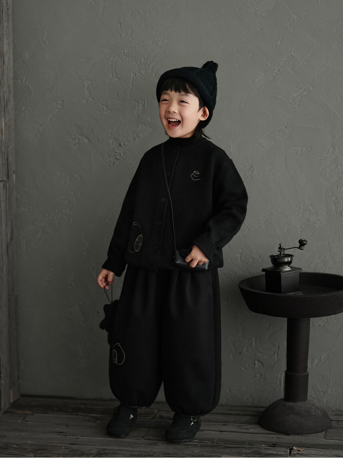 Yantaijia boys' warm sweater cardigan 2025 winter new style children's black knitted sweater versatile children's clothing black 130