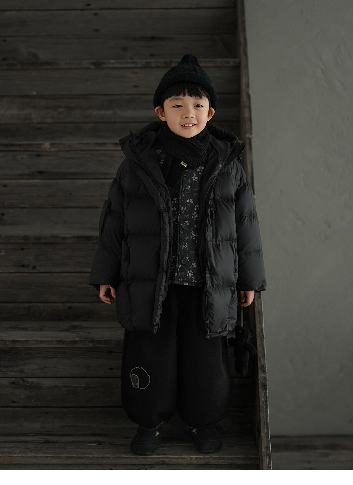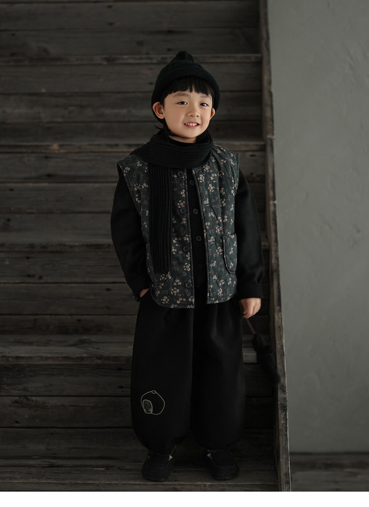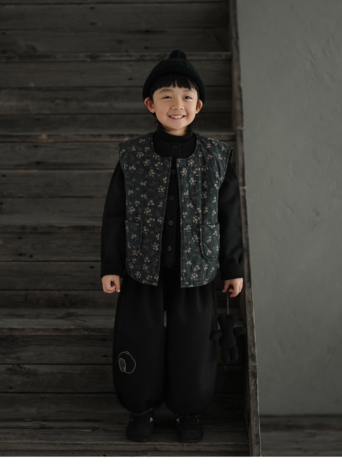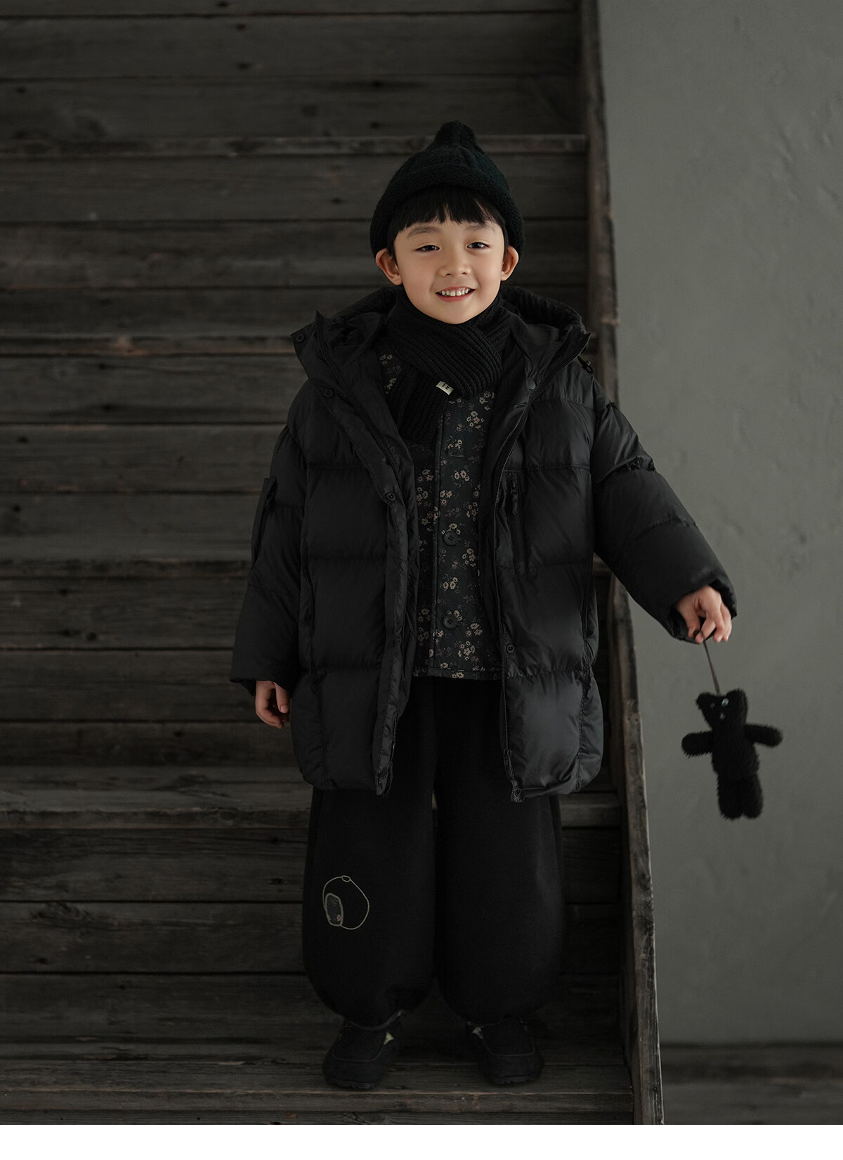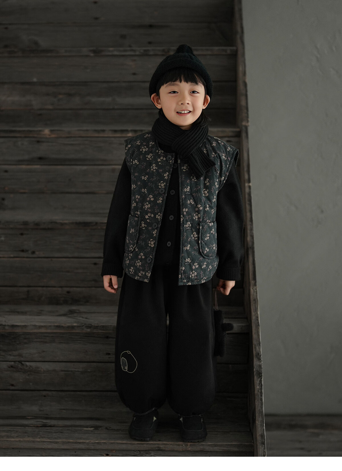 Yantaijia boys' warm sweater cardigan 2025 winter new style children's black knitted sweater versatile children's clothing black 130