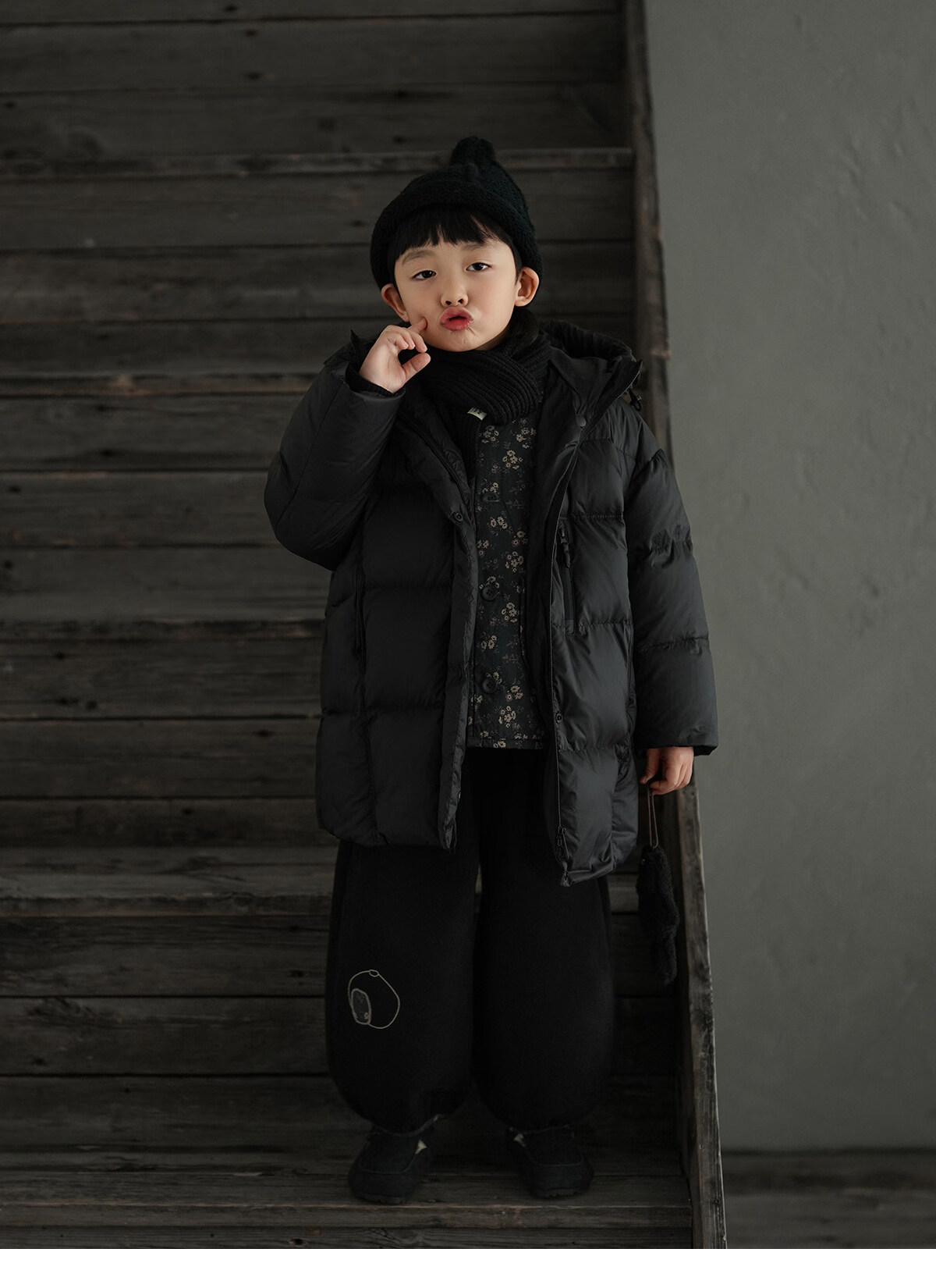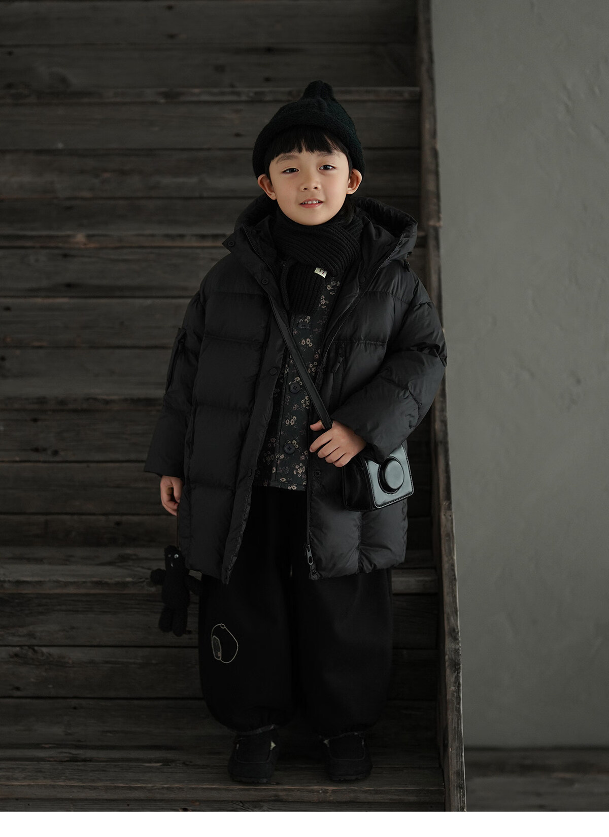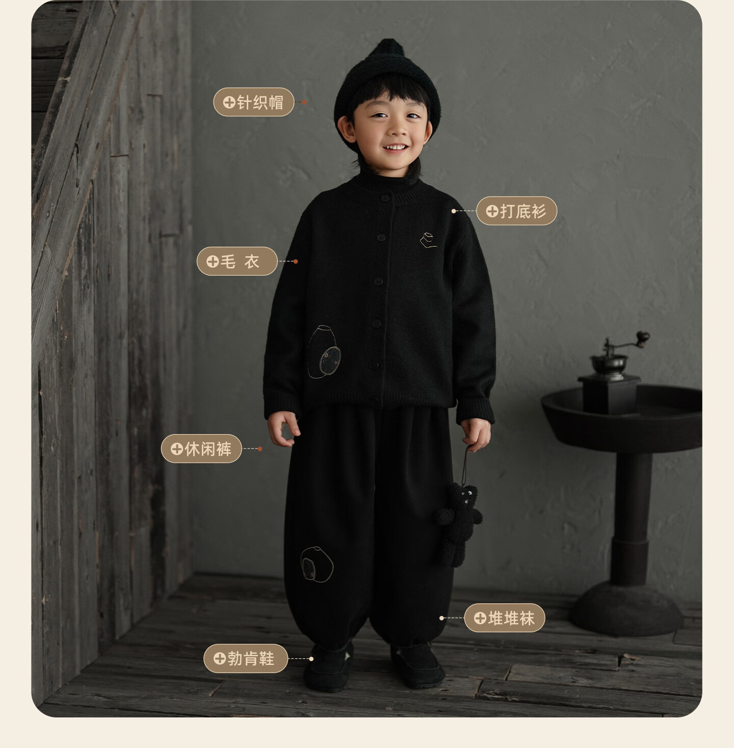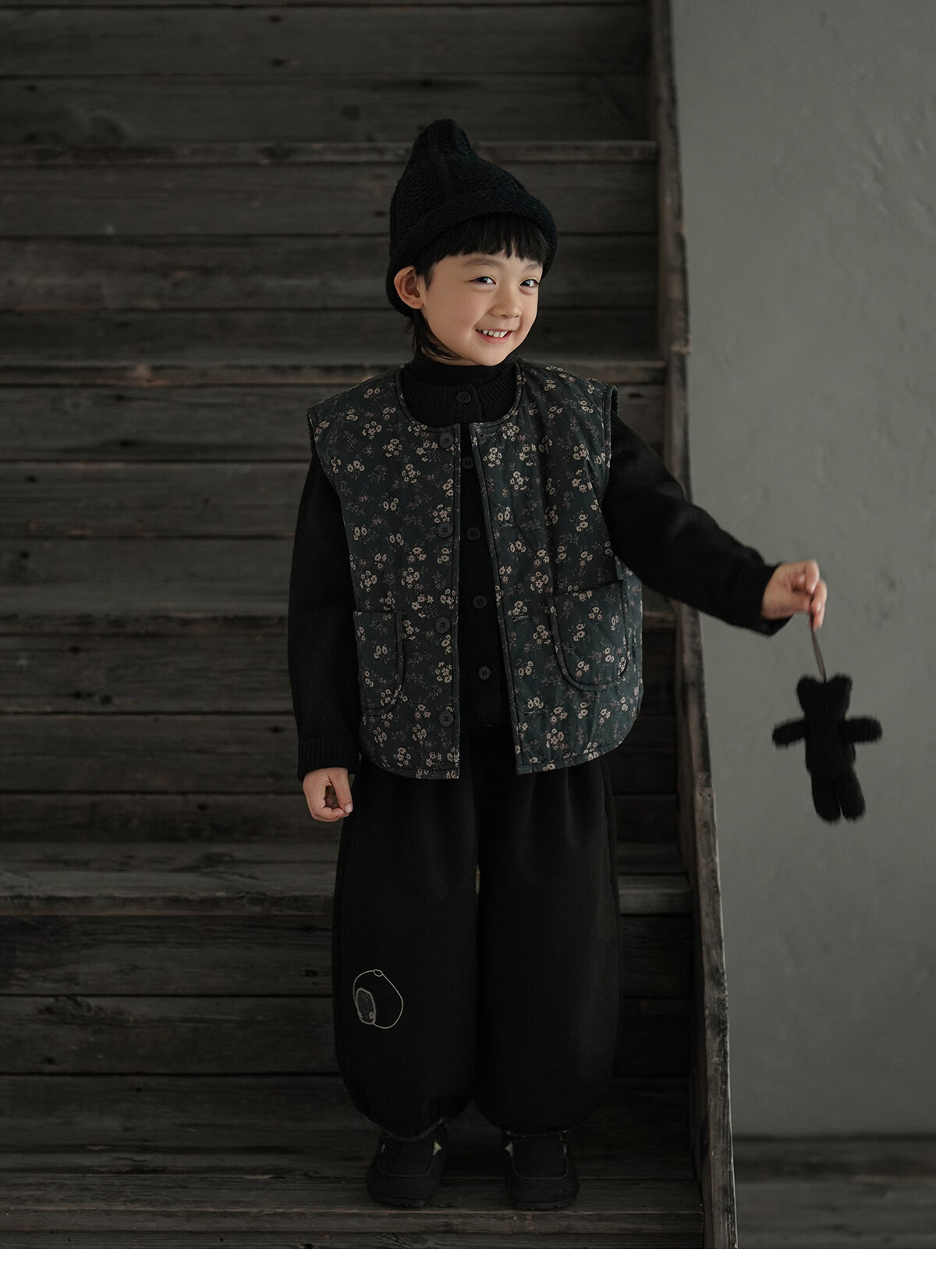 Yantaijia boys' warm sweater cardigan 2025 winter new style children's black knitted sweater versatile children's clothing black 130
