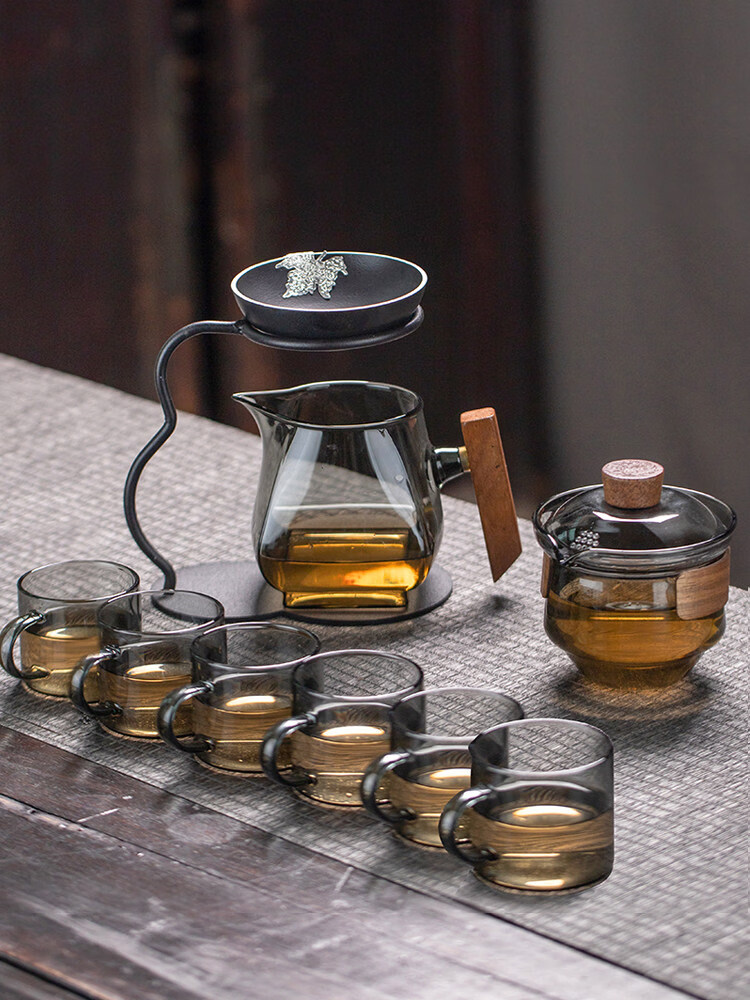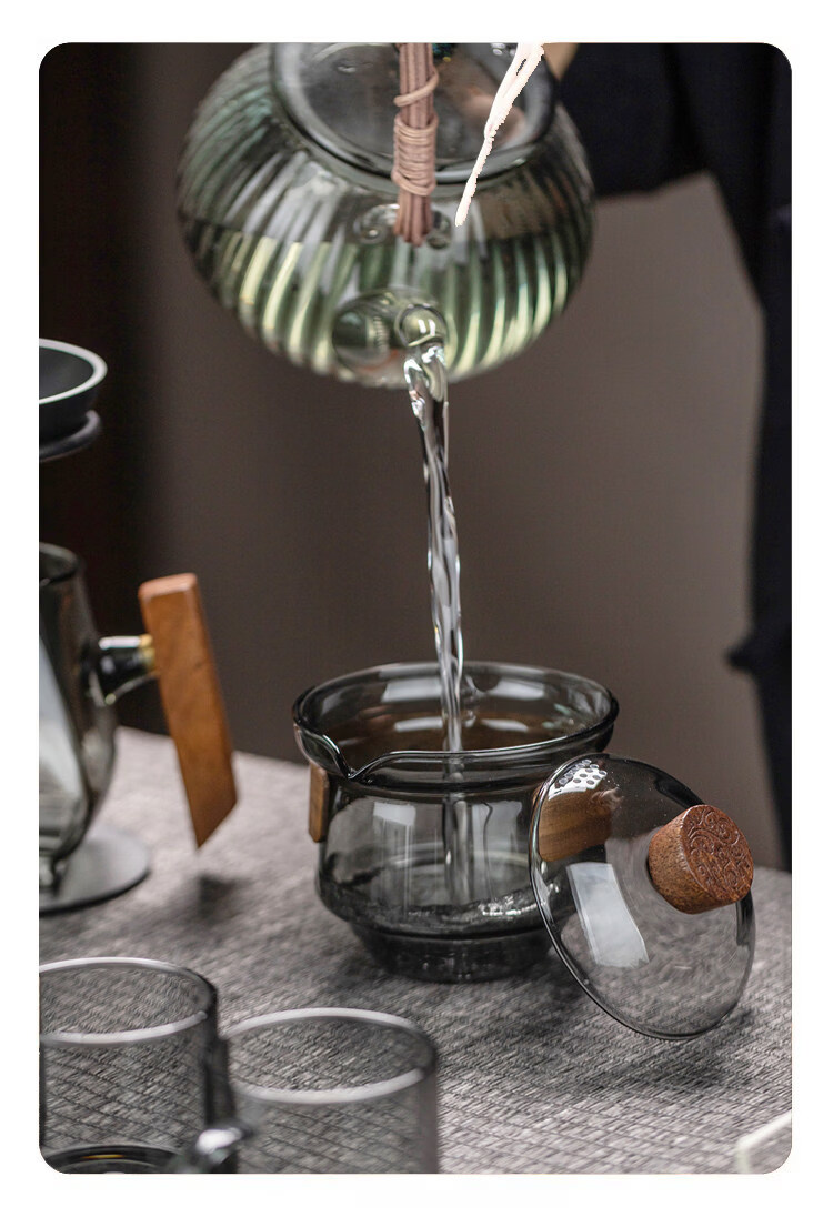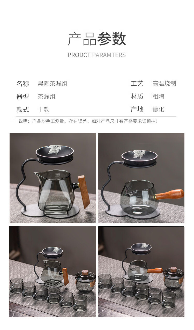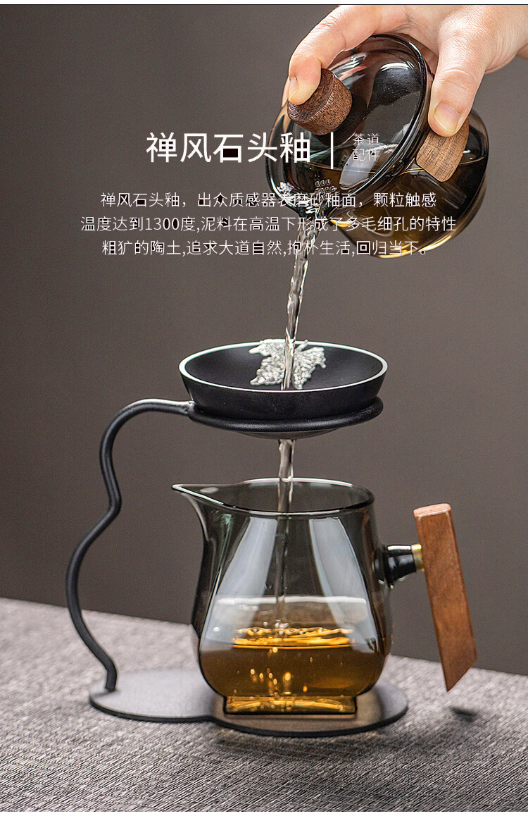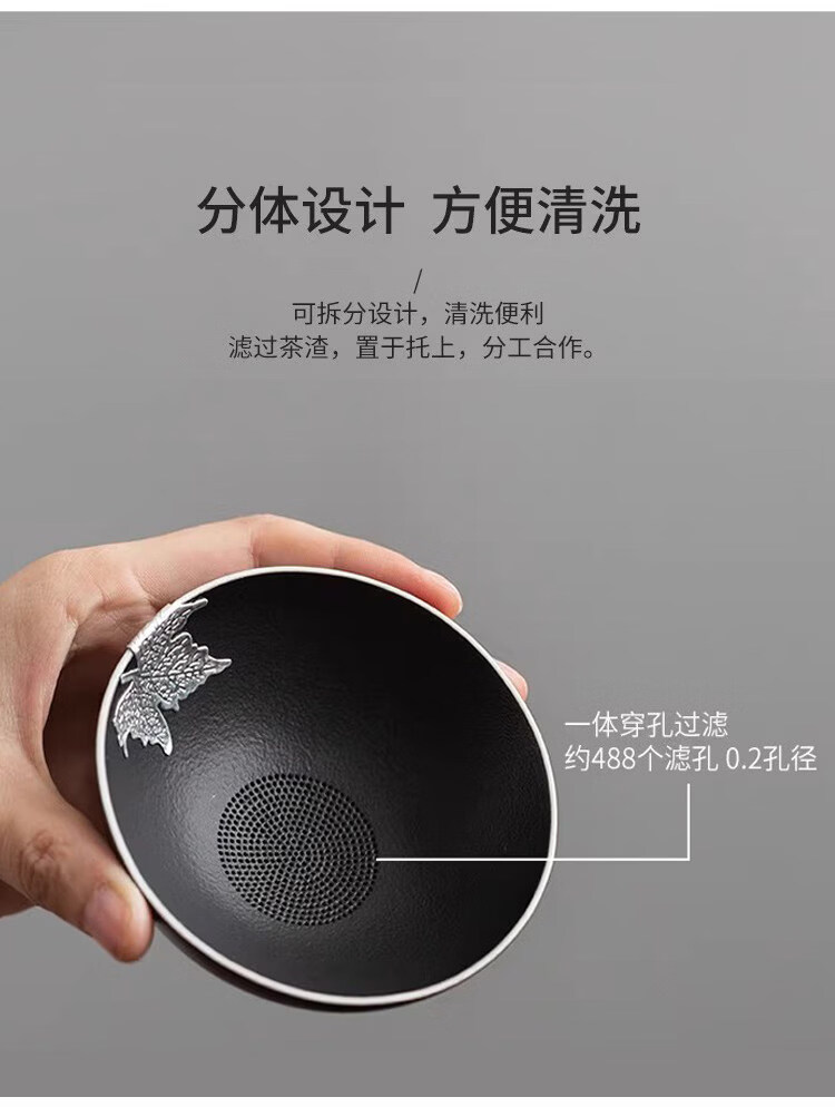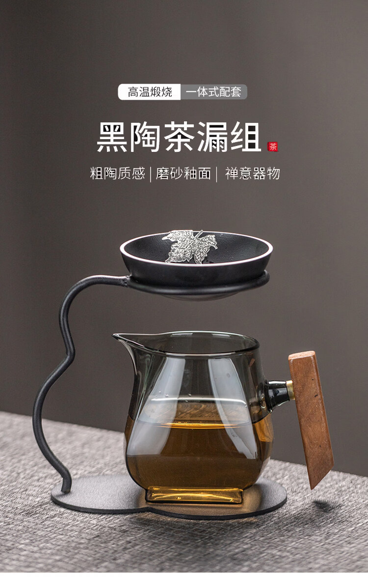 He Jiagong tea drain, tea drain, tea filter, glass fair cup, one-piece tea house tea spacer, tea brewing ceramic non-porous filter bracket, black pottery tea drain set + Guanshan male cup (ash) + rain shower bowl