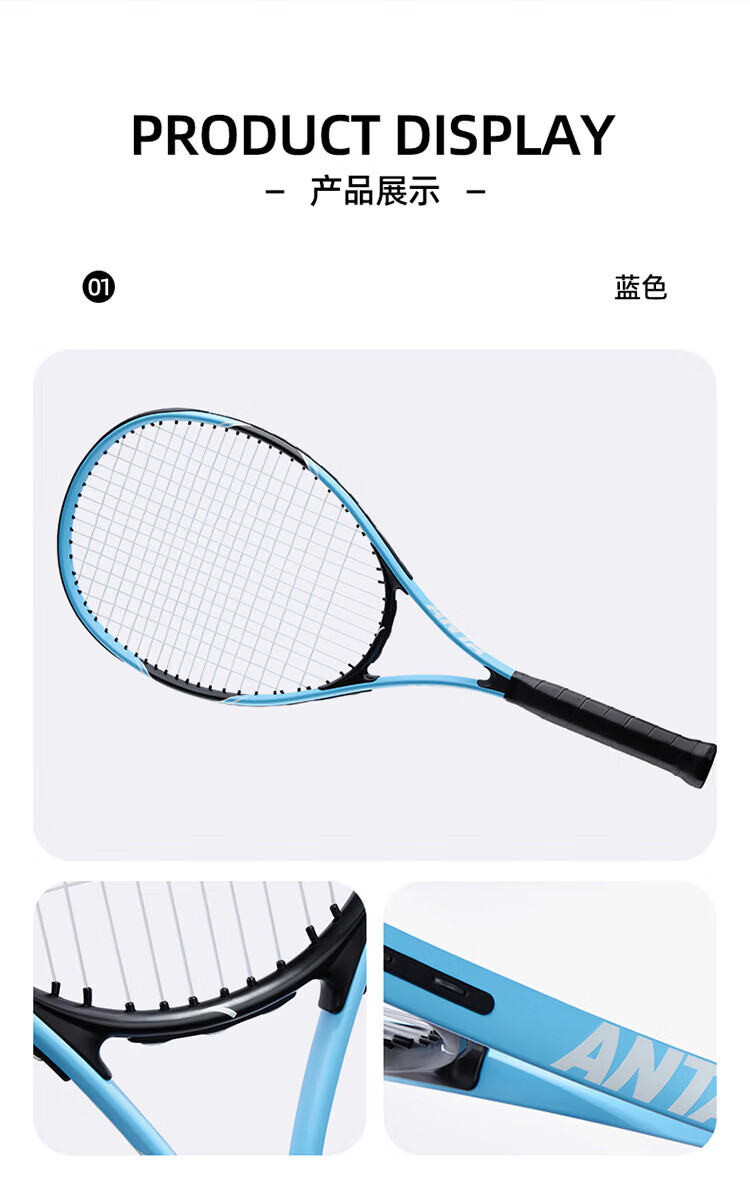 ANTA children's men's and women's tennis rackets 2026 four seasons new aluminum alloy racket tennis sports equipment blue-1