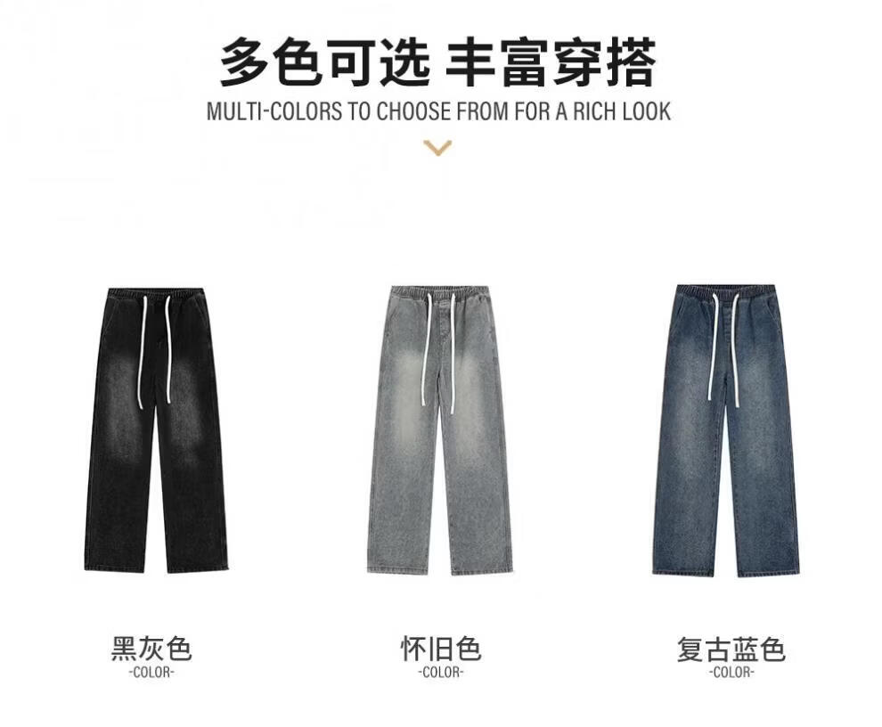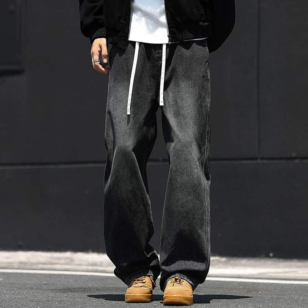 Woodpecker American high street casual jeans for men 2026 spring and autumn new fashion brand versatile wear-resistant straight wide-leg long pants black gray autumn new XL