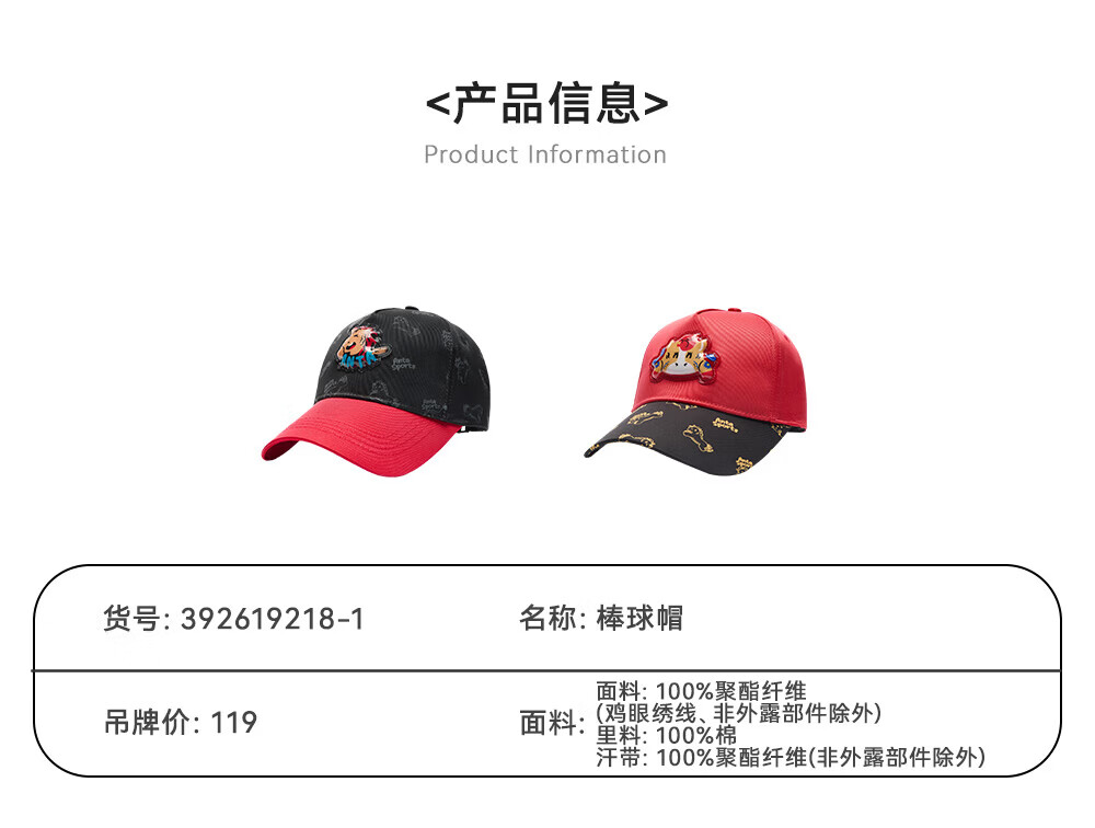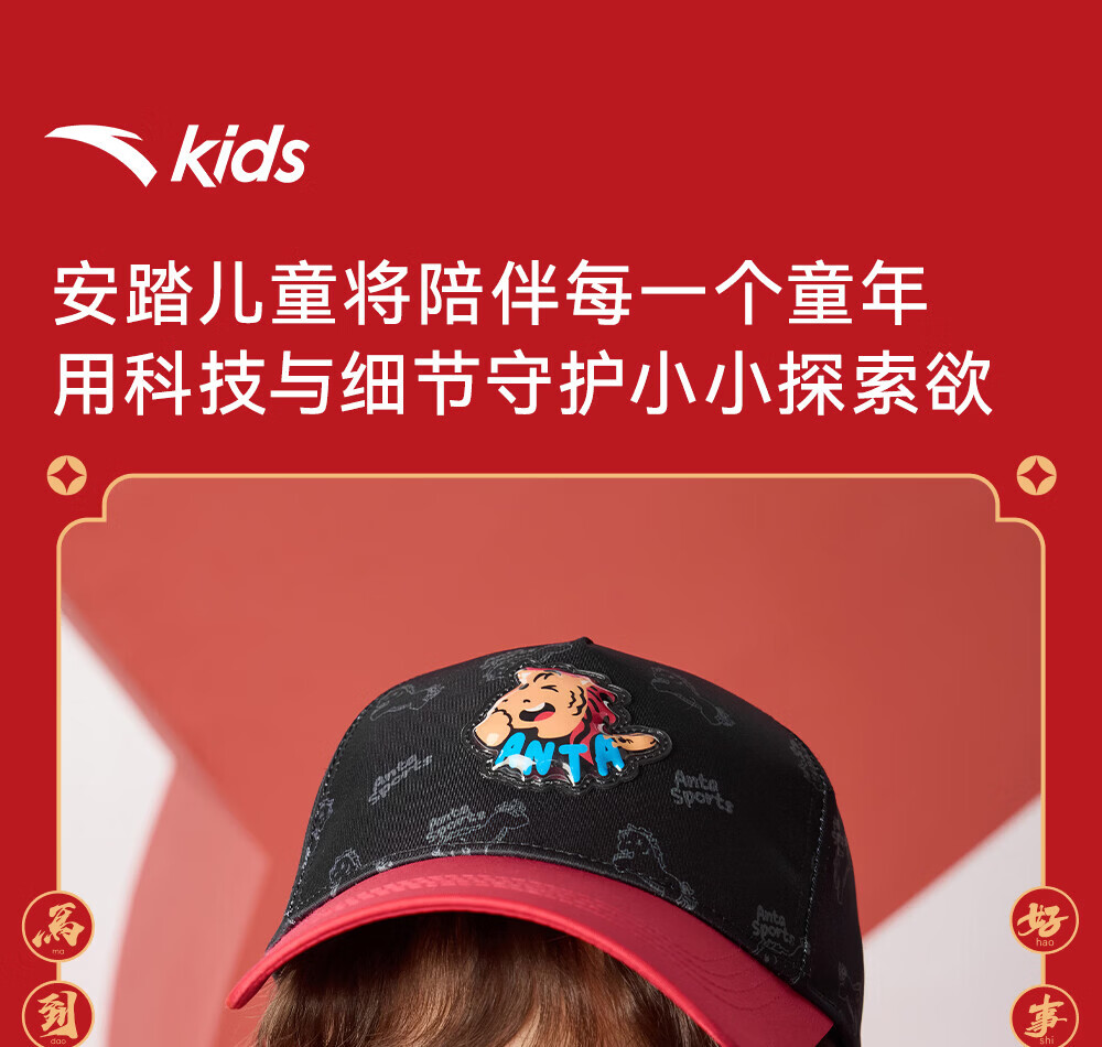 ANTA Children's Hats Baseball Cap for Boys and Girls 2026 Spring New Year Red Festive Sun Hat 392619218 Red-3 One Size