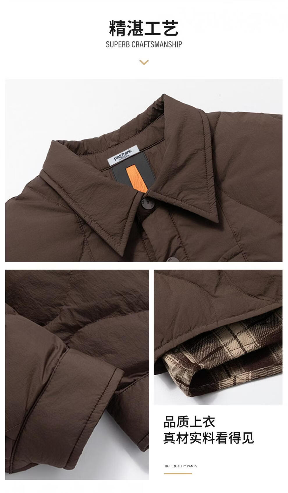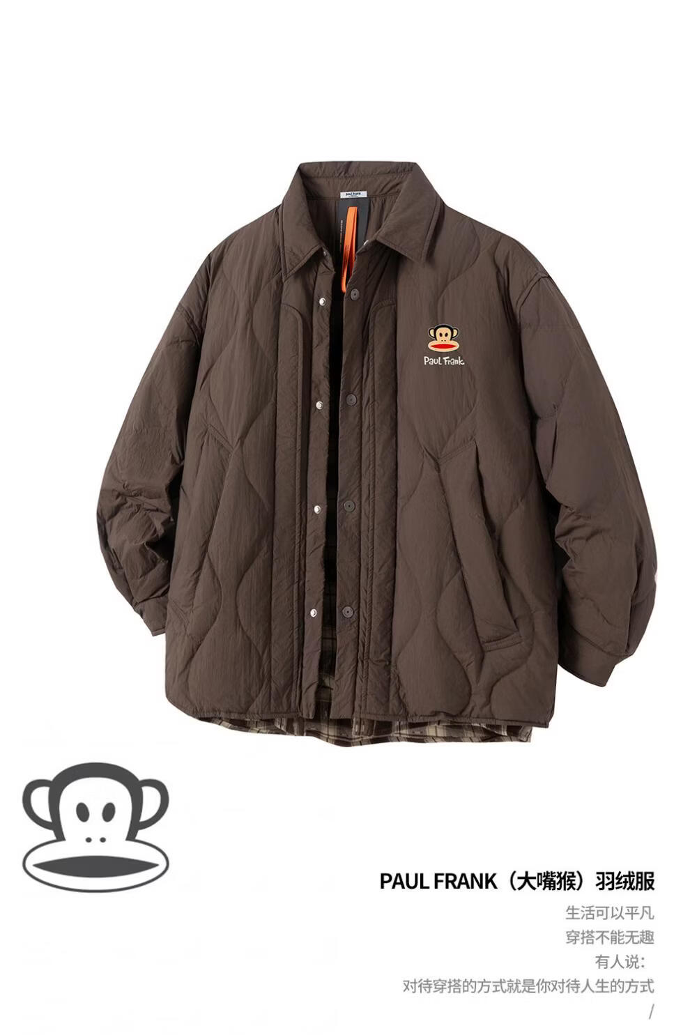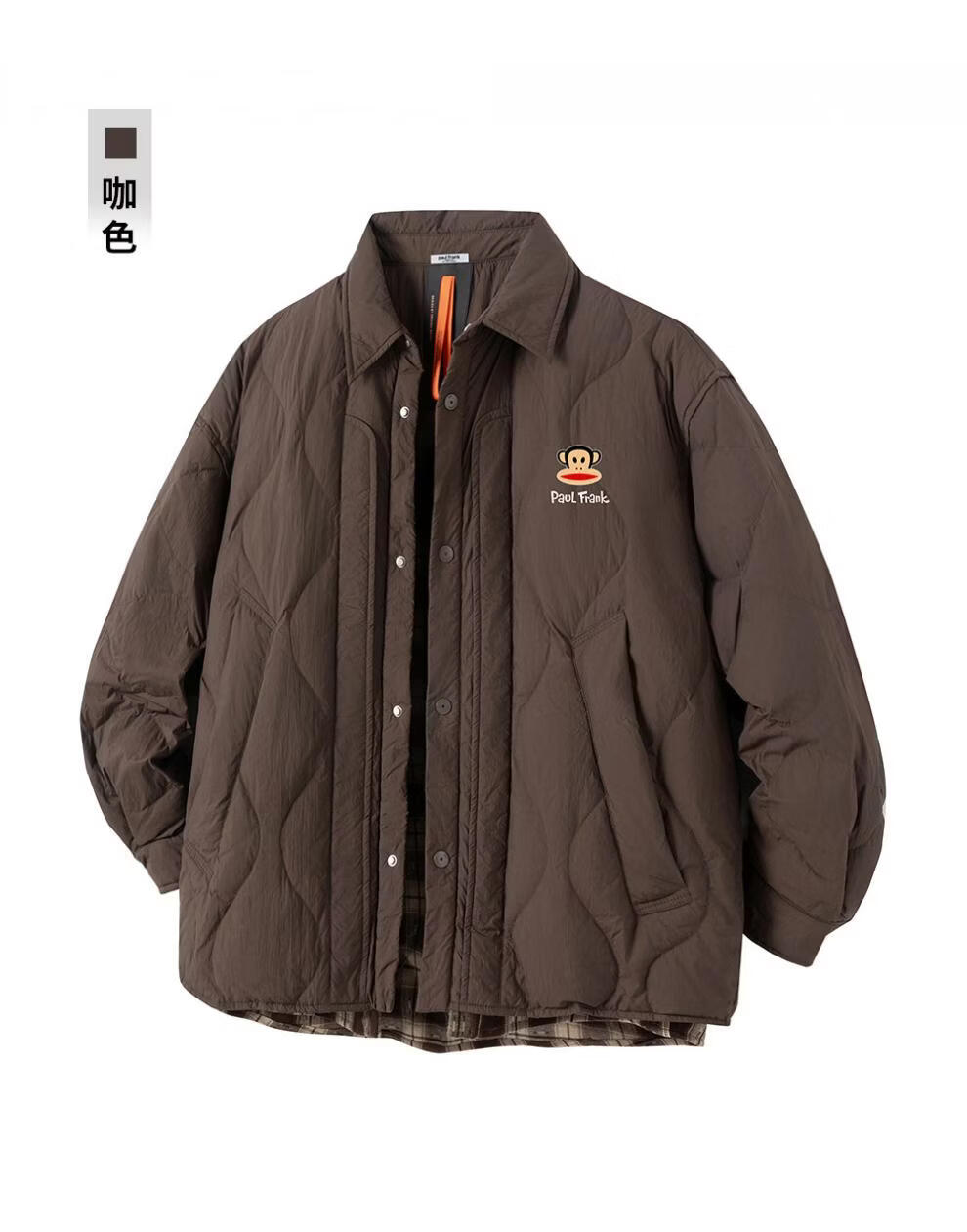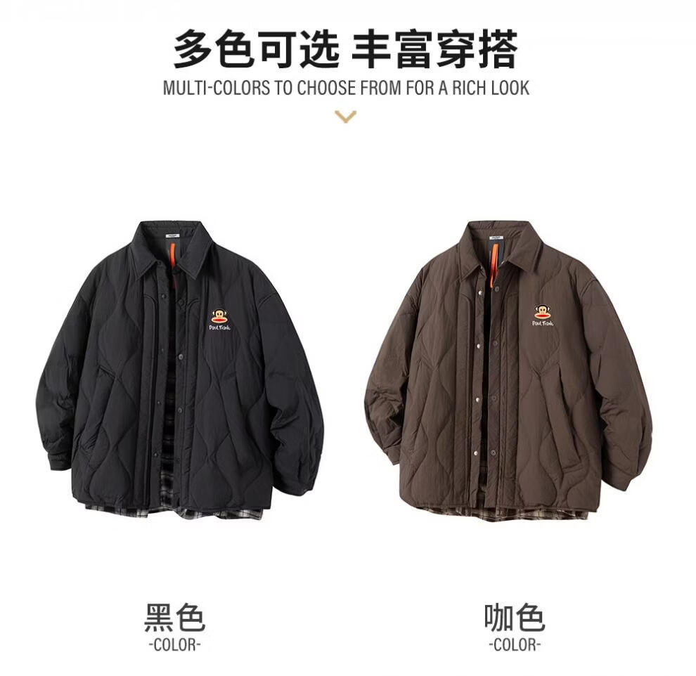 大嘴猴(paul frank)港式复古休闲羽绒服男士2026年春季新款保暖时尚简约加厚潮牌上衣 咖色+咖色 【优惠两件装】 XL 【建议130-150斤】
