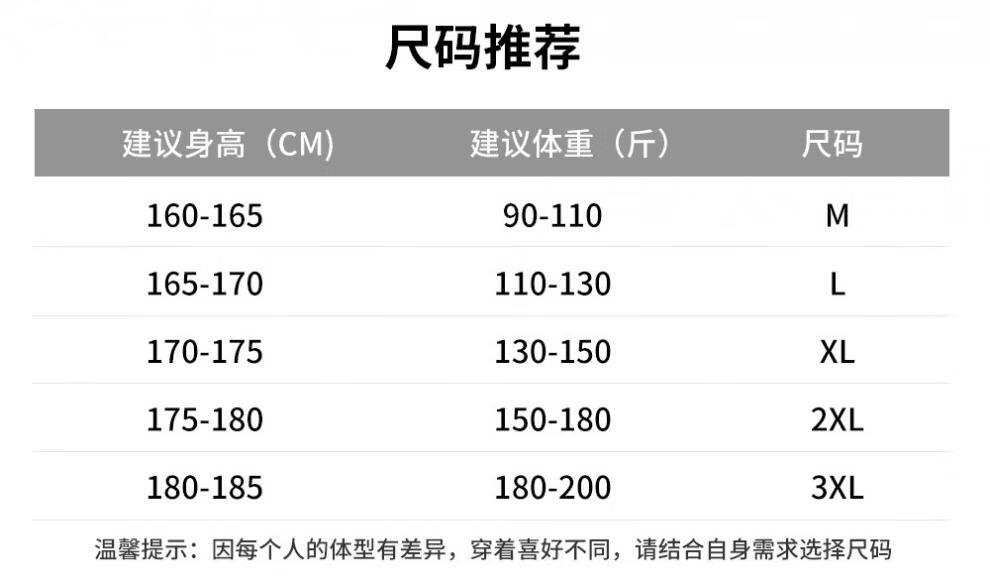 China (cm) 165 / 88-90 170 / 96-98 175 / 108-110 180 / 118-122 185 / 126-130