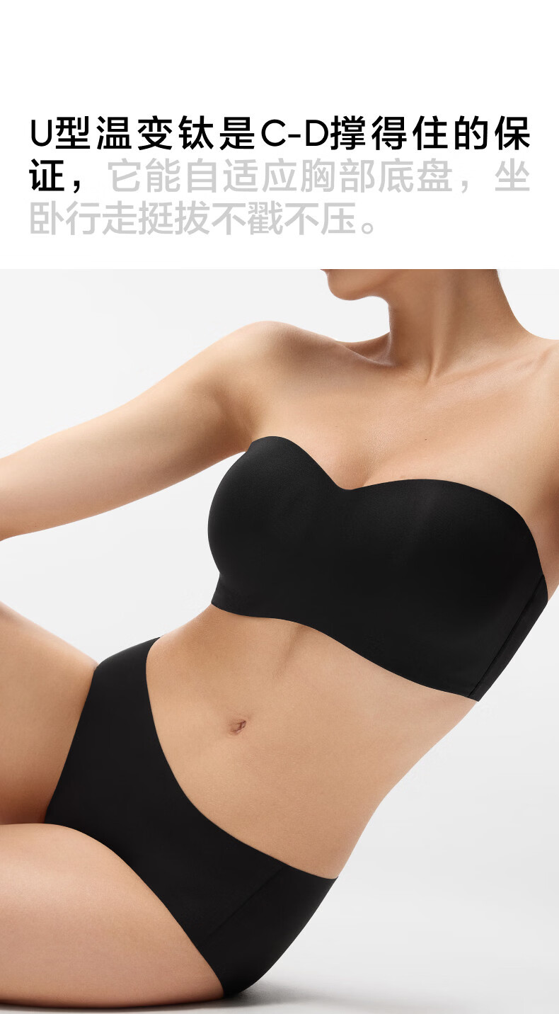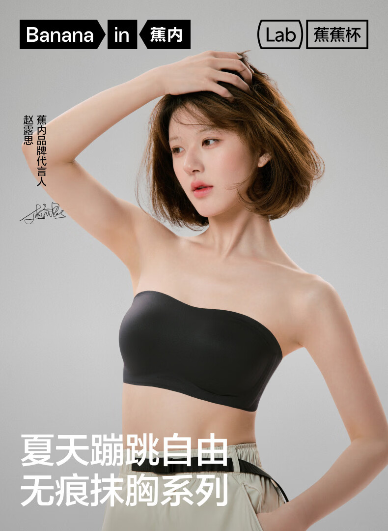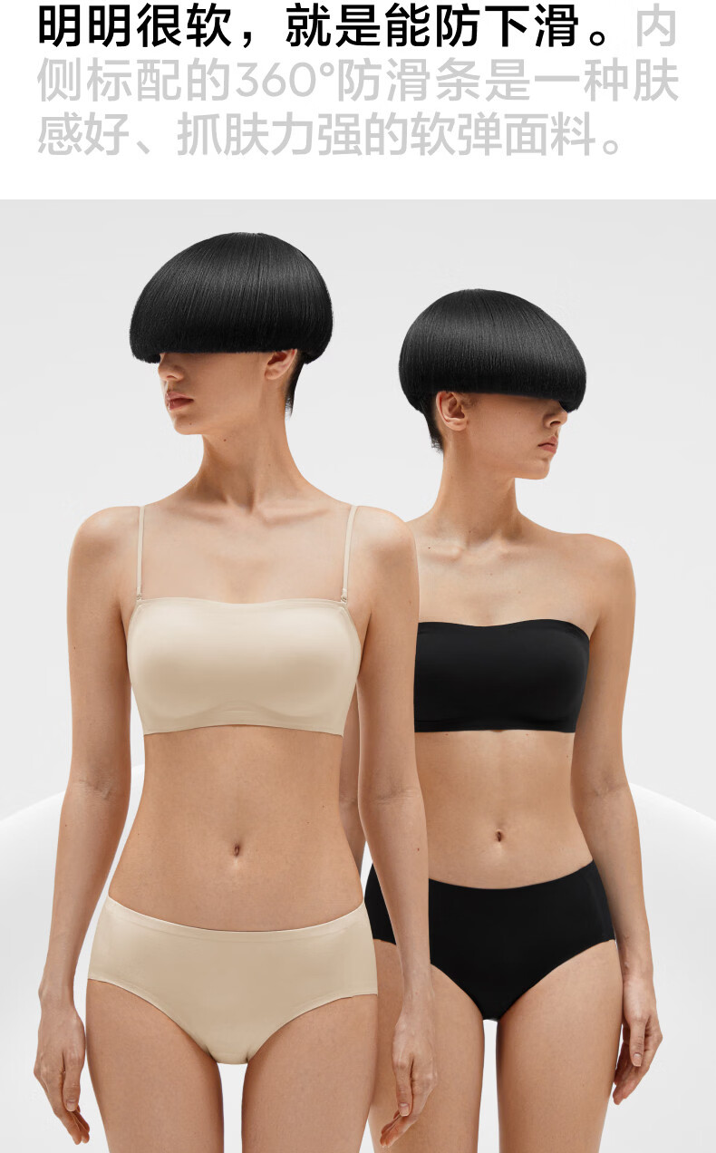 Anti-exposure tube top Zhao Lusi's same style 5 series tube top strapless bra for women in summer, seamless and non-slip beauty, rounded version, black + light skin (2 pieces more, cost-effective) S (70A/70B)