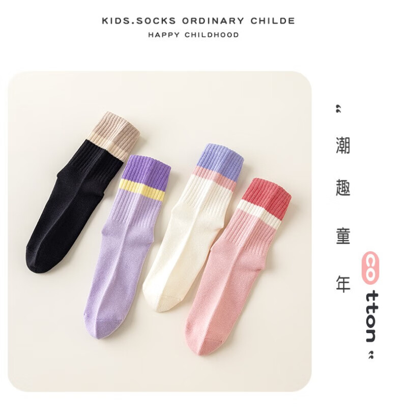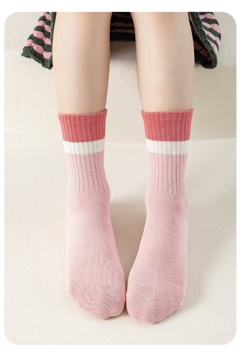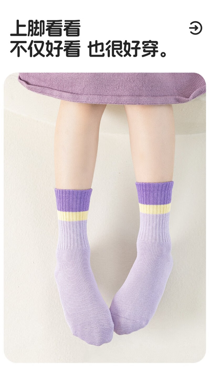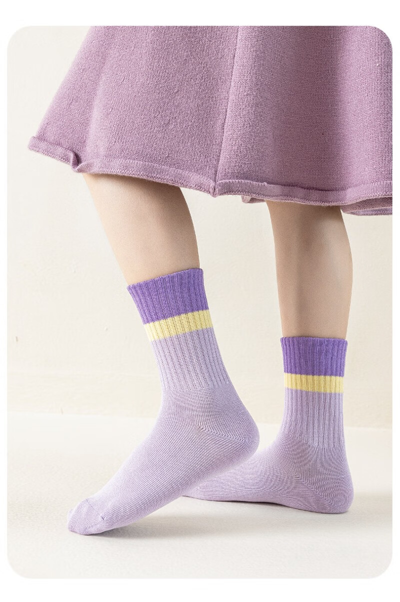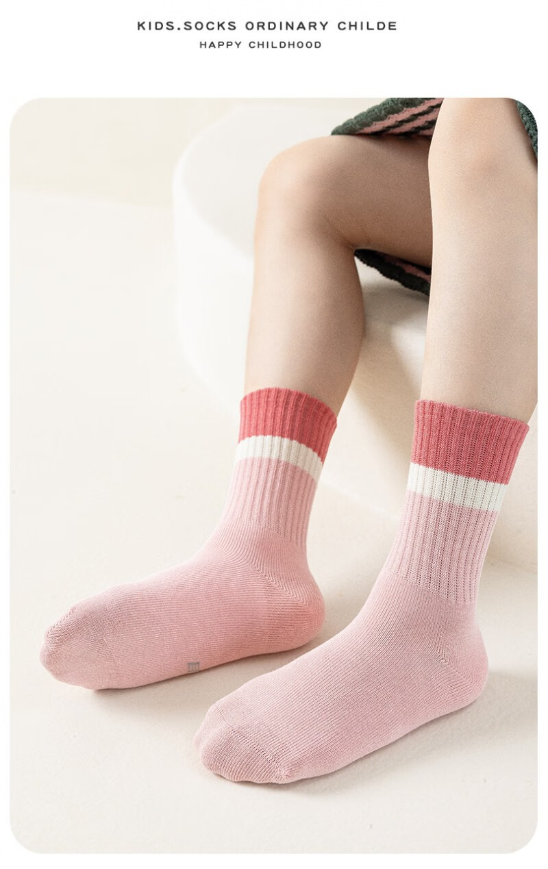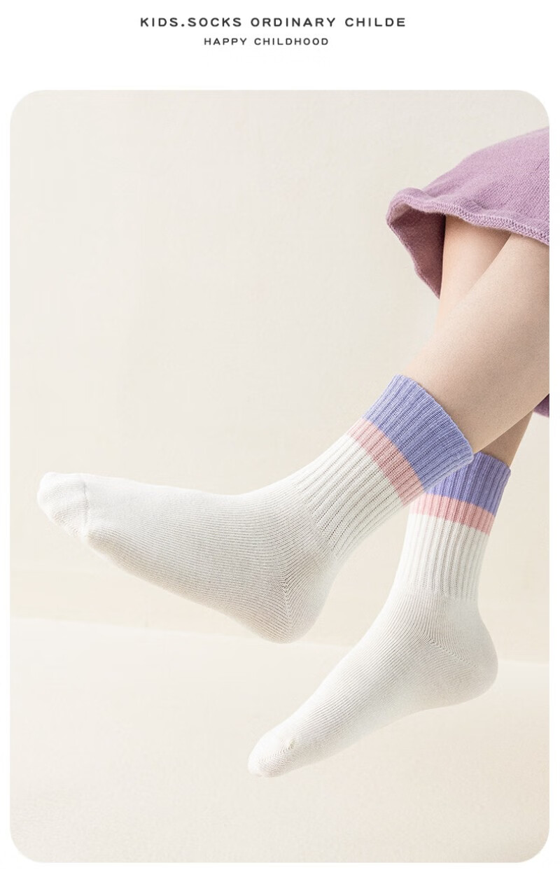 2025 Autumn New Girls Mid-Tube Socks Class A Pure Cotton Sweat-Absorbent Breathable Sports Socks Medium and Large Children Color Matching Boneless Socks QH2553 Hundred Cotton Color Matching Girls Series 5 Pairs One Size XL (9-12 Years Old)