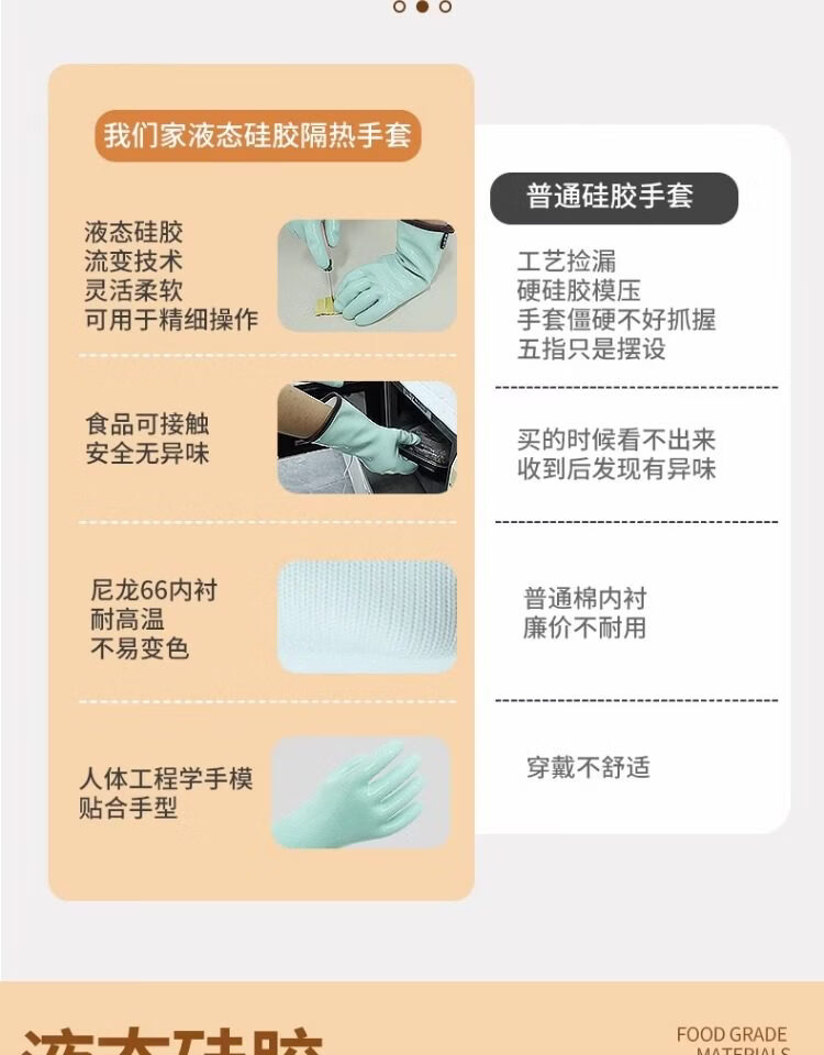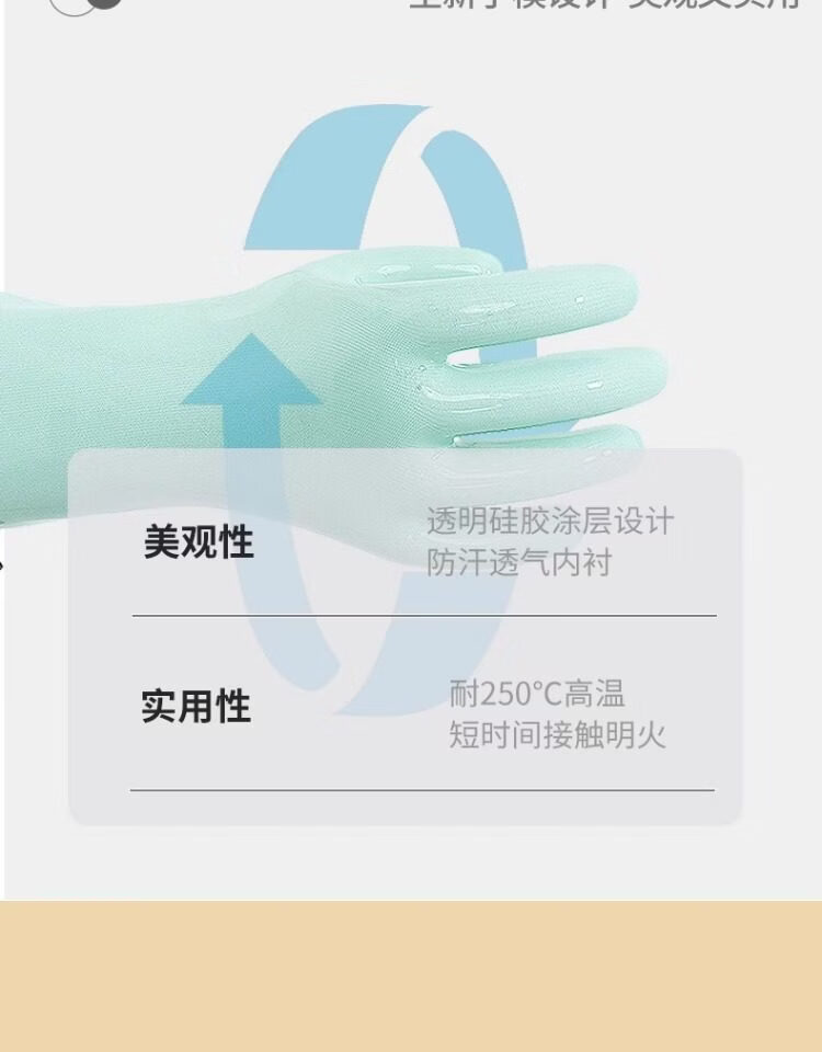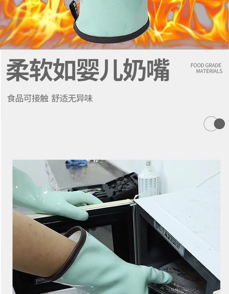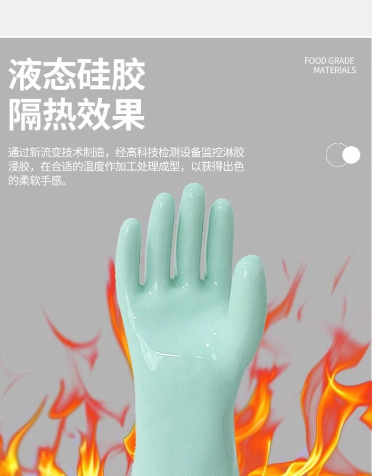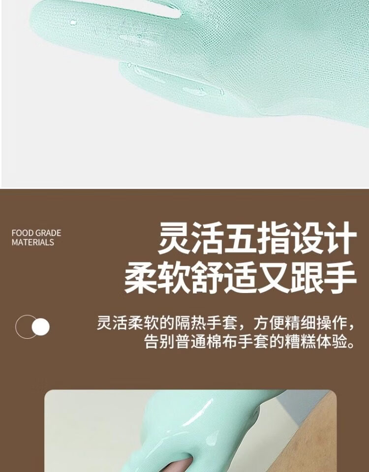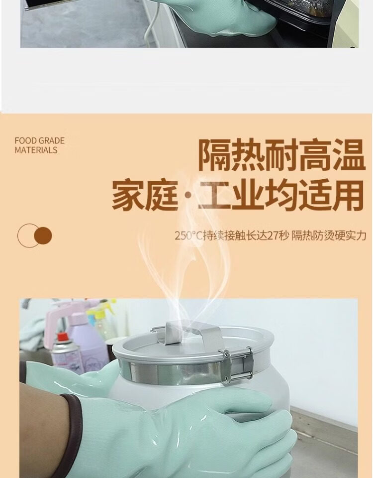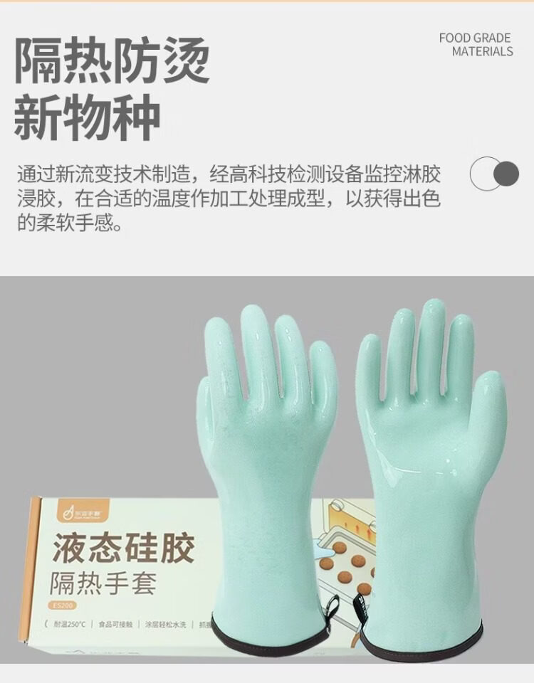 1 Liquid silicone gloves household high temperature resistant heat insulation food grade kitchen waterproof anti-scald oven thickening upgrade version store promotion liquid silicone heat insulation gloves turquoise length 30c1 L