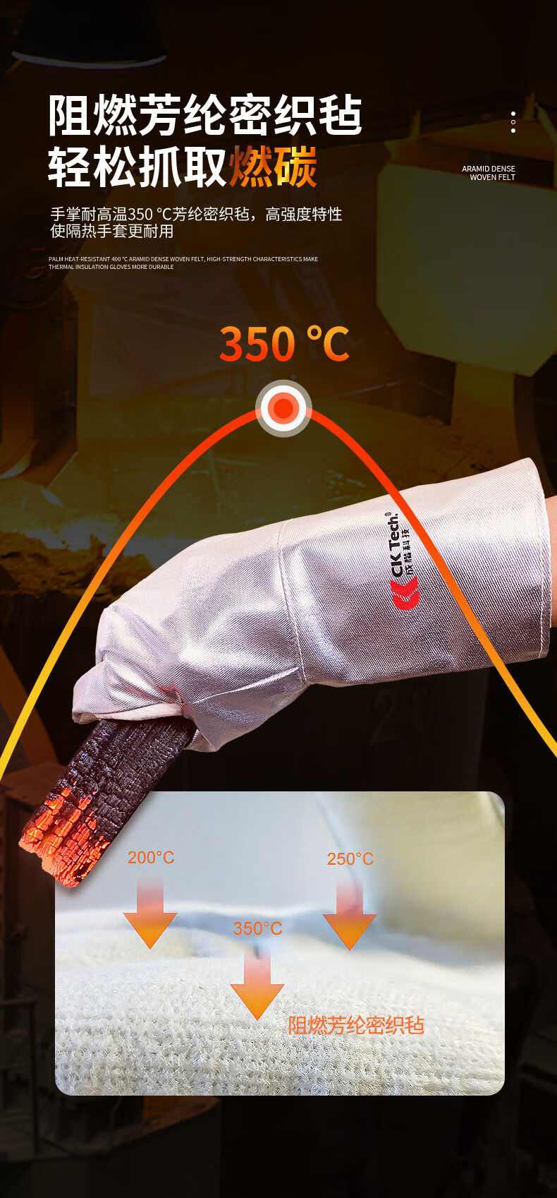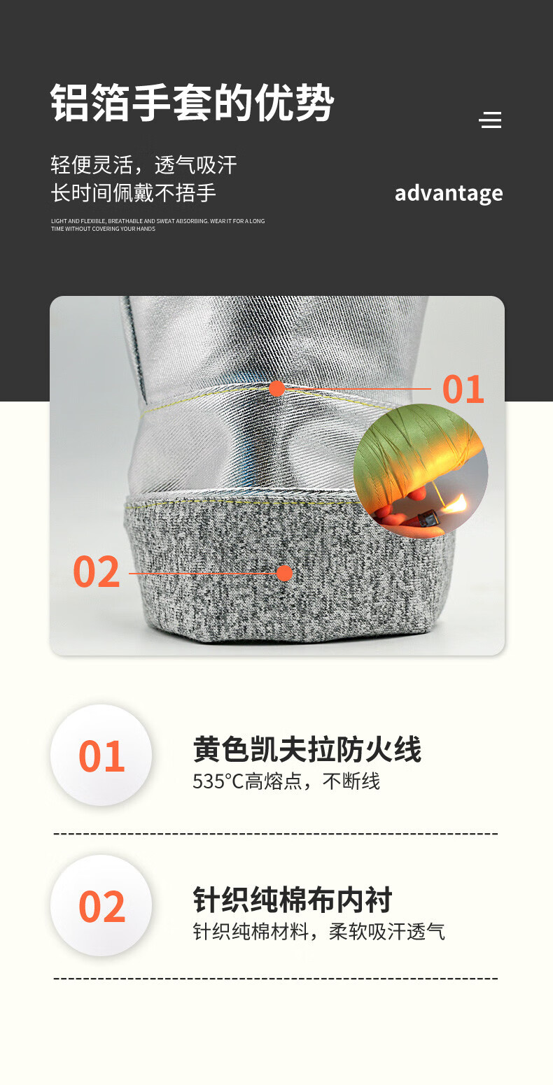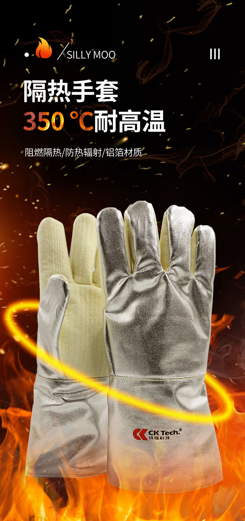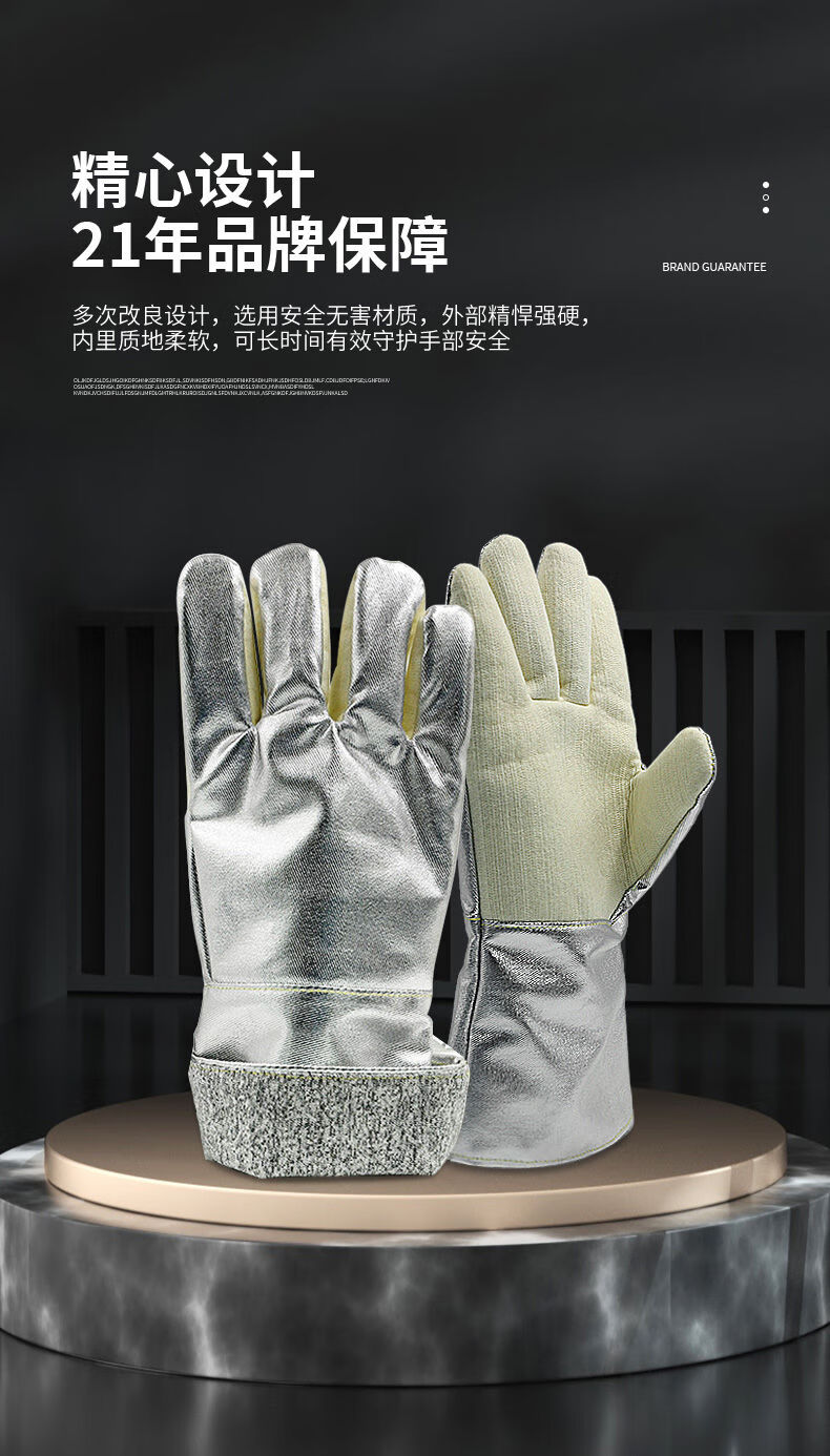 1 High temperature resistant 350 degree aluminum foil oven extra thick anti-scalding thickened flame retardant industrial heat resistant fireproof flexible insulation upgraded version 350 aluminum foil heat insulation gloves length 36cm L