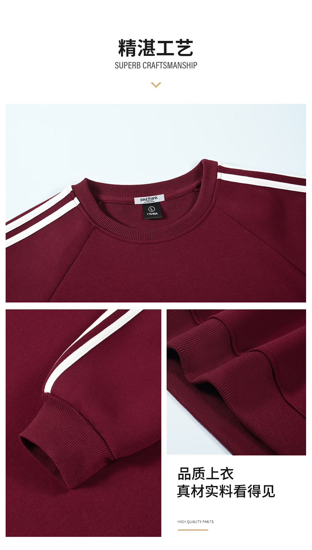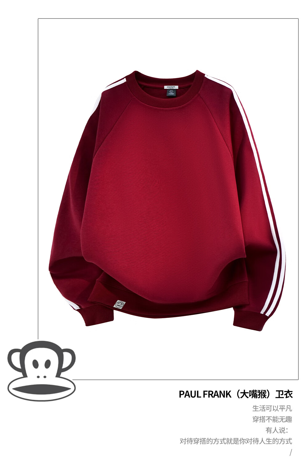 Big mouth monkey (paul frank) zodiac new year red round neck sweatshirt for men spring and autumn new fashion brand casual versatile contrast color long-sleeved bottoming top burgundy official authentic M recommended 90-110Jin Jin equals 0.5 kg
