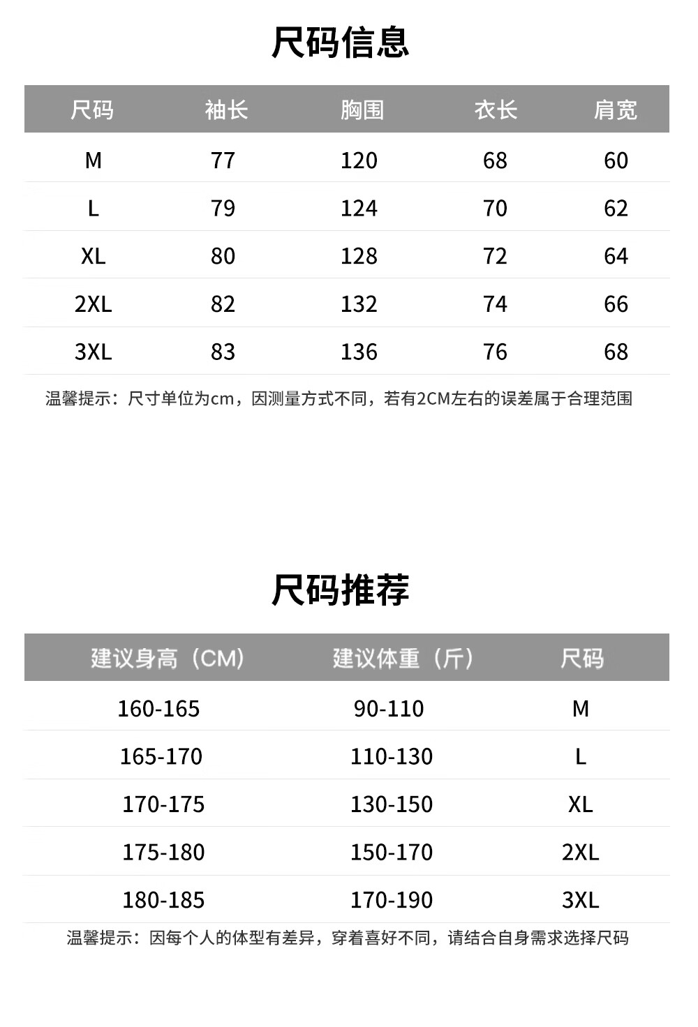 China (cm) 160-165/84-86 165-170 / 88-90 167-172 / 92-96 168-173 / 98-102 170-176 / 106-110