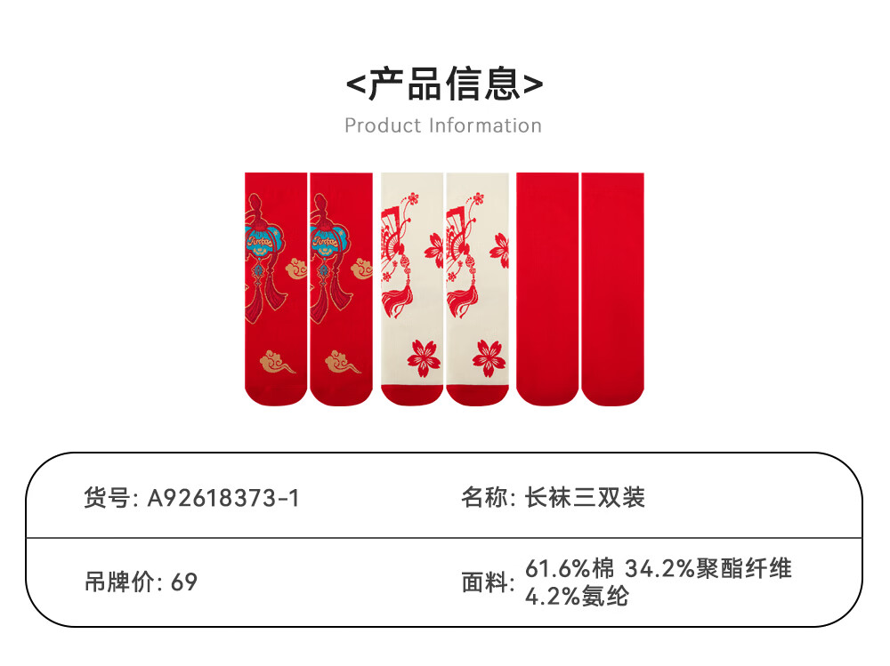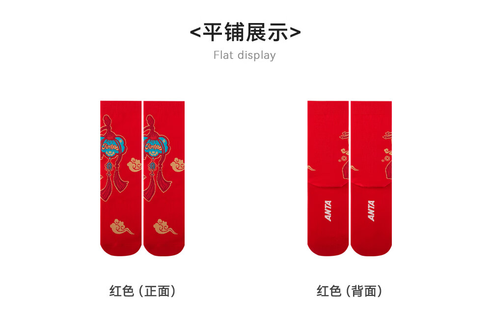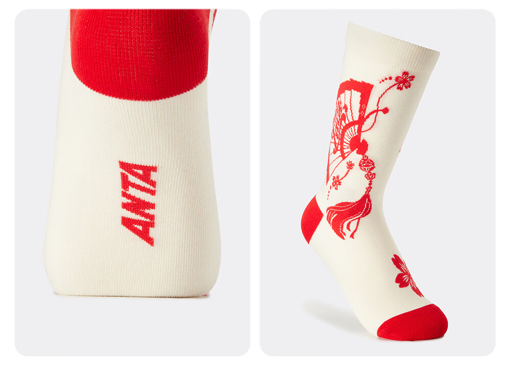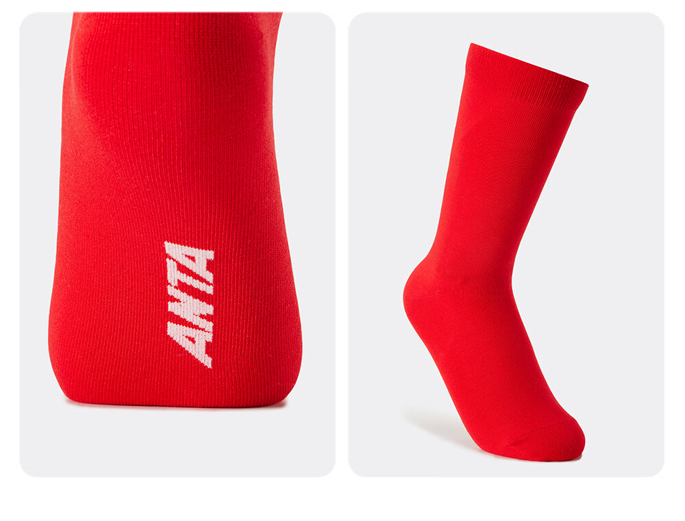 ANTA Children's Socks Three Pairs for Boys and Girls 2026 Spring New Year Red Festive Chinese Style Warm Antibacterial Stockings Red/Beige/Red-1 S