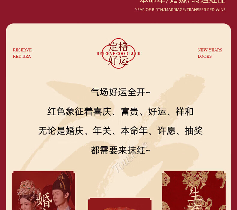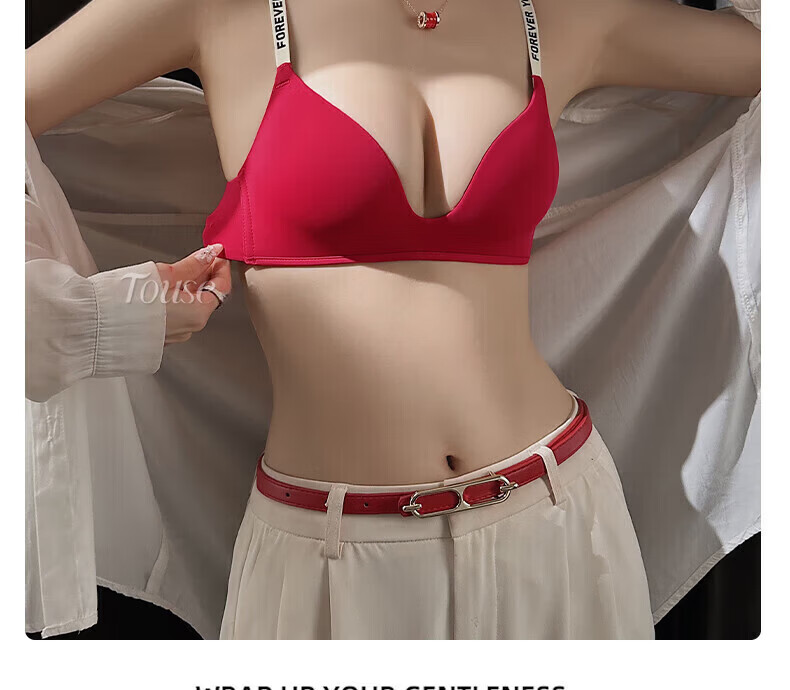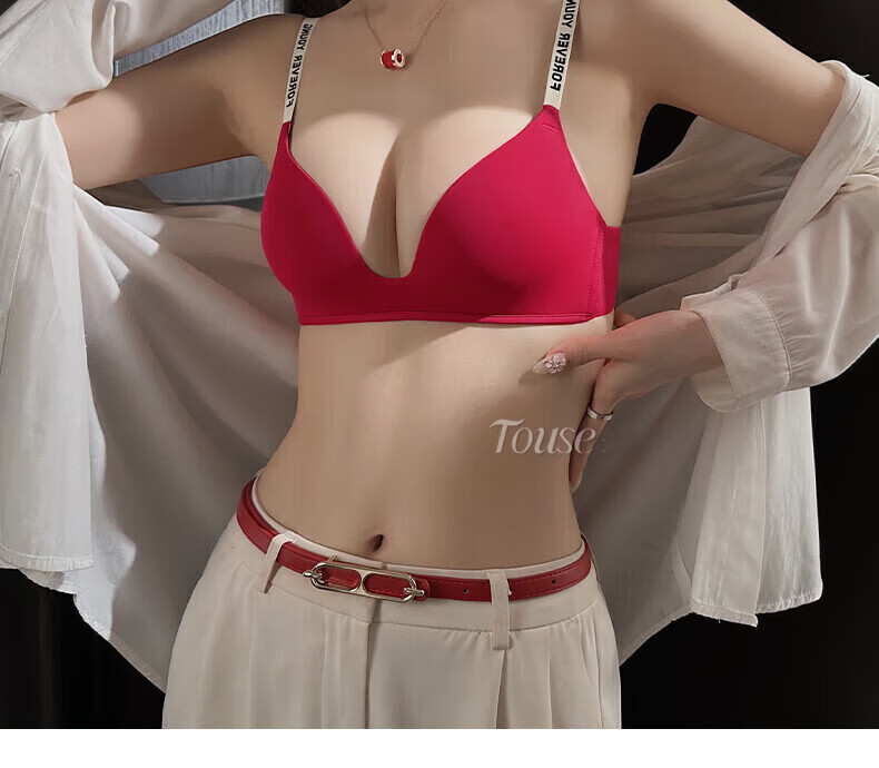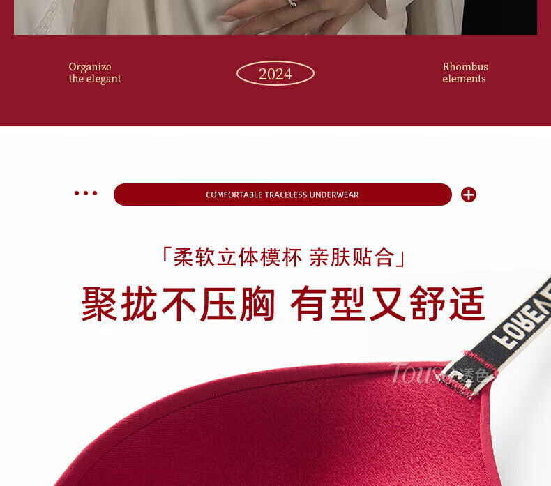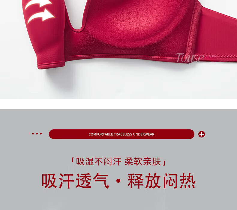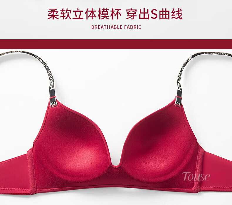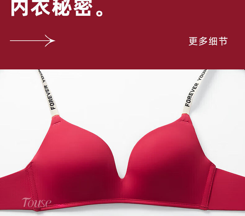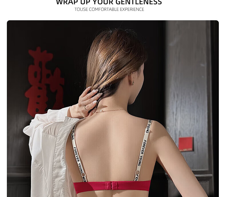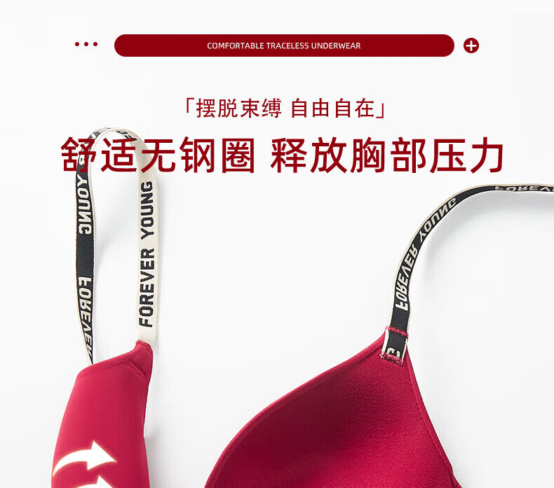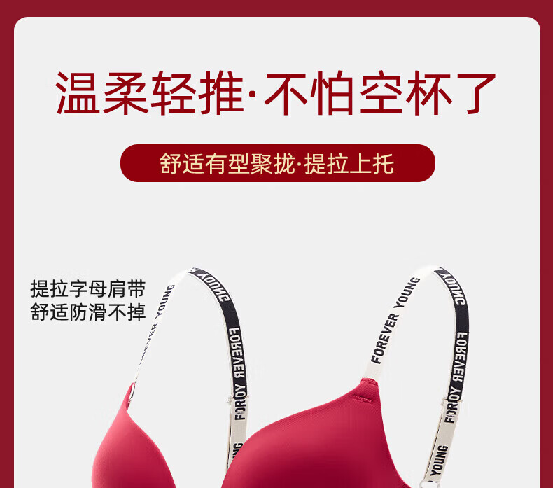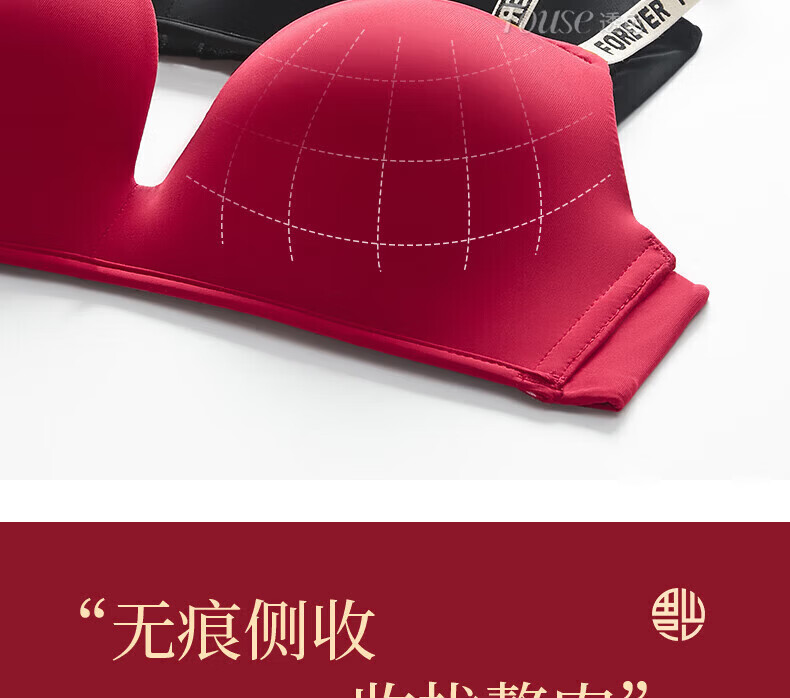 LISI zodiac year underwear for women with small breasts, push-up, seamless, thin, anti-sagging, letter shoulders, red suit 70A/32A (pushed-up, traceless)