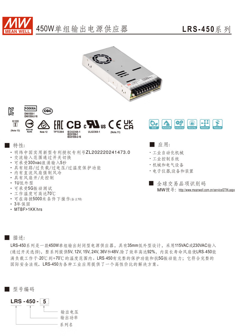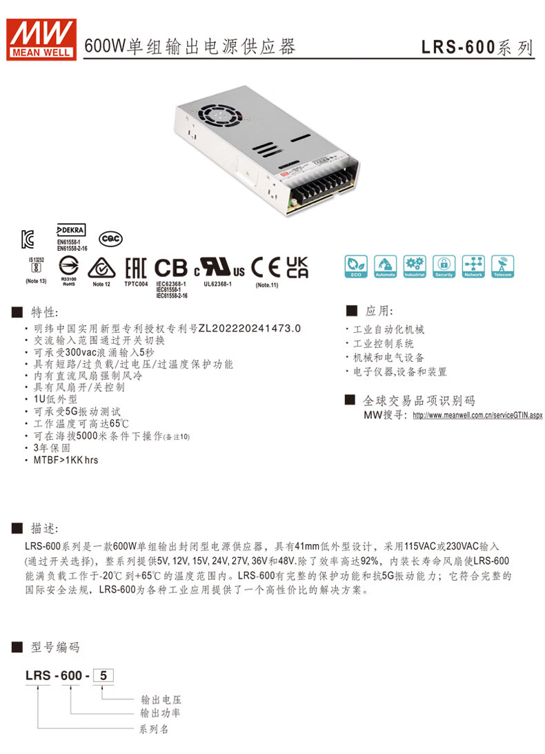 Taiwan MEAN WELL LRS switching power supply 220 to 24V12V5V48V transformer 50/100/150/200/350W RS-15-5 5V 3A
