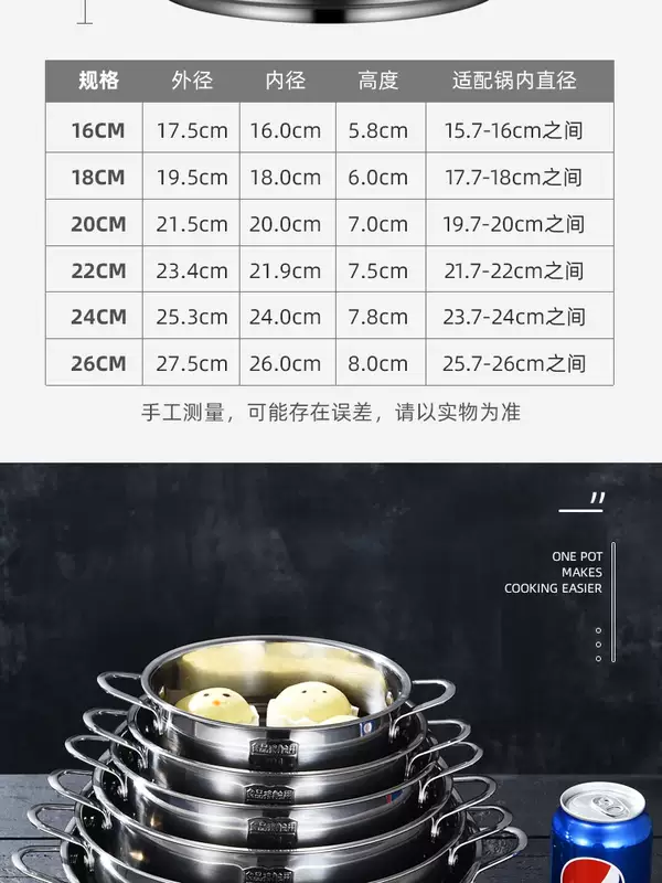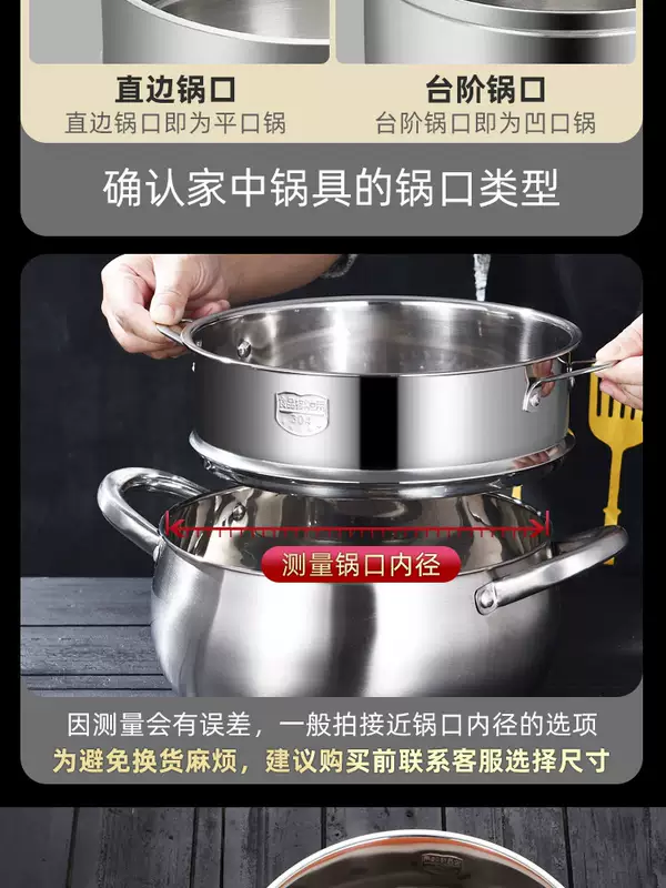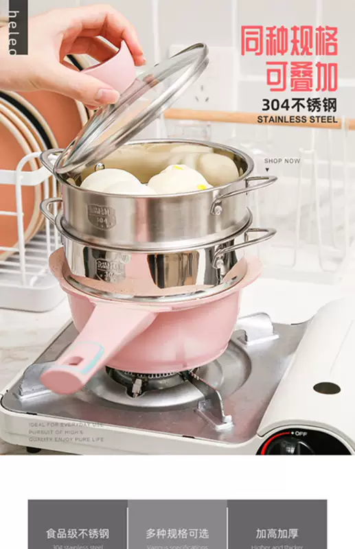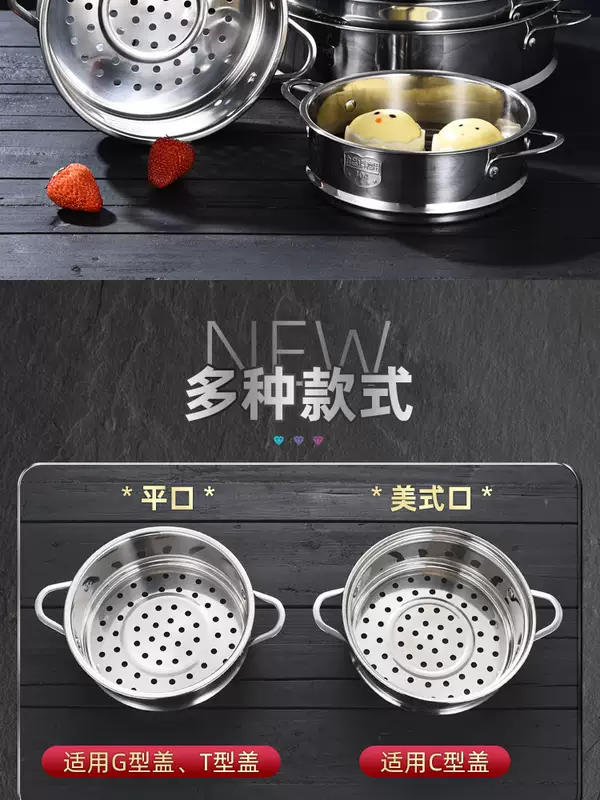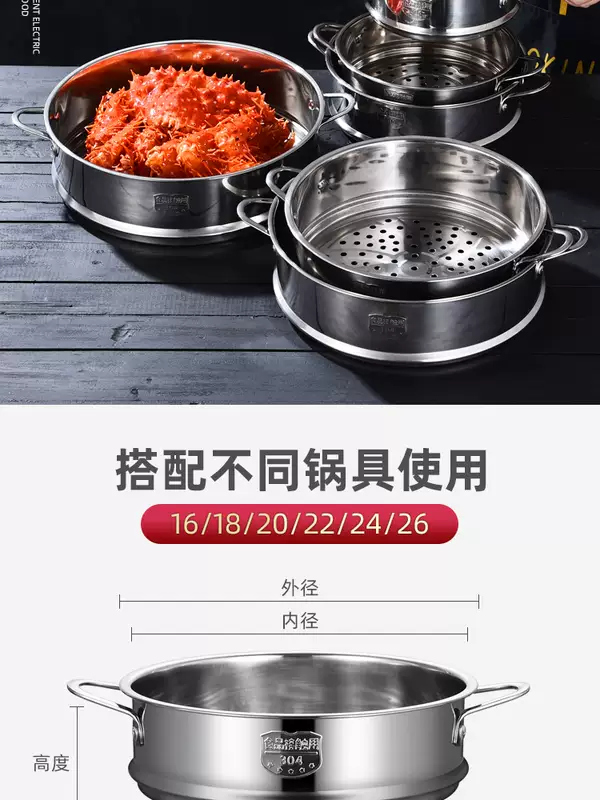 Yusenyi Steamer 304 stainless steel steaming grid household non-staple food milk pot small steamer soup pot wok steamed buns steamer layer basket inner diameter 18CM (no handle) flat mouth 18cm