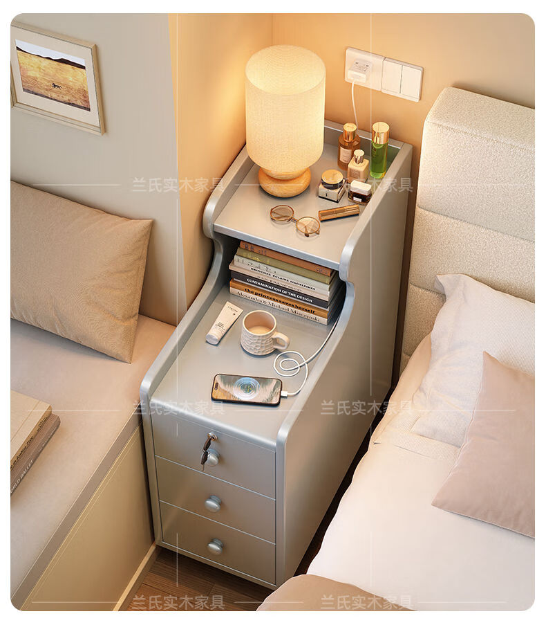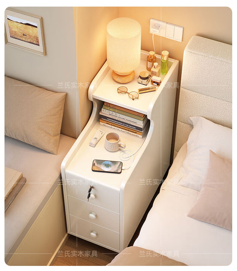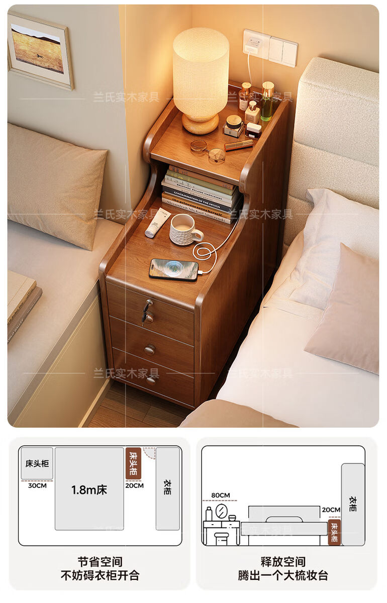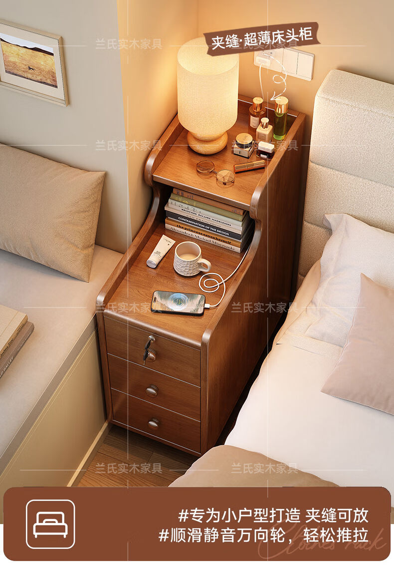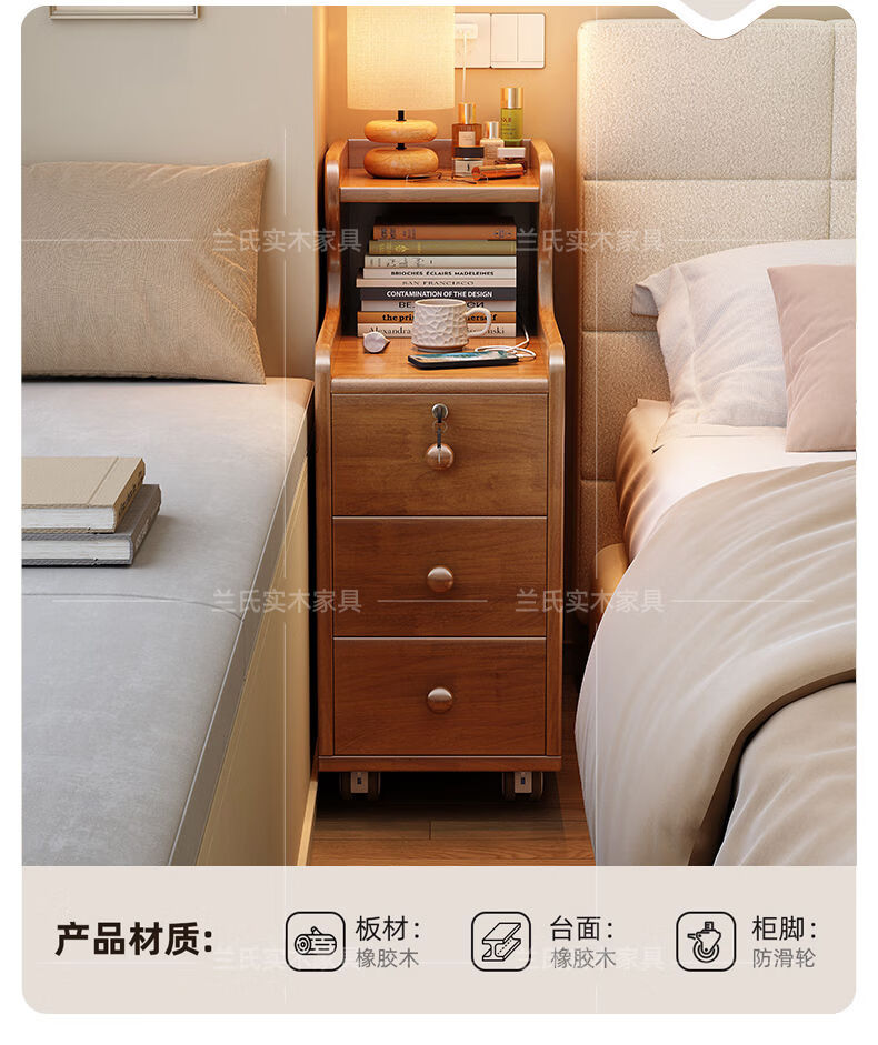 Fantasy Bedside Table Bedroom Small Bedside Table Movable Narrow Cabinet FAS Grade Rubber Wood 216 Upgraded Model #Original Wood Color 40x40x70cm