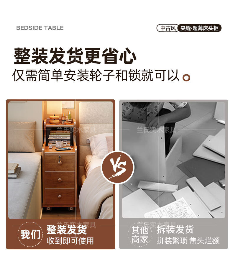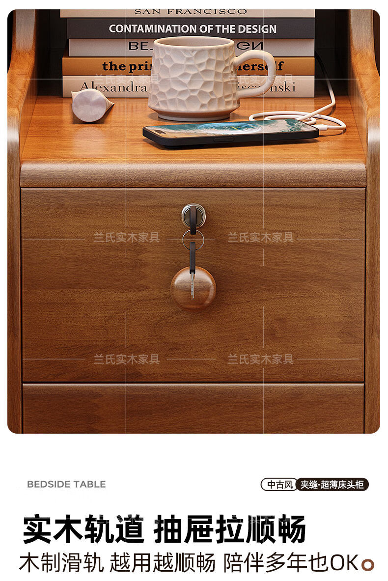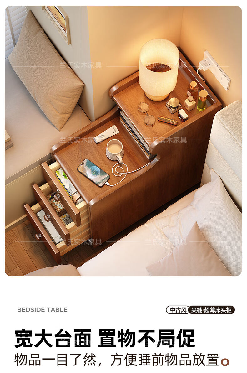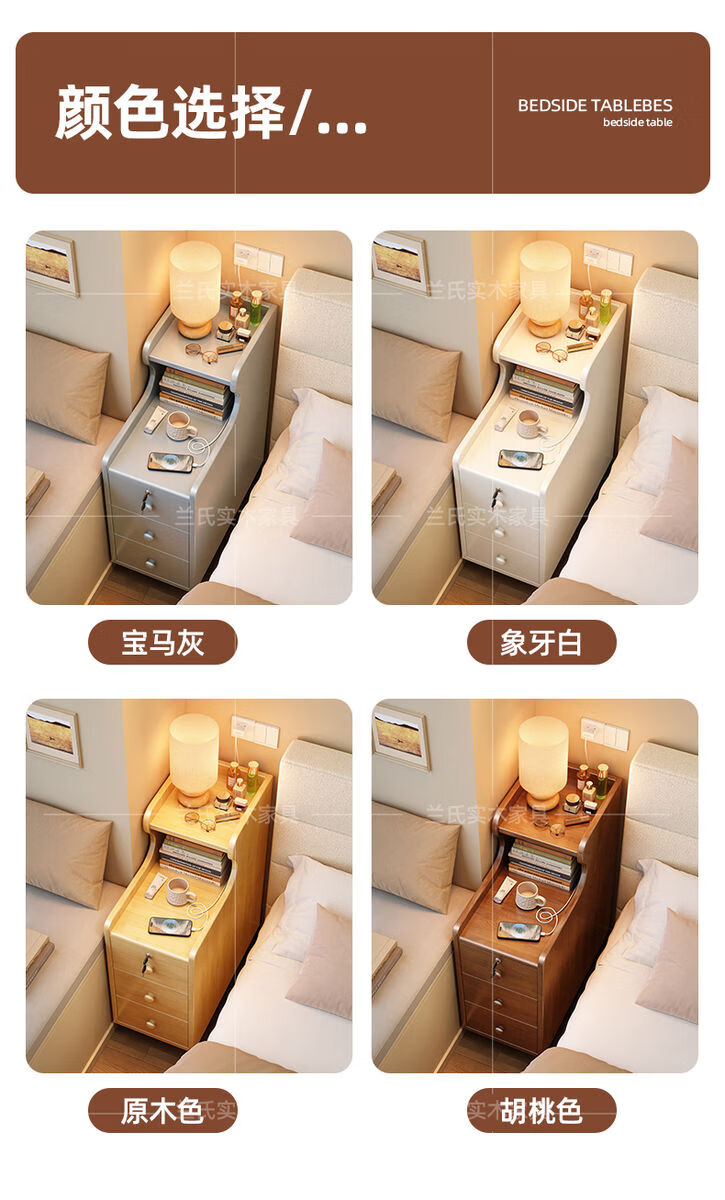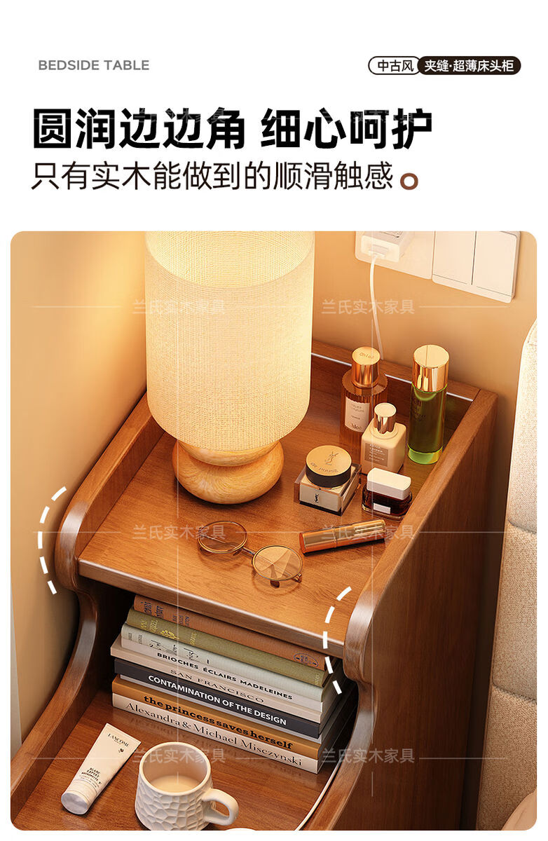 Fantasy Bedside Table Bedroom Small Bedside Table Movable Narrow Cabinet FAS Grade Rubber Wood 216 Upgraded Model #Original Wood Color 40x40x70cm