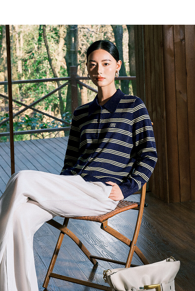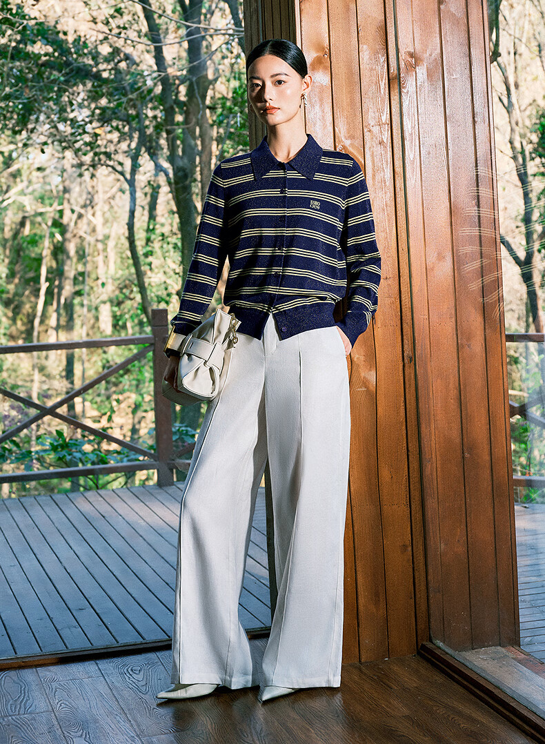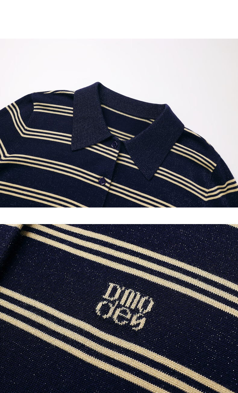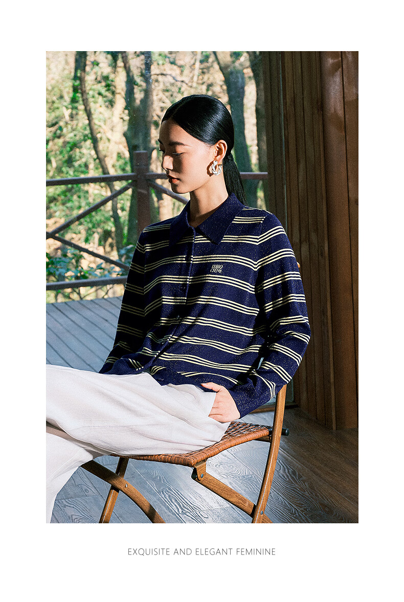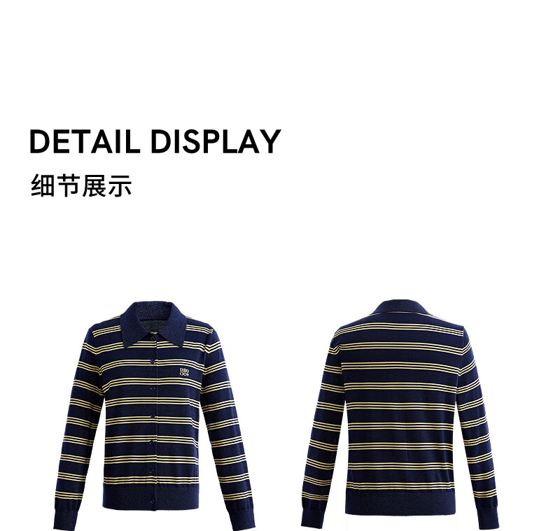 Daimashi Shopping Mall's same style 2026 spring new classic striped comfortable blended wool knitted cardigan for women, navy blue L
