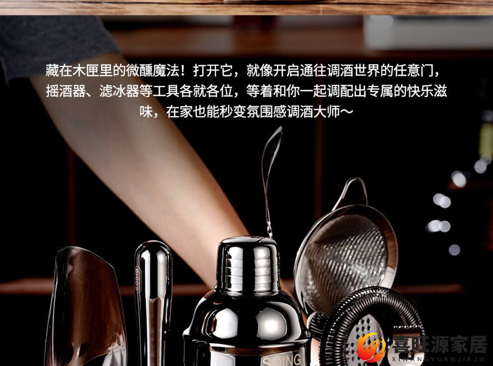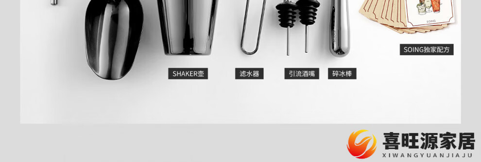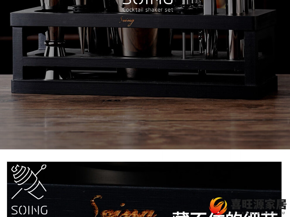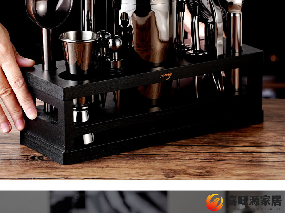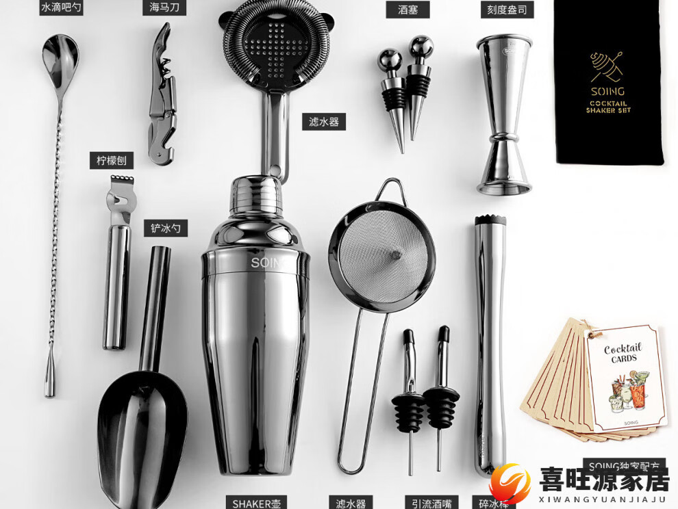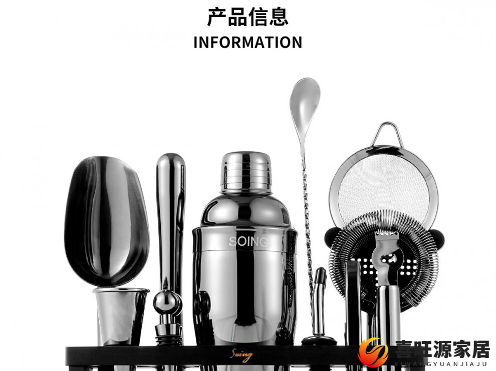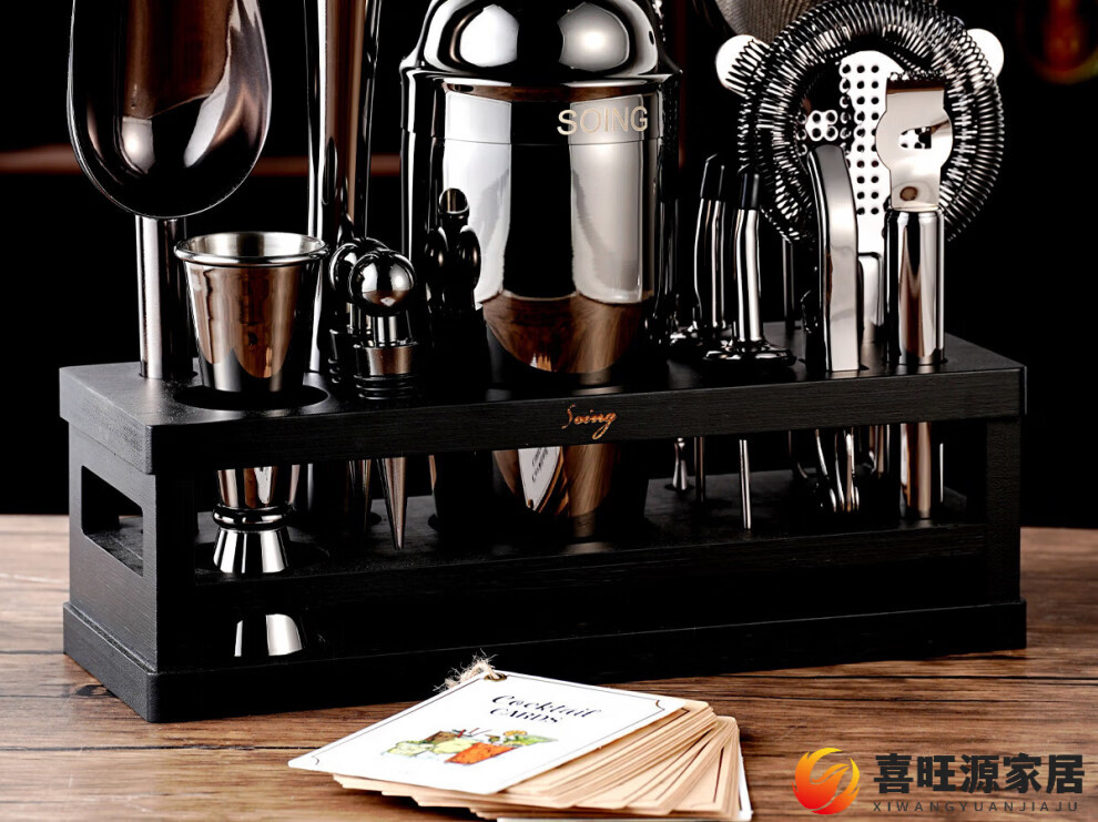 MPPMCK upgraded American version cocktail set 304 stainless steel bar cocktail complete set of bartending tools with base SOING Blackwood Flight 1