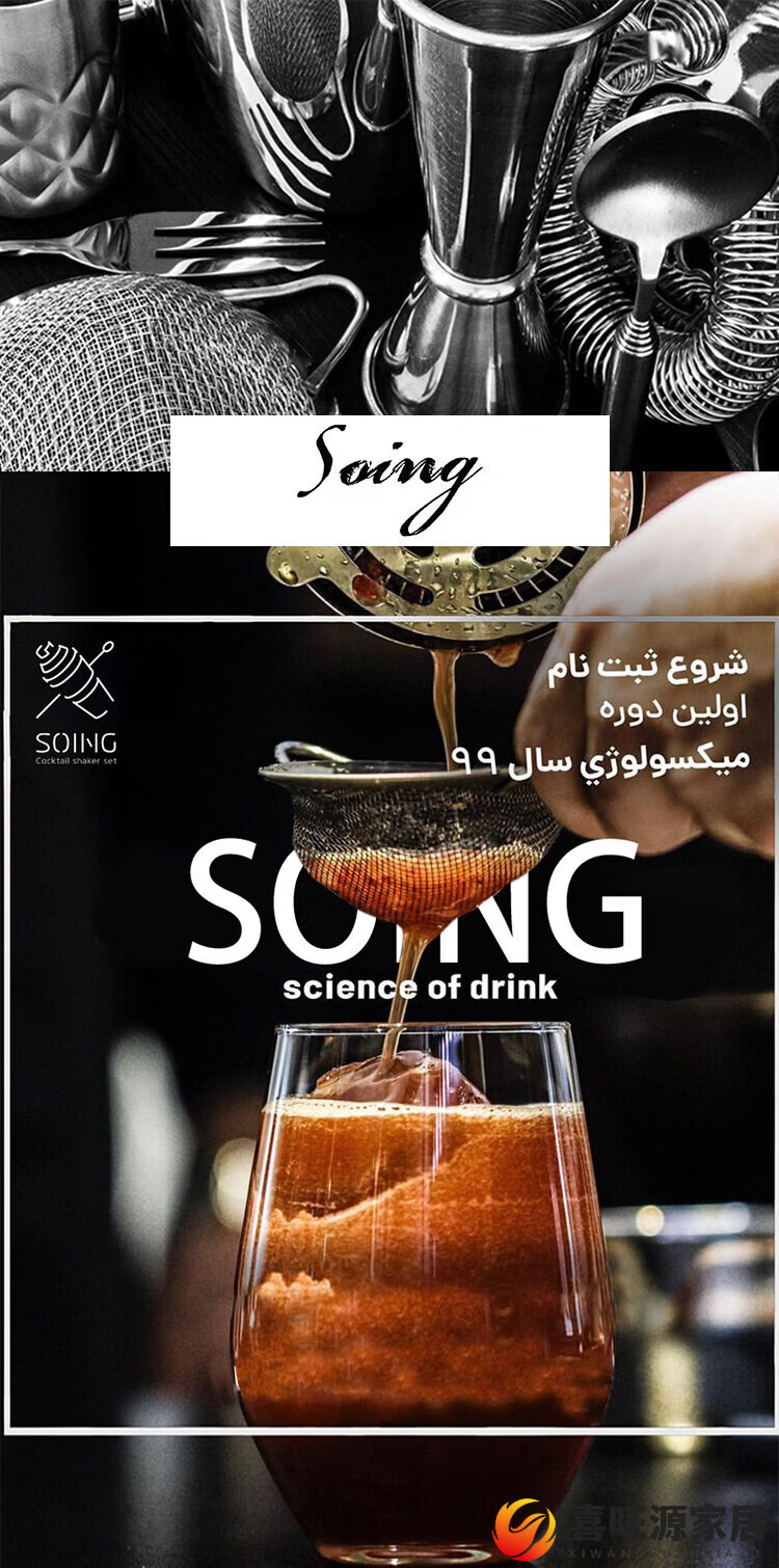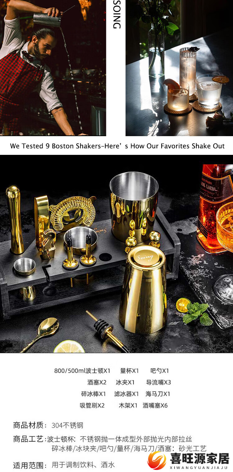 MPPMCK Boston cocktail shaker set two-stage 304 stainless steel cocktail bar tools bartender shaker SOING silver F160 Boston two-stage 1