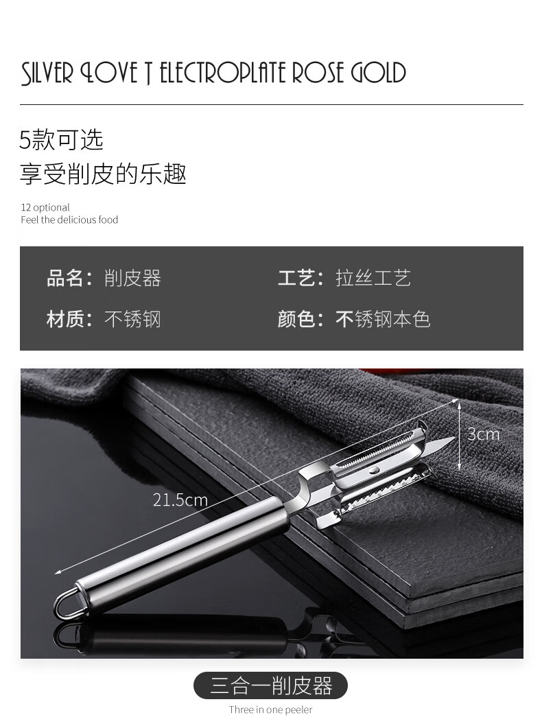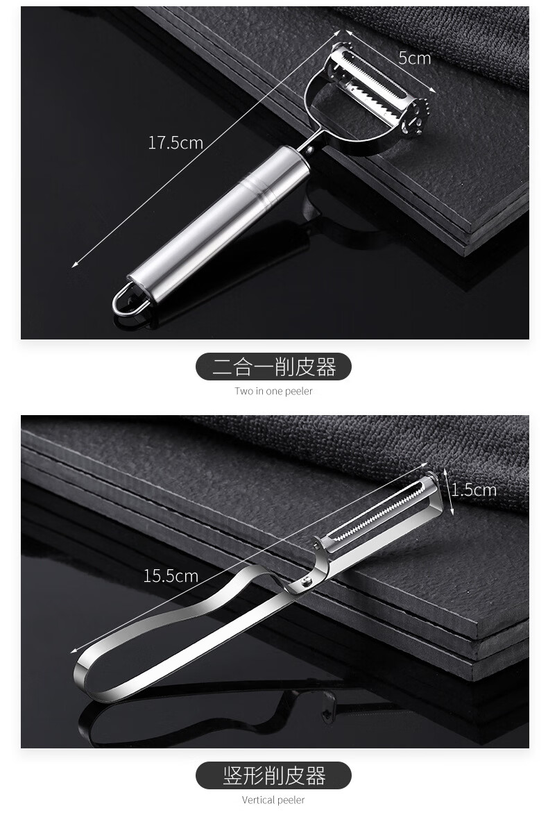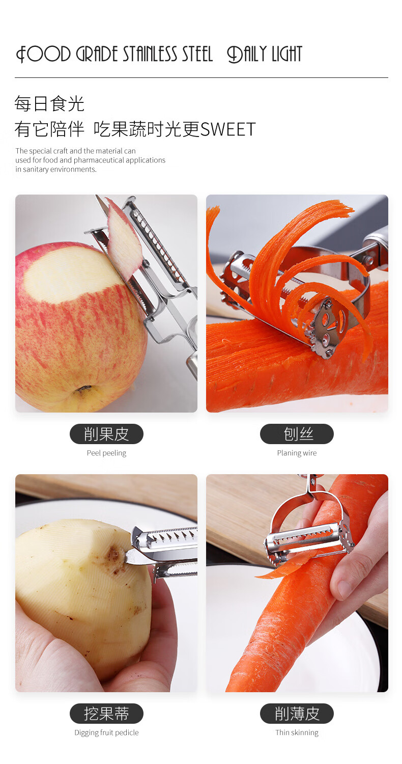 Yingtang Kitchen Stainless Steel Double-Headed Peeler Apple Peeling Knife Potato Peeler Kitchen Vegetable and Fruit Scraper Peeler (Set of 5)
