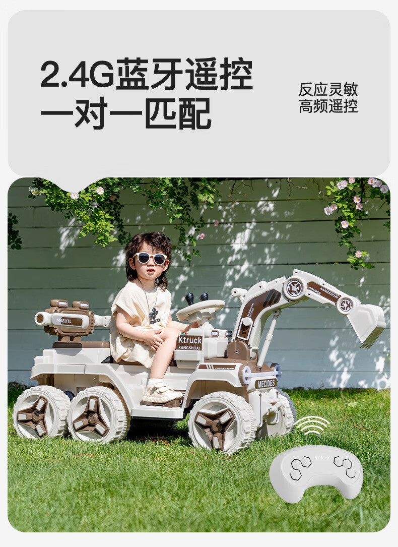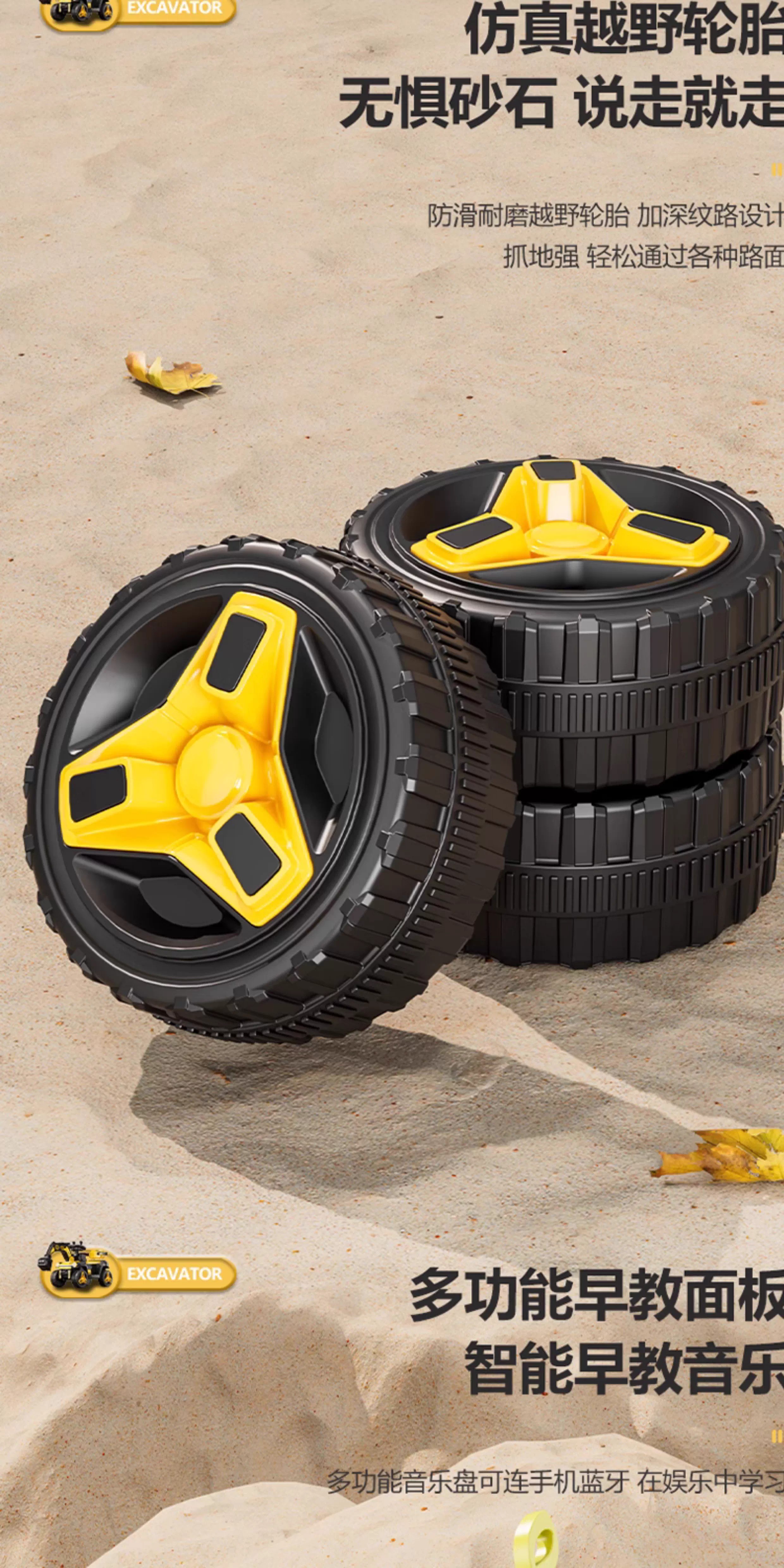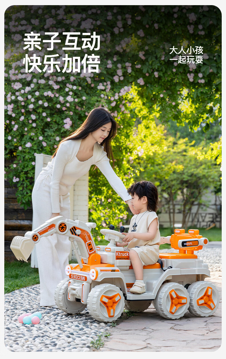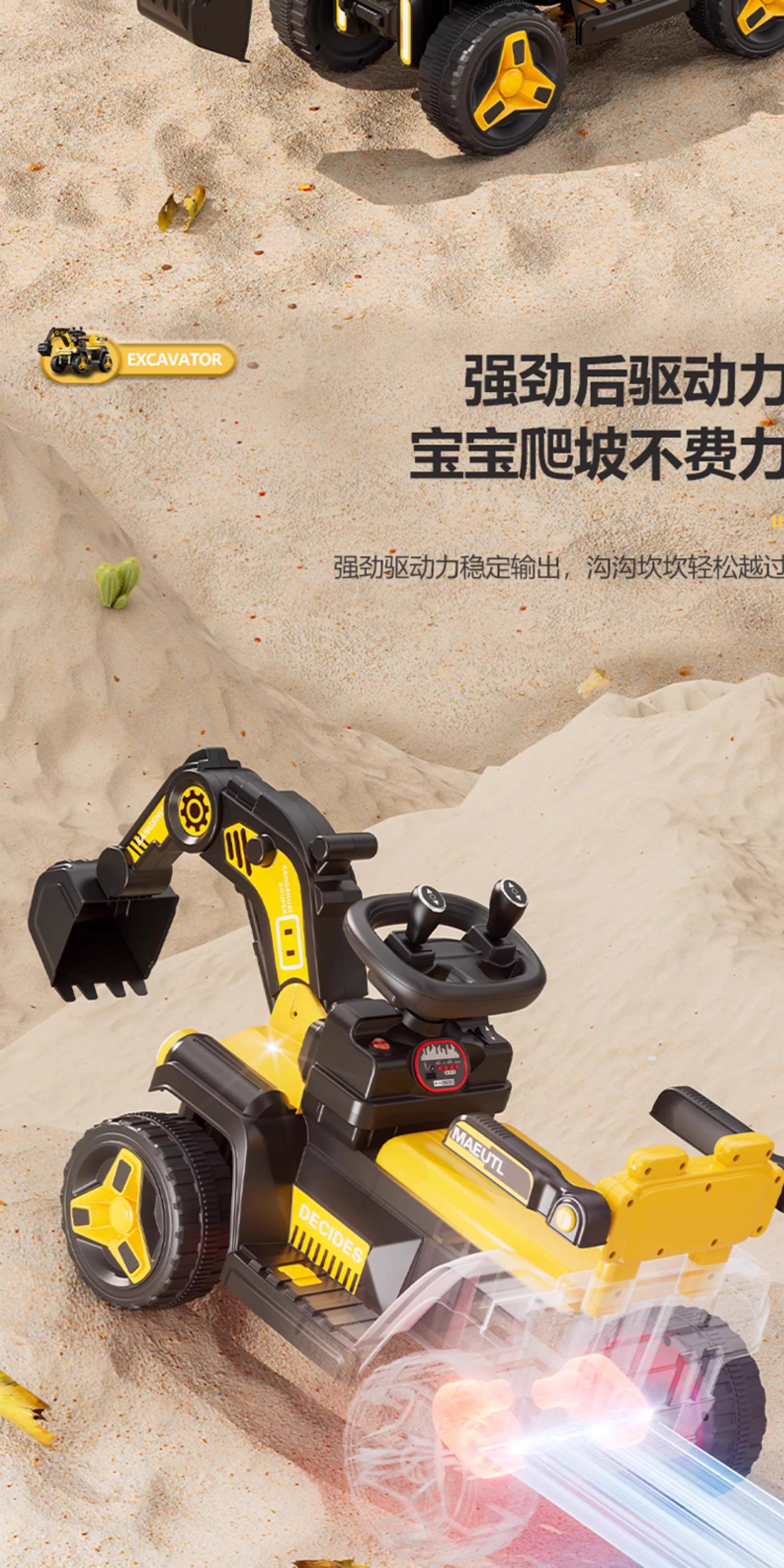 HERO THRIVE children's electric excavator can seat one person plus size 1-3 years old electric diggable earth toy car excavator engineering vehicle high-end Carlo yellow single drive single electric + Bluetooth + early education music SF Express door-to-door Children's Day gift boys birthday gift