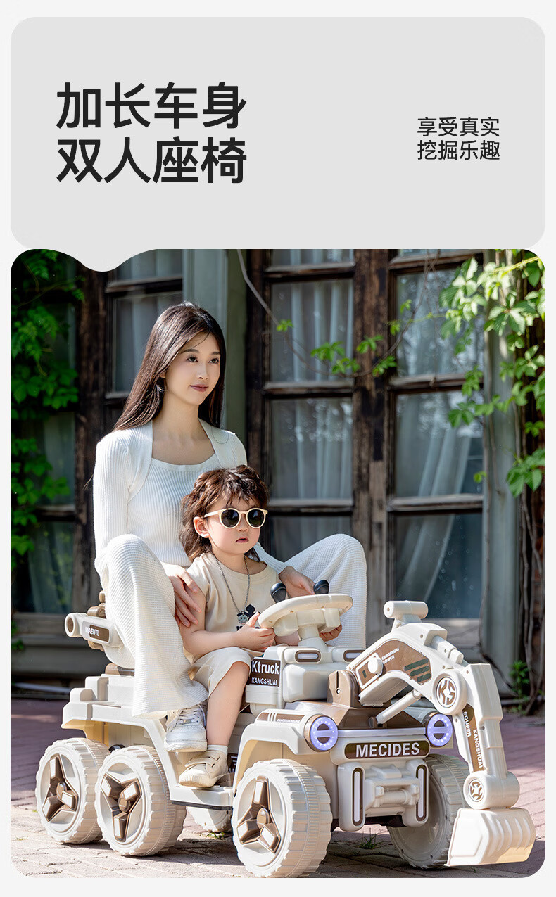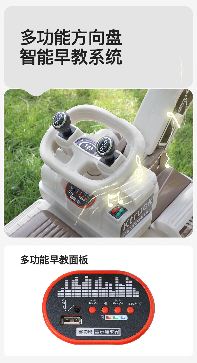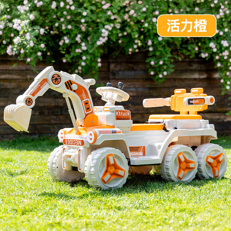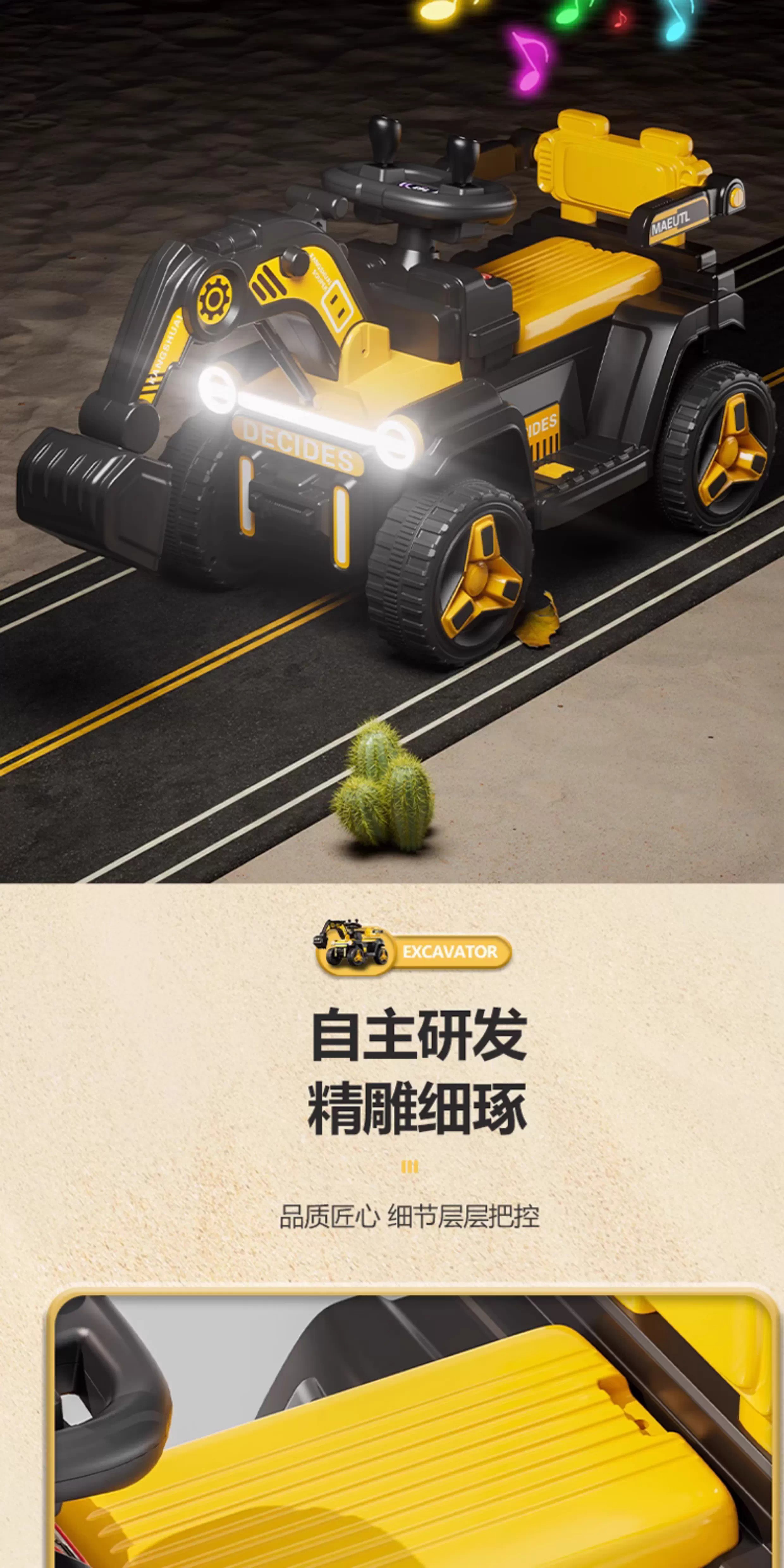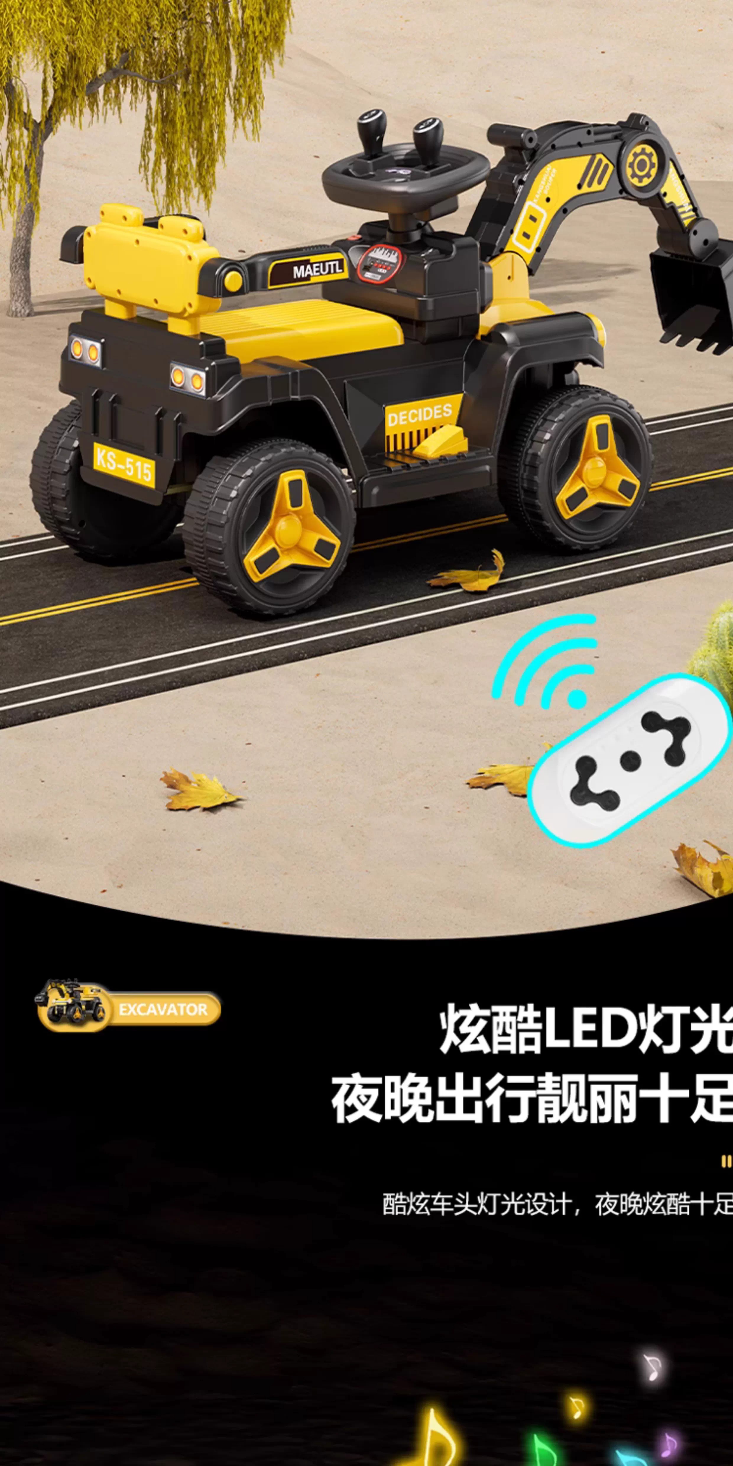 HERO THRIVE children's electric excavator can seat one person plus size 1-3 years old electric diggable earth toy car excavator engineering vehicle high-end Carlo yellow single drive single electric + Bluetooth + early education music SF Express door-to-door Children's Day gift boys birthday gift