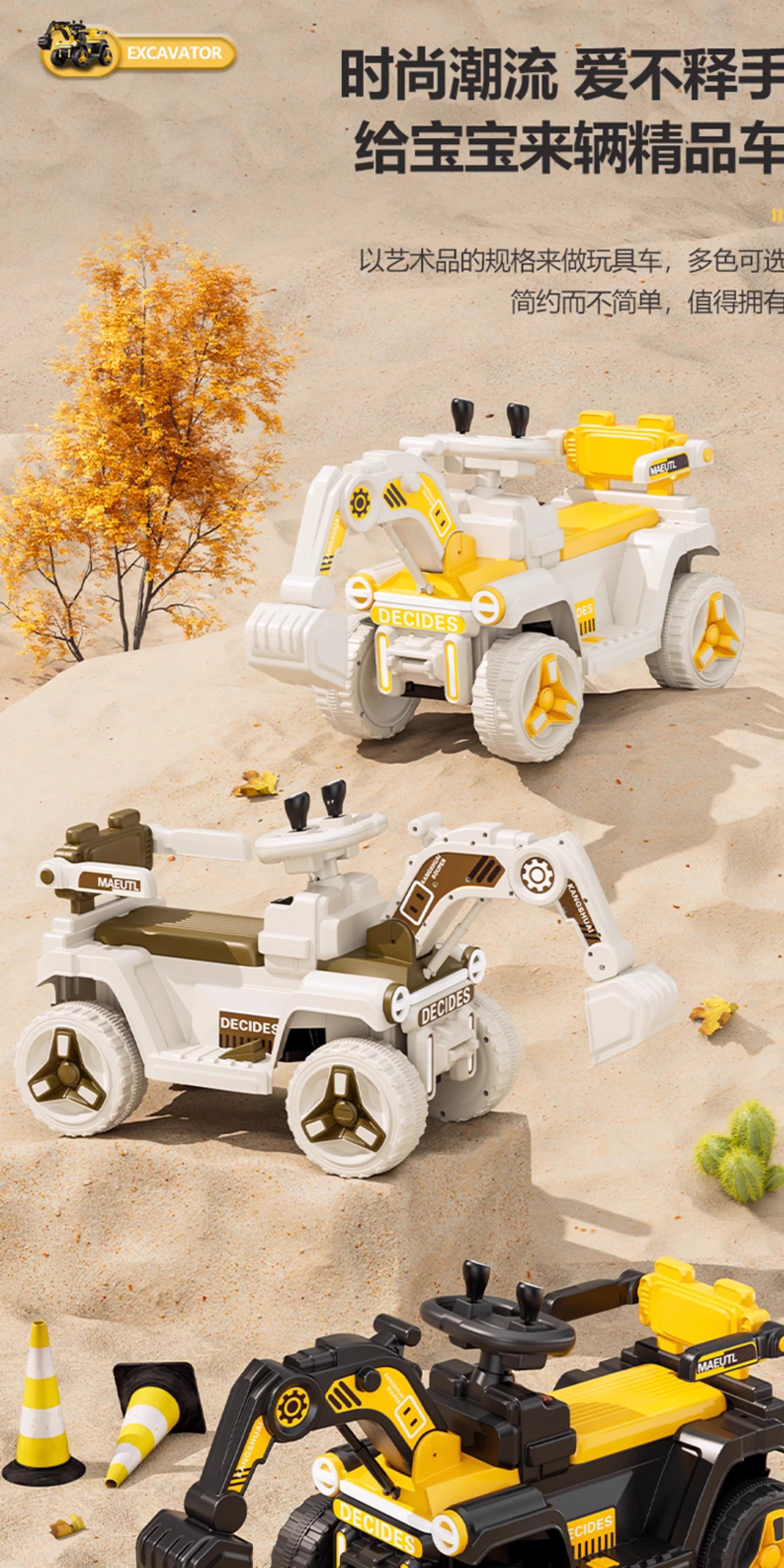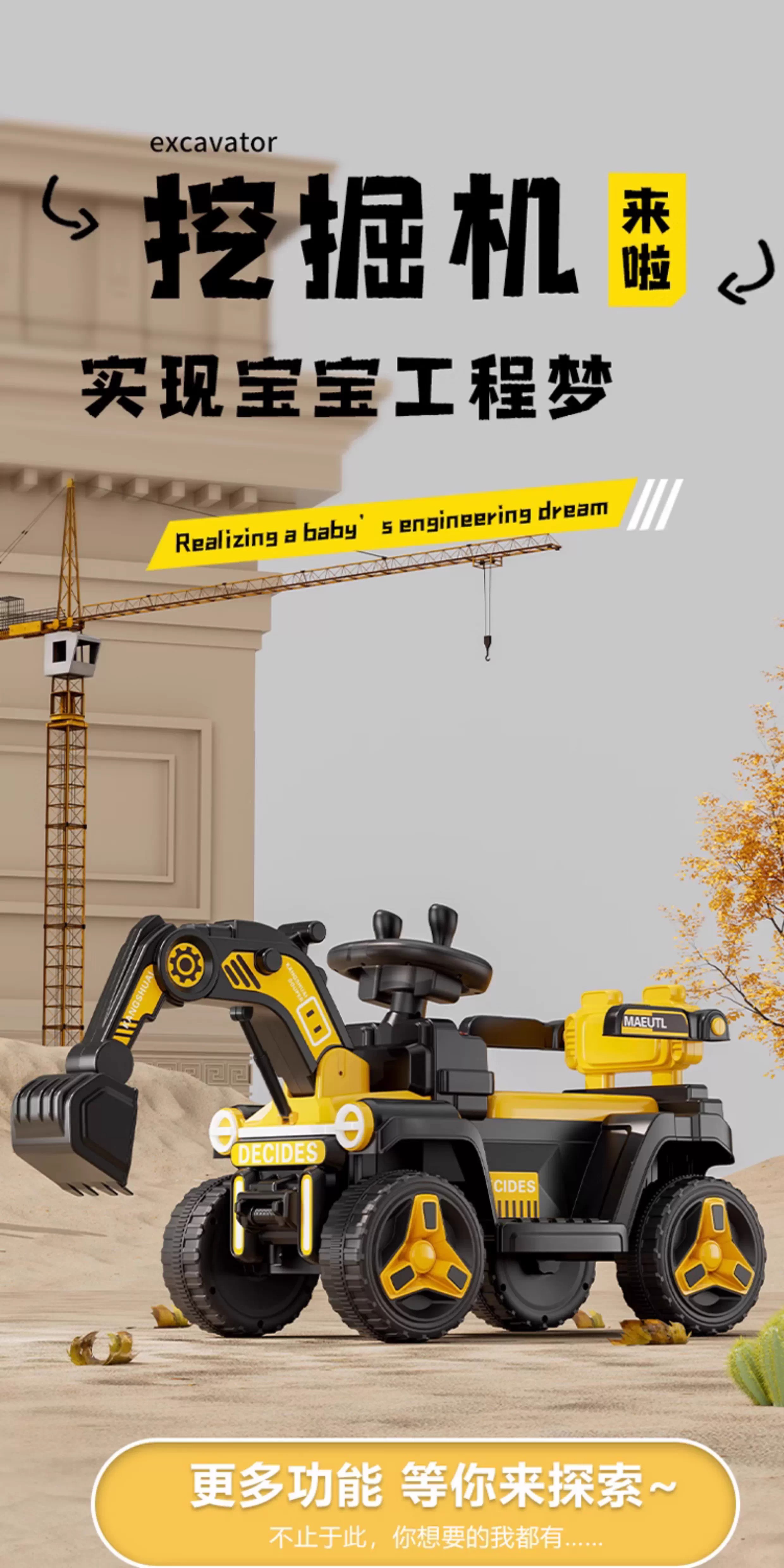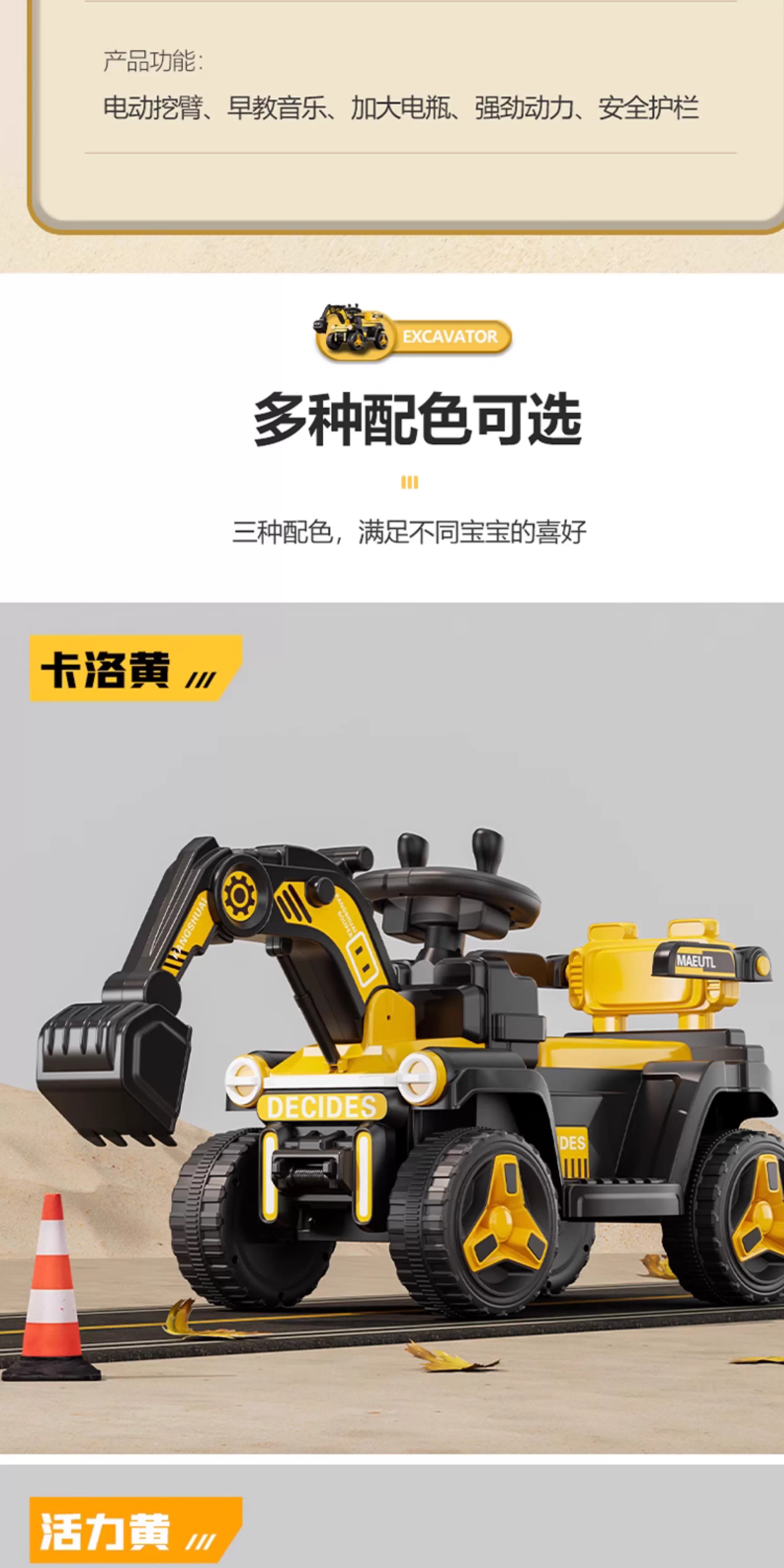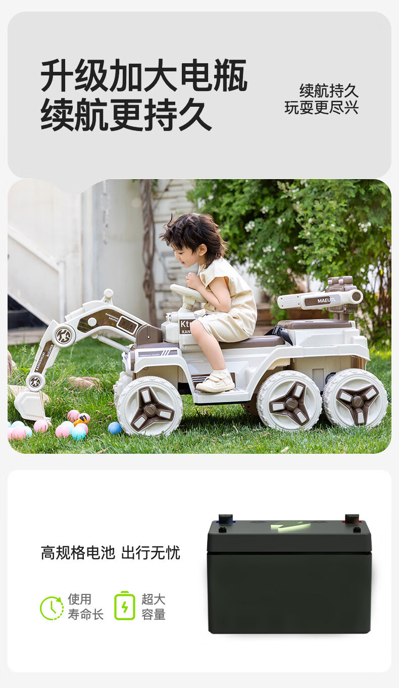 HERO THRIVE children's electric excavator can seat one person plus size 1-3 years old electric diggable earth toy car excavator engineering vehicle high-end Carlo yellow single drive single electric + Bluetooth + early education music SF Express door-to-door Children's Day gift boys birthday gift