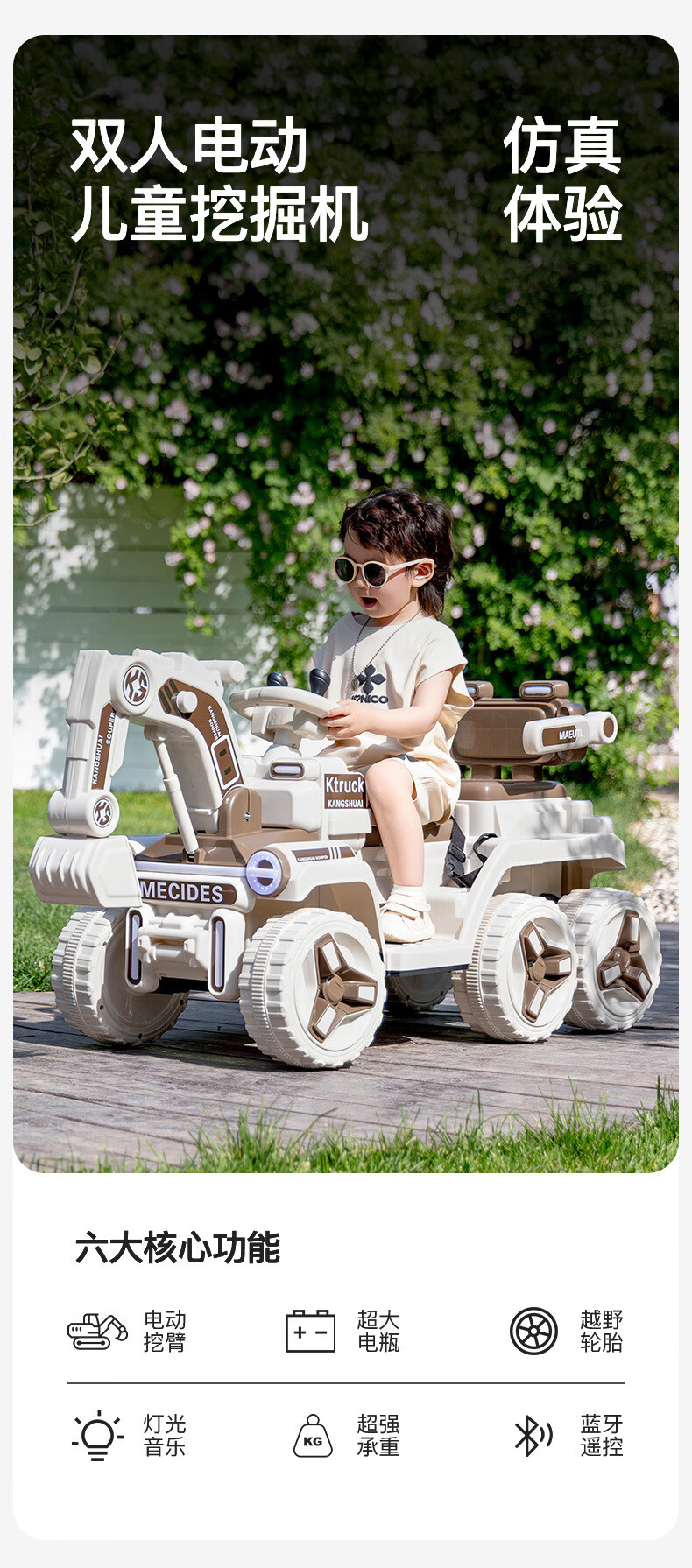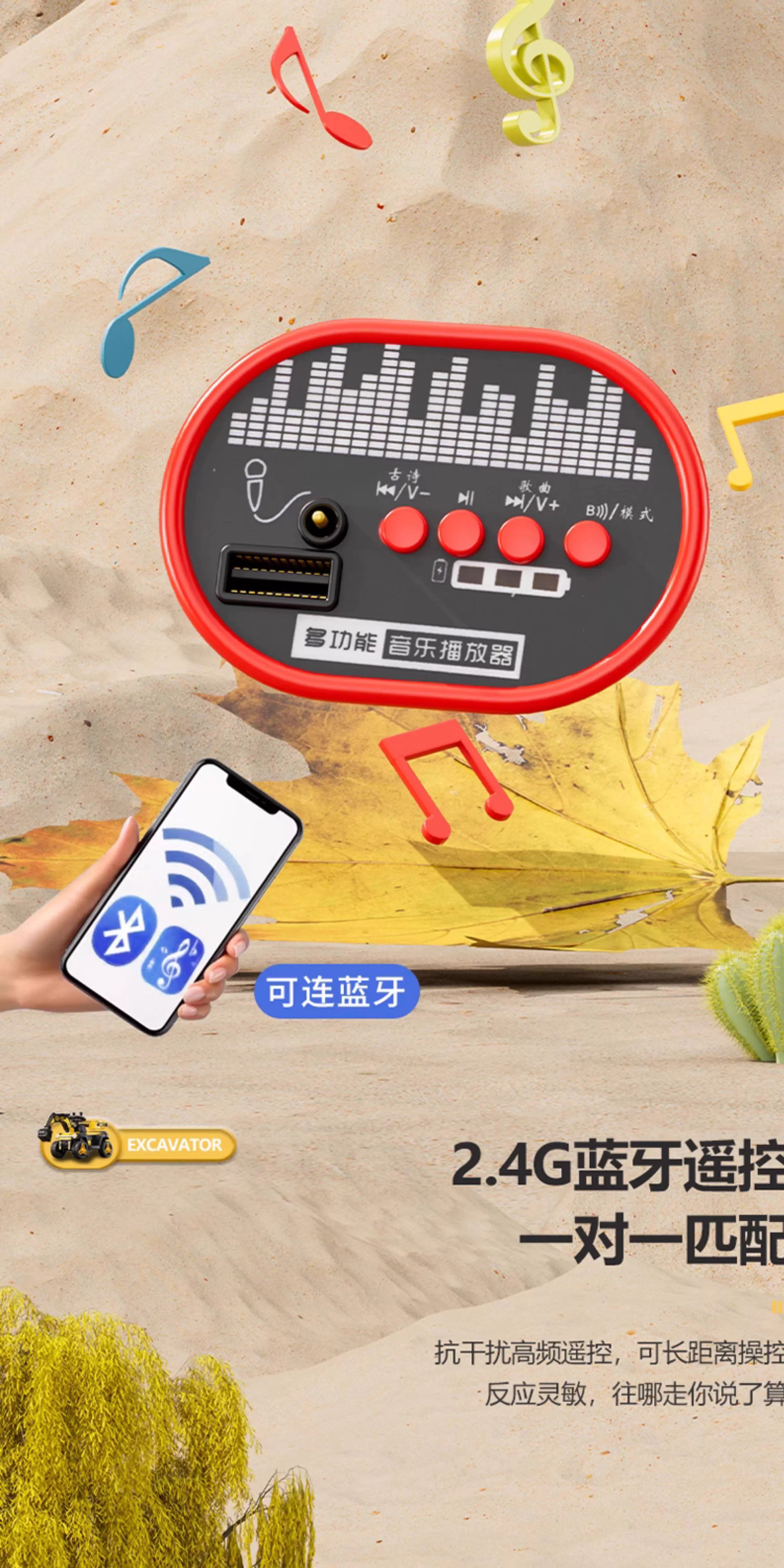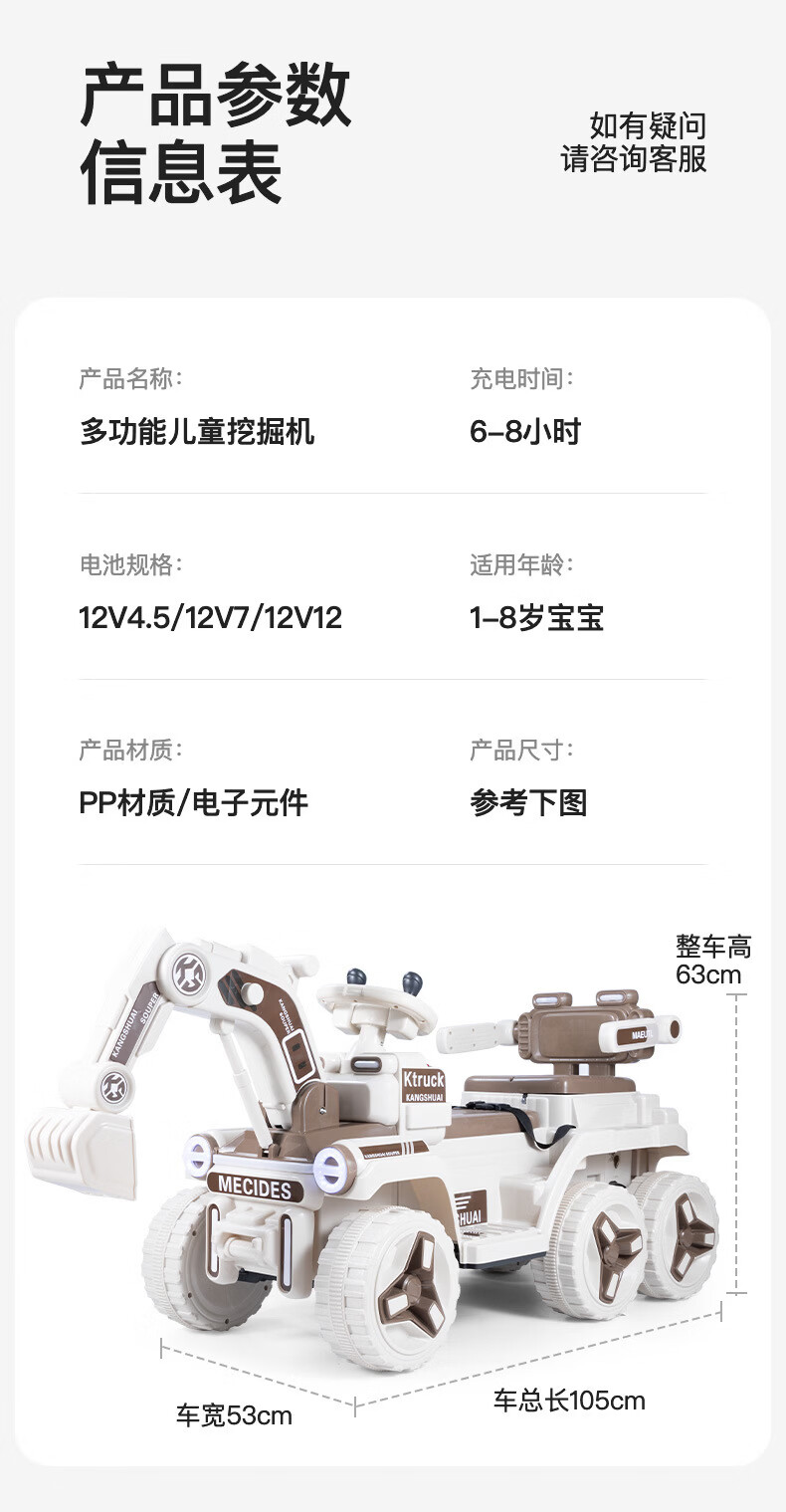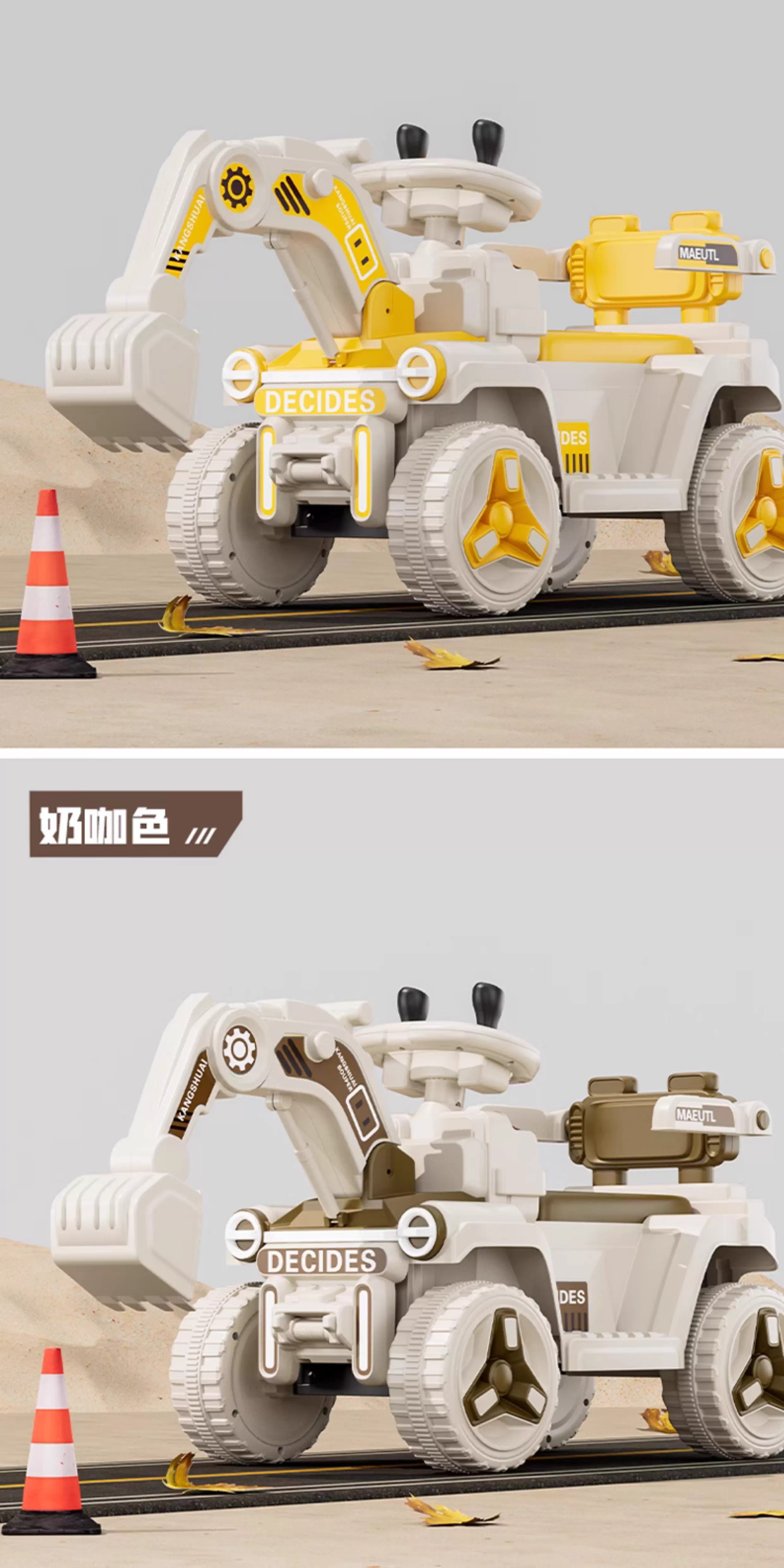 HERO THRIVE children's electric excavator can seat one person plus size 1-3 years old electric diggable earth toy car excavator engineering vehicle high-end Carlo yellow single drive single electric + Bluetooth + early education music SF Express door-to-door Children's Day gift boys birthday gift